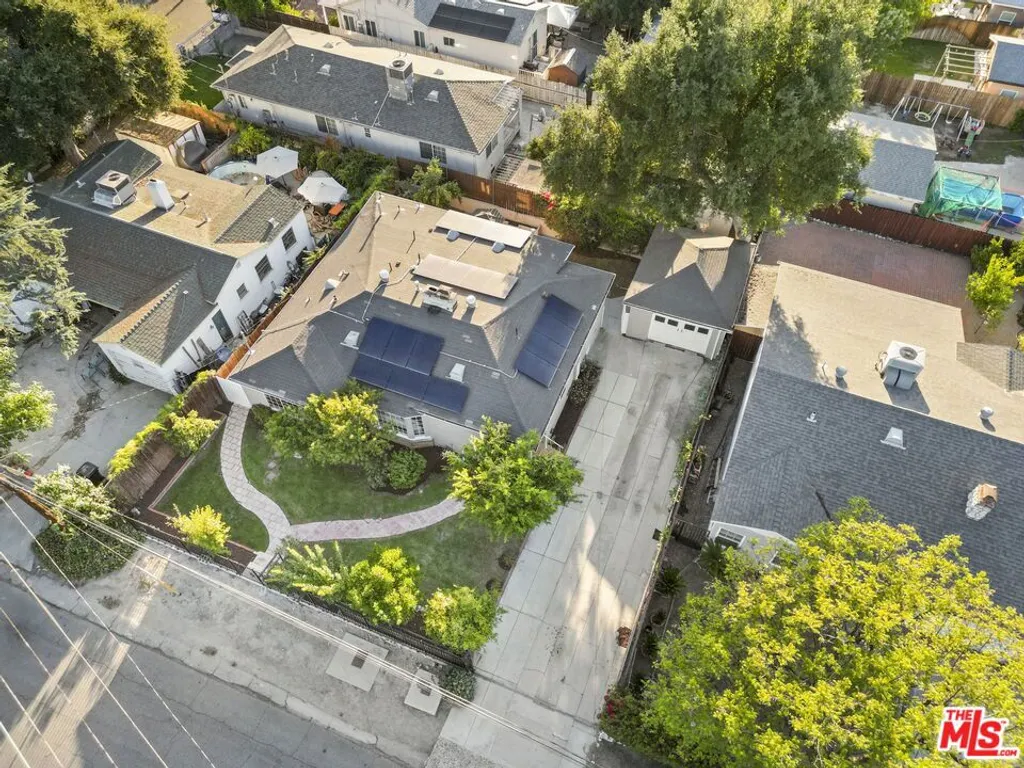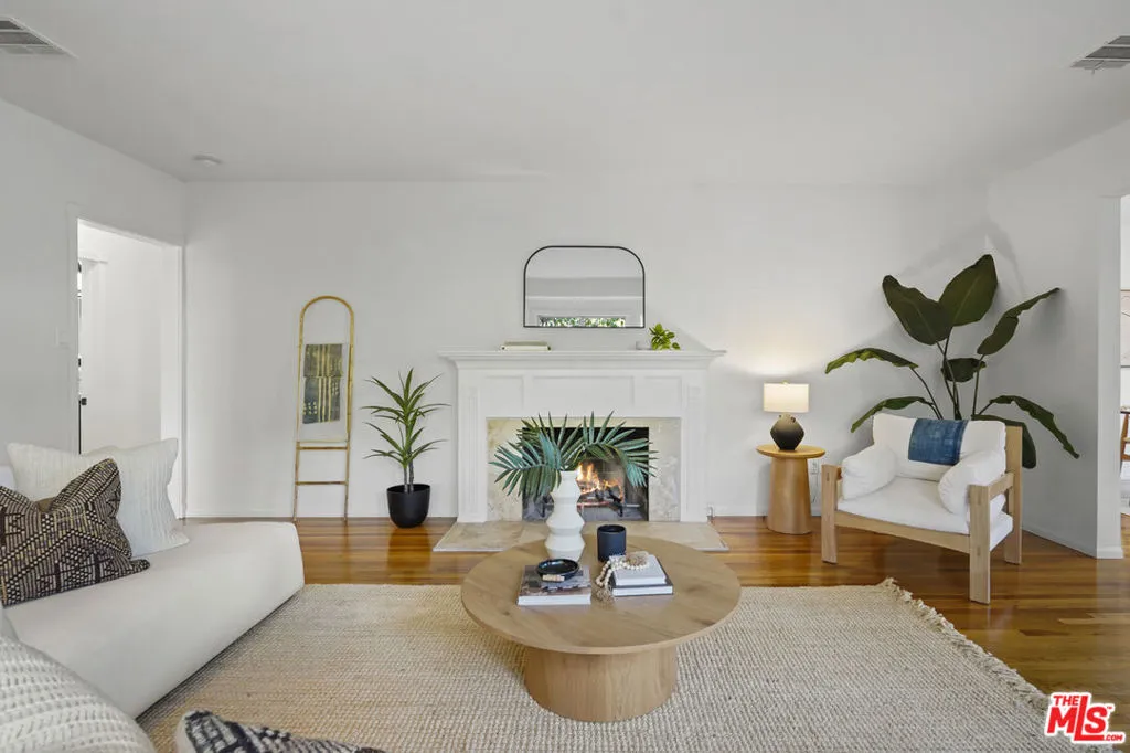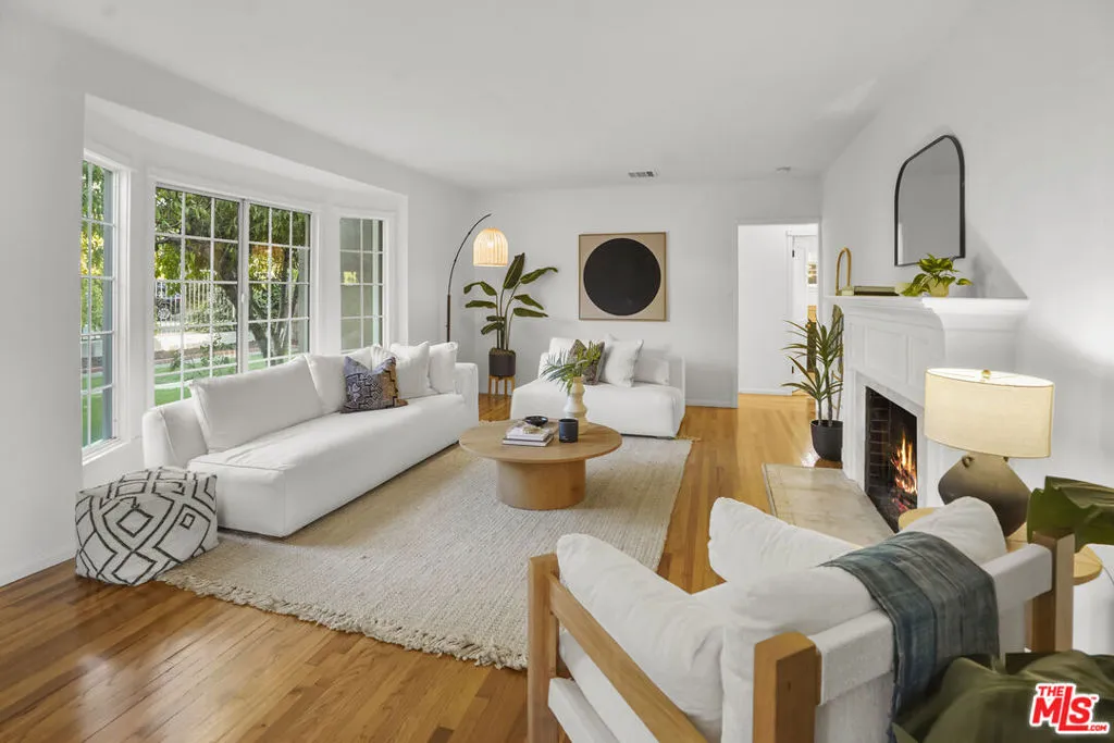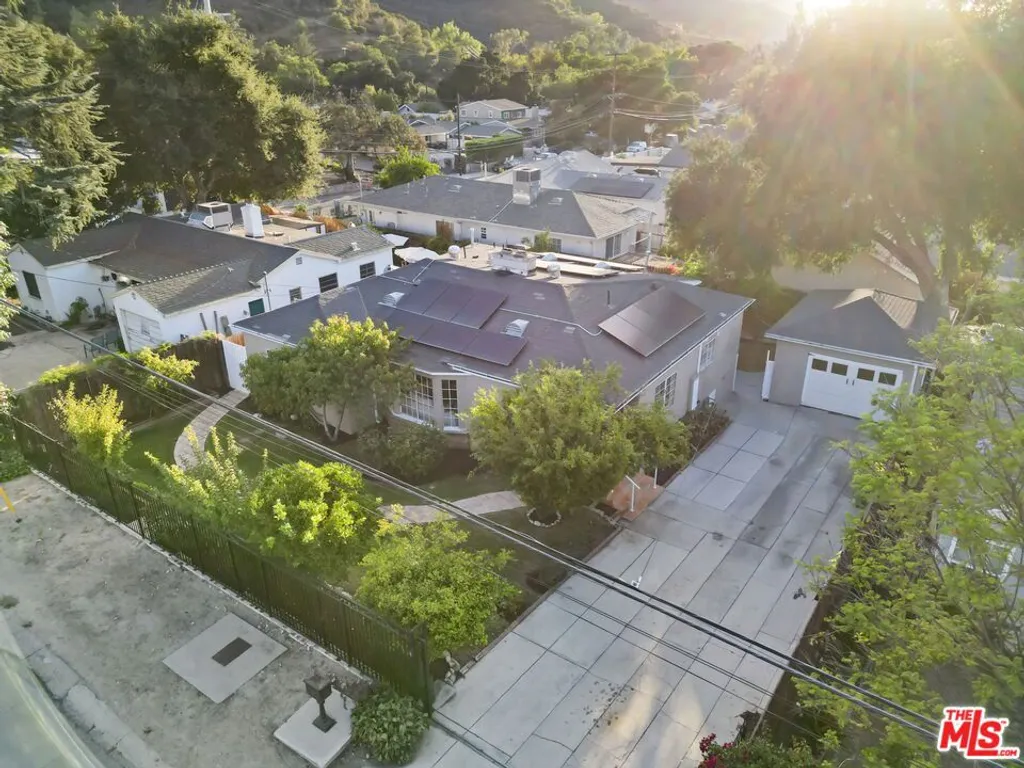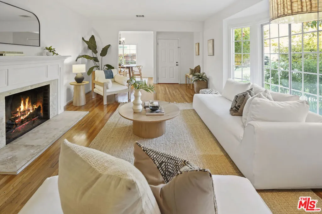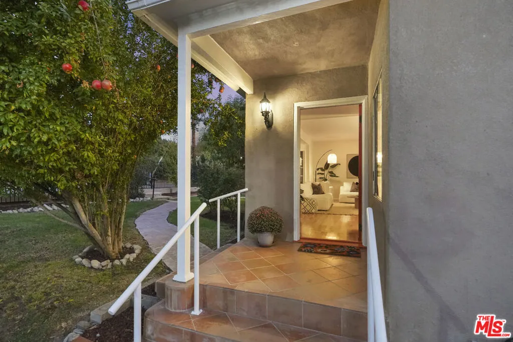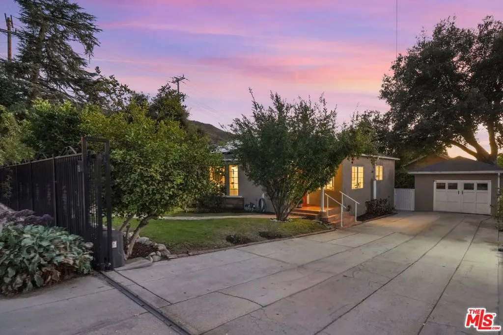 Framed by mature fruit trees and a soft stucco exterior, this well-maintained 1940s traditional jewel opens to bright, well-proportioned rooms featuring gleaming wood floors and an abundance of natural light. The large living room centers on a decorative fireplace and a wide bay window overlooking the front garden, with original trim and a classic plaster mantel that reflect the home's 1940s craftsmanship. The dining area sits just beyond, open yet defined, with large windows that bring in afternoon light. Its generous size allows room for a full table and additional serving space, creating a comfortable setting for gatherings. The large kitchen has been updated and features granite counters, tile flooring, a double oven, and ample cabinetry surrounding a central island that adds both workspace and casual seating. The layout encourages a natural flow between cooking, dining, and conversation. The three bedrooms include a spacious primary suite with built-in storage, a decorative fireplace, and space for a sitting area. The private bath with double sinks, framed mirrors, a make-up station, and a tiled shower accented by brass fixtures, a nod to the home's original character. A second bedroom also enjoys an en-suite bath, while the third bedroom is served by a hall bath that has been updated with modern finishes and fixtures. The home spans over 1,600 square feet on a 5,500-square-foot lot. A long driveway provides generous parking with room for an RV and leads to a private backyard with a patio and mature fruit trees - tangerine, peach, citrus, fig and pomegranate among them. Fresh interior and exterior paint, solar panels, and an upgraded 200A electrical panel add everyday reliability, this beauty is move-in ready. The result is a home that feels both rooted and refreshed, reflecting years of care and a clear respect for its original character. Located at the border of Sunland & Tujunga, nature is never far away: explore the Haines Canyon Park, La Tuna Canyon, Oro Vista Park, or any of the many other trails, golf courses, and recreation areas. If you're ready for open air, lots of trails, and community engagement, this home is ready for you.