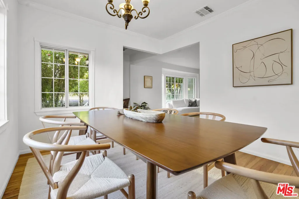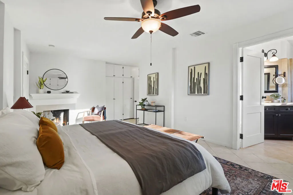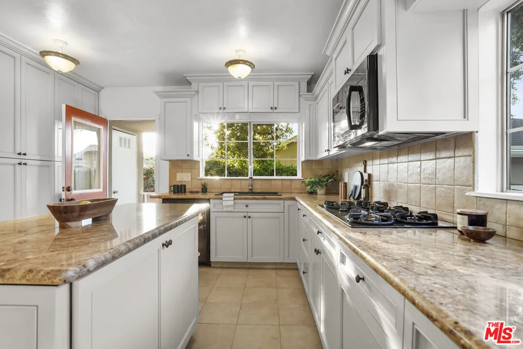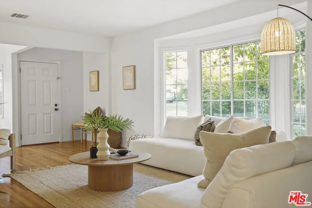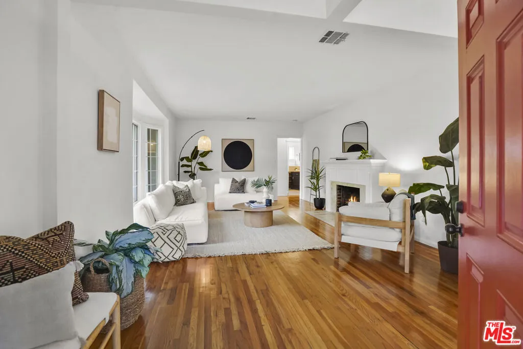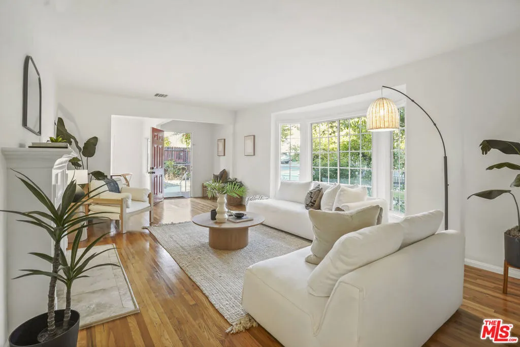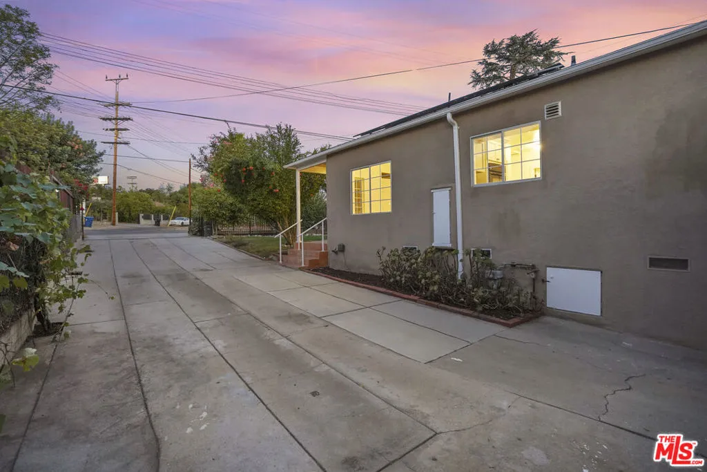 Framed by mature fruit trees and a soft stucco exterior, this well-maintained 1940s traditional jewel opens to bright, well-proportioned rooms featuring gleaming wood floors and an abundance of natural light. The large living room centers on a decorative fireplace and a wide bay window overlooking the front garden, with original trim and a classic plaster mantel that reflect the home's 1940s craftsmanship. The dining area sits just beyond, open yet defined, with large windows that bring in afternoon light. Its generous size allows room for a full table and additional serving space, creating a comfortable setting for gatherings. The large kitchen has been updated and features granite counters, tile flooring, a double oven, and ample cabinetry surrounding a central island that adds both workspace and casual seating. The layout encourages a natural flow between cooking, dining, and conversation. The three bedrooms include a spacious primary suite with built-in storage, a decorative fireplace, and space for a sitting area. The private bath with double sinks, framed mirrors, a make-up station, and a tiled shower accented by brass fixtures, a nod to the home's original character. A second bedroom also enjoys an en-suite bath, while the third bedroom is served by a hall bath that has been updated with modern finishes and fixtures. The home spans over 1,600 square feet on a 5,500-square-foot lot. A long driveway provides generous parking with room for an RV and leads to a private backyard with a patio and mature fruit trees - tangerine, peach, citrus, fig and pomegranate among them. Fresh interior and exterior paint, solar panels, and an upgraded 200A electrical panel add everyday reliability, this beauty is move-in ready. The result is a home that feels both rooted and refreshed, reflecting years of care and a clear respect for its original character. Located at the border of Sunland & Tujunga, nature is never far away: explore the Haines Canyon Park, La Tuna Canyon, Oro Vista Park, or any of the many other trails, golf courses, and recreation areas. If you're ready for open air, lots of trails, and community engagement, this home is ready for you.