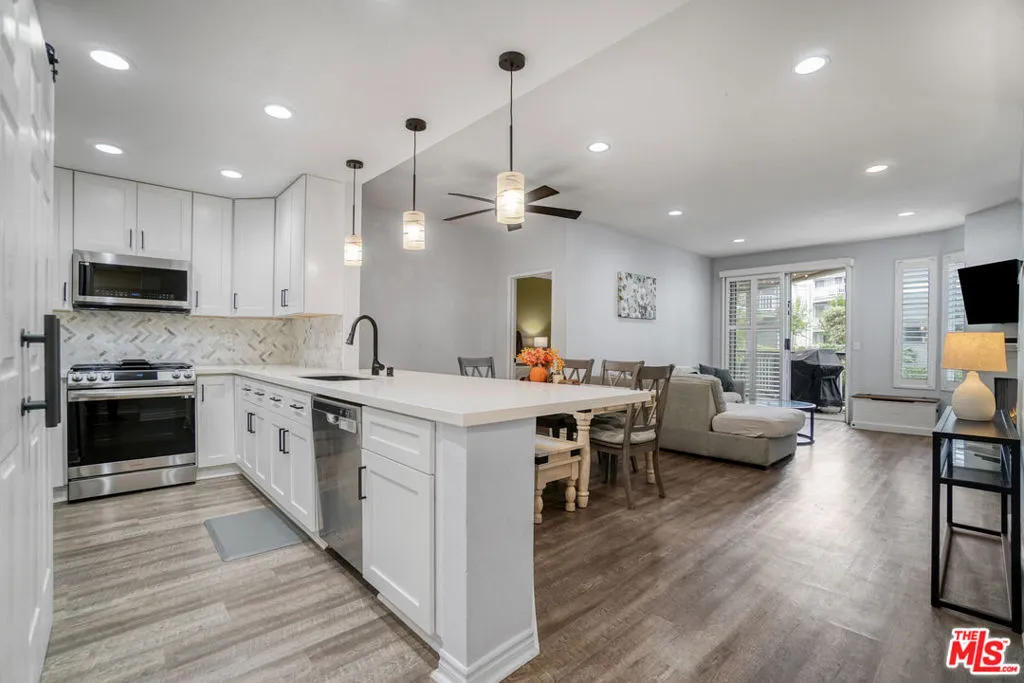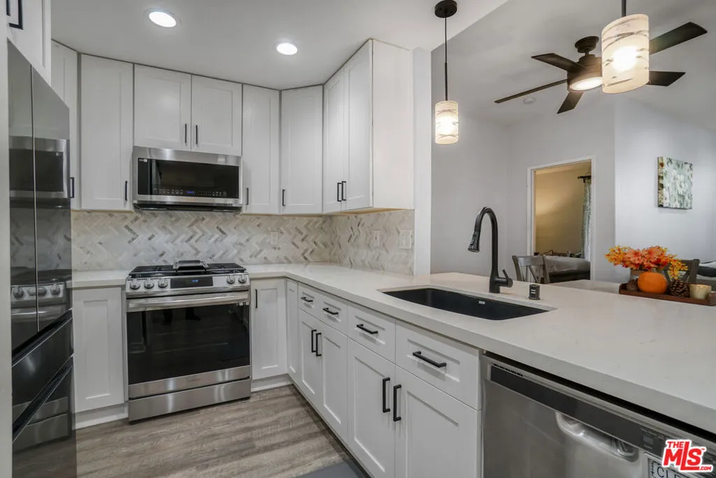 This turnkey condo in the gated community of Greenbrier Terrace offers modern comfort in an excellent location. Featuring significant updates throughout, this spacious 2 bedroom 2 bathroom condo sits on the pool level and is truly move-in ready. Enjoy hardwood floors in both bedrooms, a completely redesigned kitchen and laundry area with barn doors, stylish new recessed and bar lighting, and fully remodeled bathrooms with new vanities, flooring, toilets, and showers. The primary suite includes a refreshed closet with custom storage and new doors, creating a polished and functional retreat. Large windows and sliding doors fill the home with natural light, while smooth ceilings and updated finishes add a bright, open feel. Central heating and air conditioning provide year-round comfort, and the spacious 2 car garage offers plenty of parking and storage. The Greenbrier Terrace community features pools and spas and is conveniently located near top-notch shopping and dining. This is a move-in ready home with an ideal layout, great unit positioning, and all the right upgrades.