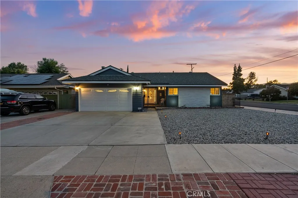 Nestled on a quiet street in the highly desirable Granada Hills neighborhood, this beautifully maintained mid-century home effortlessly combines classic charm with thoughtful modern upgrades. With 4 spacious bedrooms, 3 bathrooms, and approximately 1,583 square feet of bright and airy living space, this residence is ideal for both comfortable everyday living and stylish entertaining. A welcoming front porch opens into an inviting entry foyer with a convenient half guest bathroom. Inside, you'll find soaring vaulted wood-beam ceilings, fresh interior paint, recessed lighting, updated moldings, raised panel doors, and upgraded flooring that flows seamlessly throughout the home. The spacious living room, anchored by a handsome fireplace and warm wood-beamed ceiling, flows naturally into the dining room - perfect for both casual family meals and formal gatherings. French doors in both the kitchen and dining room bathe the home in natural light and open to the backyard, offering effortless indoor-outdoor living. At the heart of the home is a charming, updated kitchen featuring tile countertops, quality appliances, fine cabinetry, a gas oven and range with vented hood, refrigerator, under-counter freezer, recessed and accent lighting and a cozy breakfast room ideal for casual dining or morning coffee. Adjacent to the kitchen is a functional indoor laundry area with abundant storage, utility sink, washer, and dryer included. The serene primary bedroom offers a ceiling fan, generous closet space, and a private en suite bathroom with a tiled shower and vanity. Three additional bedrooms are bright and well-sized, each with ceiling fans and ample closet space. A full hallway bathroom with a tiled shower-over-tub and large vanity serves the secondary bedrooms. Step outside to the private backyard retreat featuring a large patio, drought-tolerant landscaping, a freestanding gazebo with BBQ, and gated RV access parking with secure block wall fencing around the perimeter. Additional updates include dual-pane windows, updated central heating and air conditioning 2019, an updated composition shingle roof 2014, updated sewer line with cleanouts, partial copper plumbing and an attached two-car garage with extra storage and an automatic door opener. Conveniently located near top-rated schools, popular shopping and dining destinations, and easy freeway access, this turnkey home is ready for you to move in and make lasting memories.