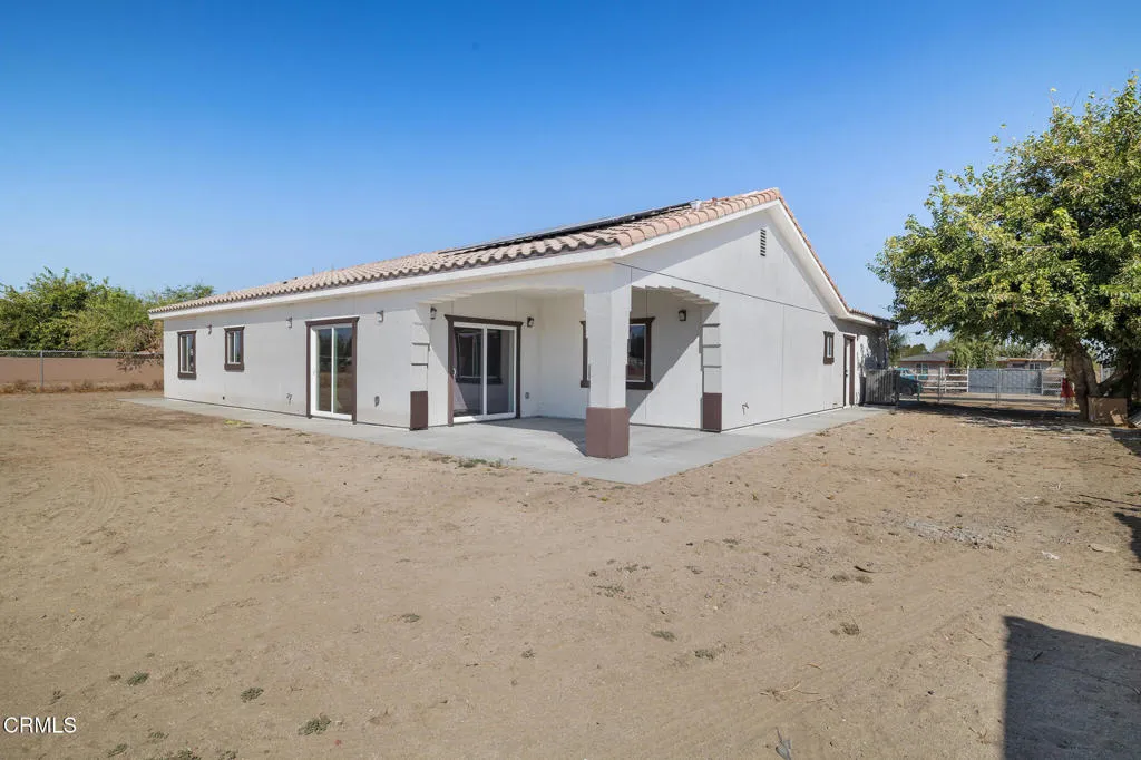 Brand-new 4 bedroom, 2 bathroom home on a spacious 0.79-acre corner lot! This thoughtfully designed floor plan offers privacy with the master suite located away from the other 3 bedrooms. The master includes a large walk-in closet and en-suite bath, while the additional bedrooms are ideal for family, guests, or office space. The heart of the home features a spacious kitchen with abundant cabinet space, a dedicated pantry, and open flow to the dining and living areas -- perfect for both everyday living and entertaining.Enjoy the convenience of an indoor laundry room, a covered back patio, and a two-car garage with extended driveway parking. Built for today's lifestyle, this property is 100% electric with owned solar, providing energy efficiency and long-term savings. With nearly an acre of land, there's plenty of room for RV parking, outdoor living, or future improvements -- all while enjoying the comfort of a modern, move-in ready home.