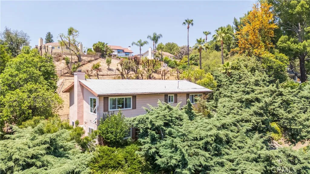 Craving privacy in Granada Hills? Tucked north of Rinaldi and elevated above the street for added seclusion, this 4-bedroom home offers over 2,200 sq ft of thoughtfully designed living space - and a sense of peace you'll feel the moment you pull up the long, private driveway. Mature trees and natural elevation provide a buffer from the outside world, while a detached garage at the end of the driveway offers serious ADU potential. Inside, a spacious living room with crown molding, wood floors, and a cozy fireplace sets the tone for relaxed comfort. The formal dining room is ideal for hosting, while the bright eat-in kitchen features granite countertops, a gas cooktop, newer appliances, and plenty of space for casual meals. A versatile den downstairs makes a perfect office, 5TH BEDROOM, playroom, or gym. Upstairs, the primary suite includes an en-suite bathroom, along with three additional bedrooms and a full hallway bath. Other highlights include newly painted exterior & interior, dual-pane windows, an interior laundry room, a newer water heater, and tree-shaded outdoor space that enhances the home's privacy and curb appeal. Located in one of Granada Hills' most sought-after pockets, you're close to award-winning schools like El Oro Elementary, Robert Frost Middle, and Granada Hills Charter High, as well as parks, hiking trails, and shopping.