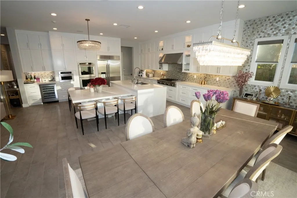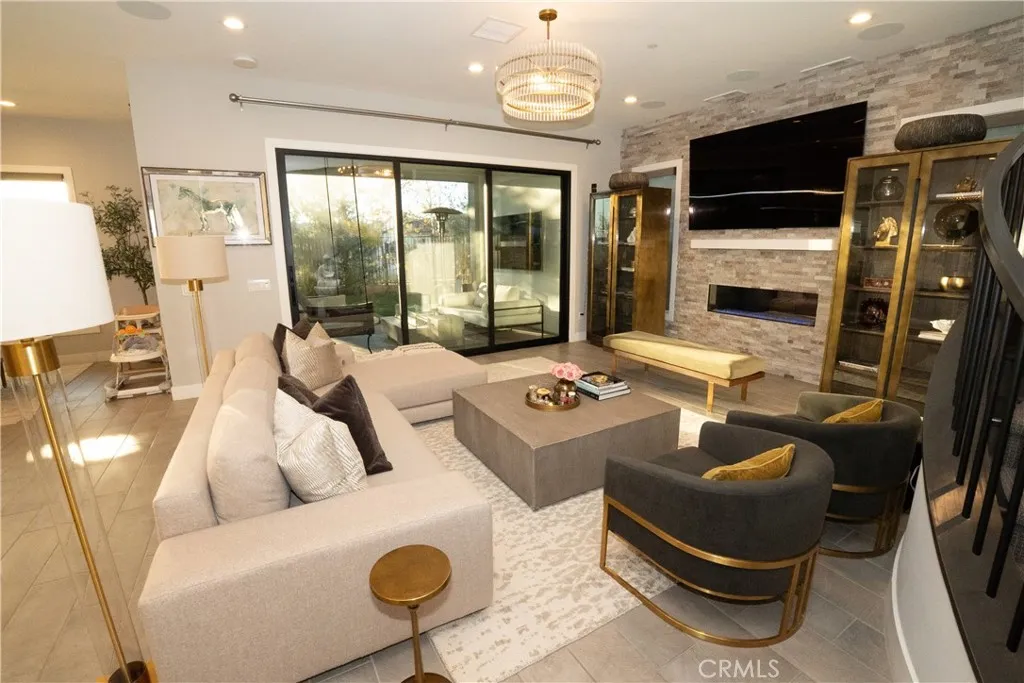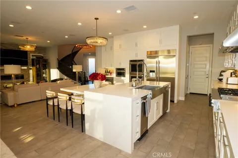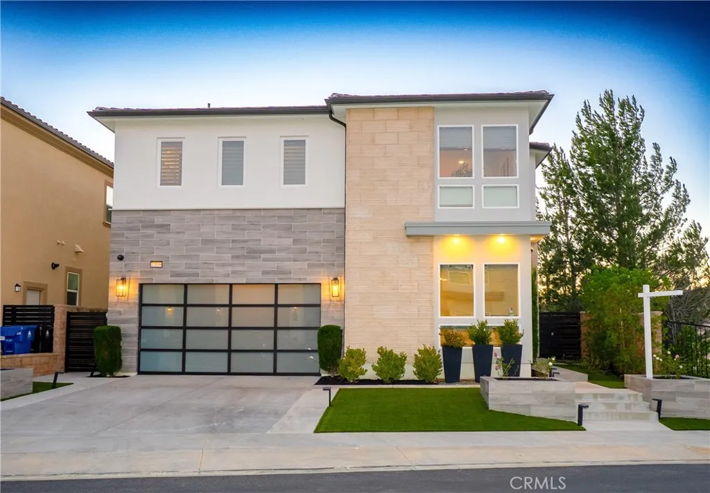 Just like the MODEL HOME everyone falls in love with, this CORNER LOT home with breathtaking VIEWS in the highly sought-after GATED Avila at Porter Ranch community. Conveniently located across from the exclusive Clubhouse with RESORT-STYLE POOL & amenities, this Modern home showcases luxury upgrades throughout. Designed to blend modern luxury and comfort, this home features 5 bedrooms and 5 bathrooms, along with a GOURMET KITCHEN that showcases Calacatta quartz waterfall and an extended island. The kitchen is equipped with built-in JENN-AIR Pro appliances, custom high-ceiling upgraded craftsman cabinetry, and an expansive, captivating kitchen and dining backsplash. The Great Room features a designer linear fireplace embedded into a cream gold stack quartzite wall, an upgrade reserved only for the model homes. Expansive MULTI-PANEL STACKING DOORS in the great room provide the perfect escape to a cozy outdoor living space for seamless indoor-outdoor entertaining with a decked up in-built speaker and woofer system. The primary suite features a private DECK, spa-style main bathroom with his and hers, oversized custom rain head shower, and exotic bathtub, along with quartz blizzard waterfall countertops seamlessly blended into a background of antique bronze mirrors. This tech-savvy home features full automation with CONTROL4 Smart System, upgraded app-controlled lighting and temperature control, an upgraded home theater speaker and woofer system with simultaneous loop play in the great room, kitchen, patio, main bedroom, and loft, indoor and outdoor security cameras, and a centralized in-built vacuum system. Additional highlights include ELEGANT custom flooring and carpeting, an upgraded spiral staircase, SOLAR panels, and epoxy garage floors with an EV charging station. This is Porter Ranch living at its finest. LUXURY, CONVENIENCE, and an unbeatable LOCATION (right next to Porter Ranch community school and the renowned Sierra Canyon School). The Vineyards at Porter Ranch, which is the premier entertainment, shopping, and dining destination, is within a short distance, showcasing why this is such a highly desirable location to call home.