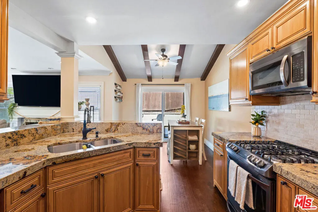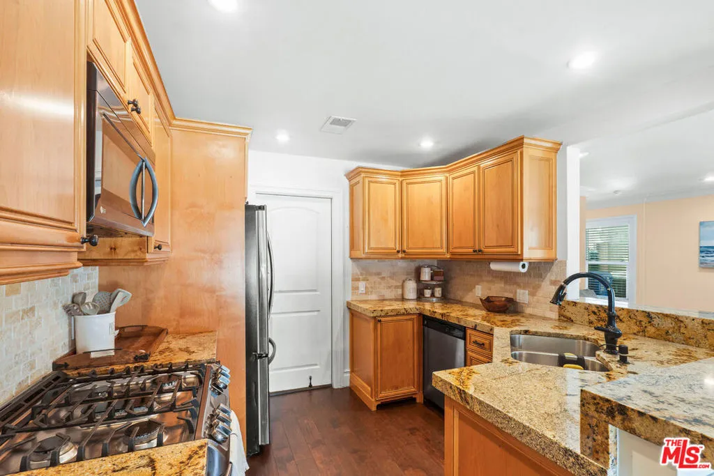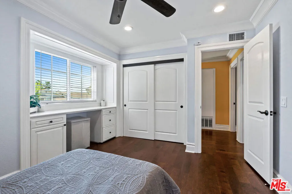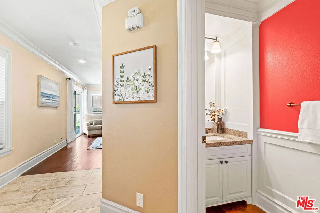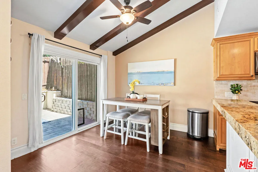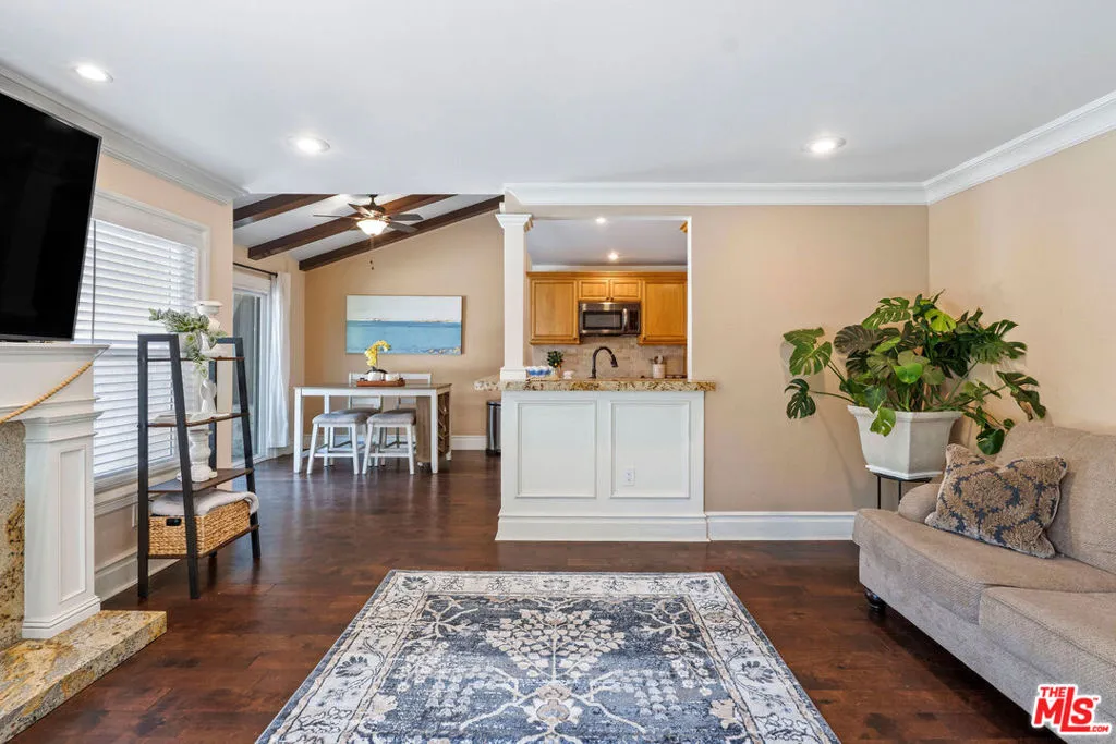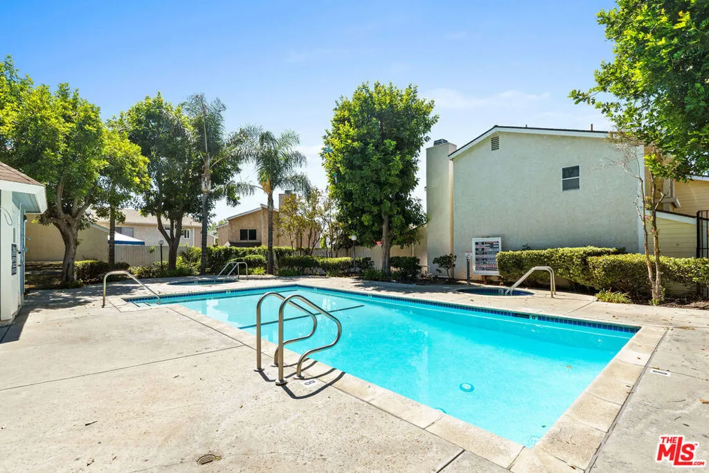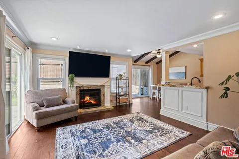 Welcome home to this beautiful 3-bedroom, 3-bath residence offering 1,901 sq. ft. of thoughtfully designed living space! Step through the covered entry and into an open-concept layout that seamlessly connects the living room, dining area, and kitchen. Natural light highlights the decorative fireplace, crown molding, wood-like floors, and charming wood beam ceilings.The kitchen features granite countertops, custom cabinetry, and stainless steel appliances. A stylish half bath and large hallway closet complete the downstairs.Upstairs, the spacious primary suite includes generous closet space and a full en-suite bath. Two additional bedrooms offer flexibility, including one with a built-in desk ideal for a home office. Another full bath completes the upper level.Enjoy your private yard, perfect for morning coffee or evening relaxation. The attached 2-car garage includes a laundry area for added convenience.Located in a 24-hour gated community with a pool and spa, and just minutes from the 210 and 5 freeways. This home has it all!