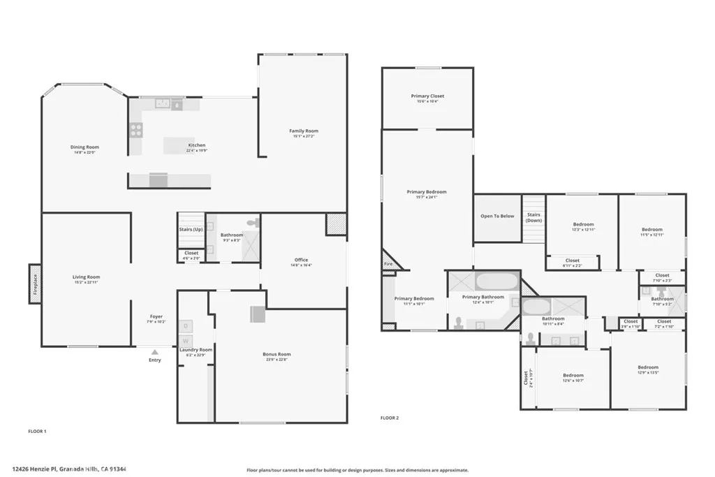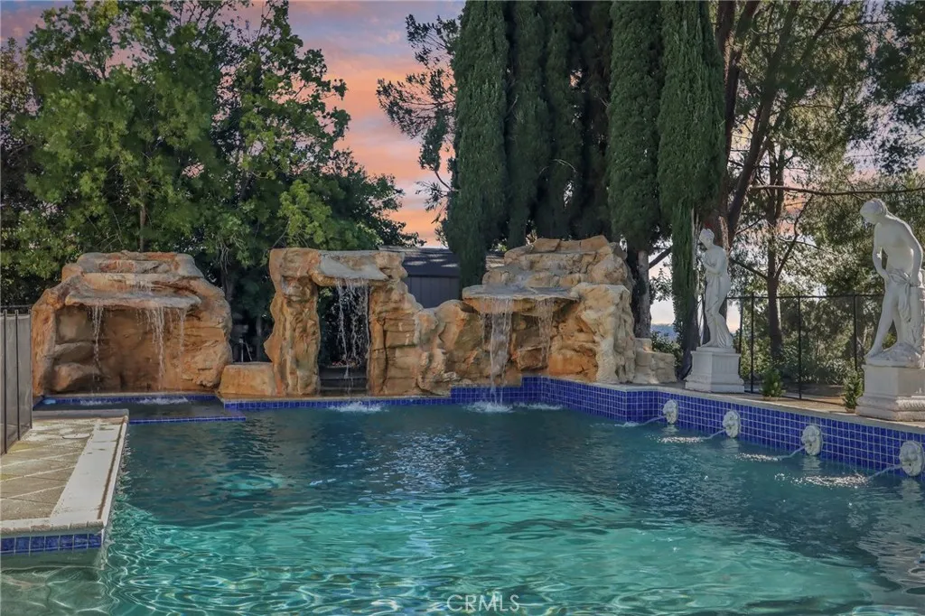 Luxurious Mediterranean Modern Villa in Prestigious Granada Hills. Nestled north of Rinaldi in the highly sought-after Granada Hills enclave, this breathtaking Mediterranean modern villa embodies the perfect fusion of timeless elegance and contemporary sophistication. Boasting over 4,800 square feet of meticulously designed living space on a rare double lot spanning more than 26,700 square feet, this residence offers both grandeur and serenity in every corner. Step through the impressive double doors and be welcomed into a home designed for true entertainers. The open-concept floor plan is bathed in natural light, showcasing seamless transitions between the expansive living areas. The grand living room, anchored by a sleek gas fireplace, flows effortlessly into the formal dining room - perfect for intimate dinners or lavish gatherings. The chef's kitchen is a culinary masterpiece, featuring modern cabinetry, quartz countertops, and premium appliances, all opening to a spacious family room ideal for relaxed living. The primary suite is a private sanctuary complete with its own balcony, spa-inspired en-suite bathroom with dual sinks, a soaking tub, a glass-enclosed shower, and an elegant dressing/sitting area with generous closet space. Step outside to an entertainer's paradise, where a covered patio overlooks a sparkling pool and spa with a cascading waterfall, a charming gazebo, and tranquil canyon views - the perfect backdrop for year-round enjoyment. Additional highlights include, bonus room ideal for a game room or gym, copper plumbing, upgraded central A/C, a quiet cul-de-sac location, and expansive grounds with ample space to add an ADU or further customize your private retreat. This is truly a one-of-a-kind estate - a rare blend of luxury, privacy, and exceptional value - making it one of the best-priced luxury homes in Granada Hills.