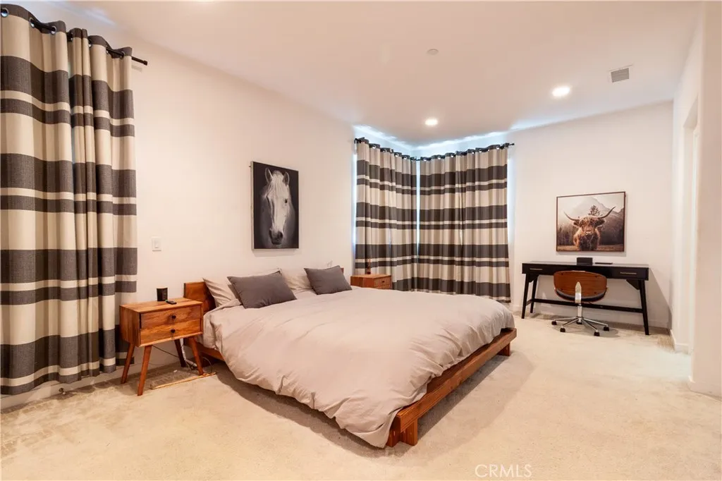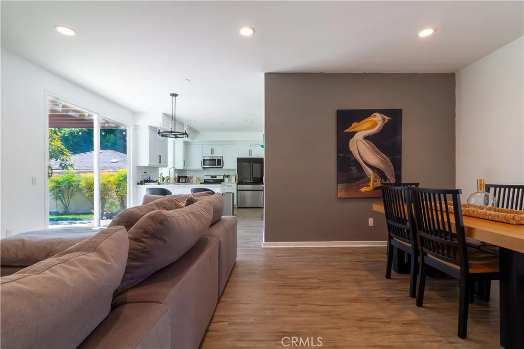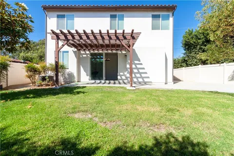 Welcome Home! Contemporary 4-bedroom, 3 bathroom home built in 2017, offering modern style, comfort, and functionality. Upon entering, you'll appreciate the open-concept floor plan featuring a spacious great room seamlessly connected to the dining area perfect for gatherings and everyday living. The kitchen boasts quartz countertops, recessed lighting, stainless steel appliances, and pantry. A sliding glass door leads to the private backyard, surrounded by mature trees that create a peaceful outdoor space. Upstairs, discover the primary suite with a large walk-in closet and a luxurious bathroom featuring dual vanities with quartz counters, a soaking tub, and a separate shower. Three additional bedrooms and a shared full bathroom complete the second floor. Additional highlights include a solar power system for energy efficiency and an attached garage. The home's convenient location provides easy freeway access and is just minutes from Hansen Dam Recreation Park,