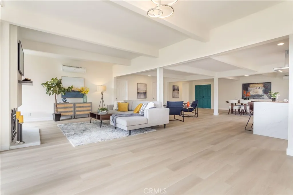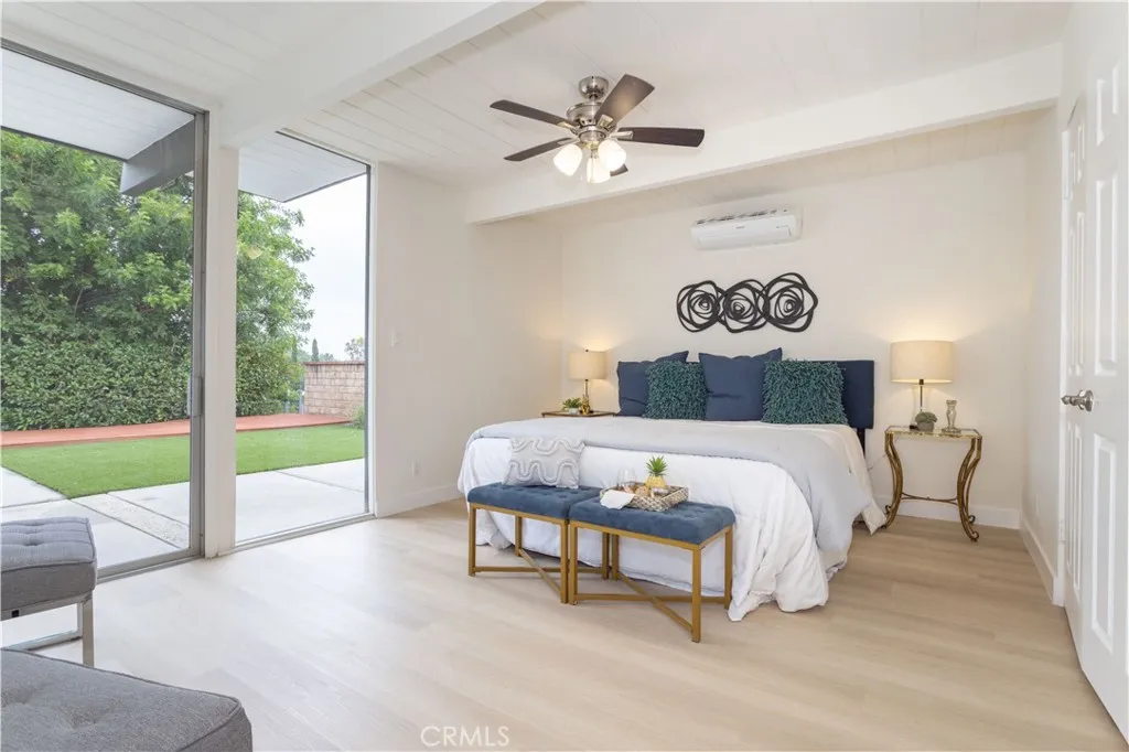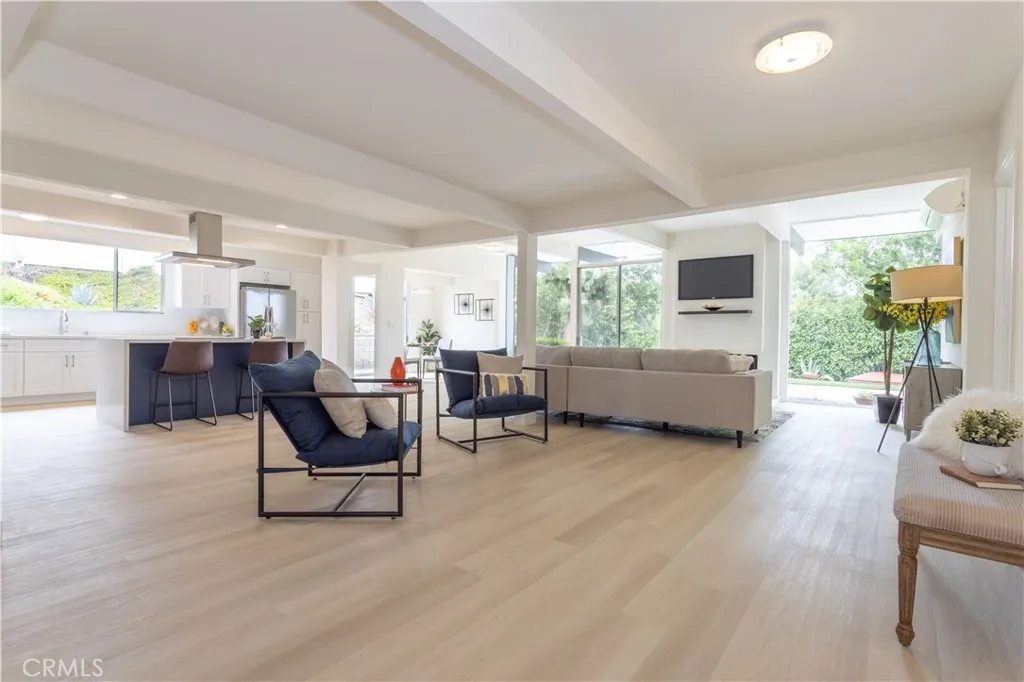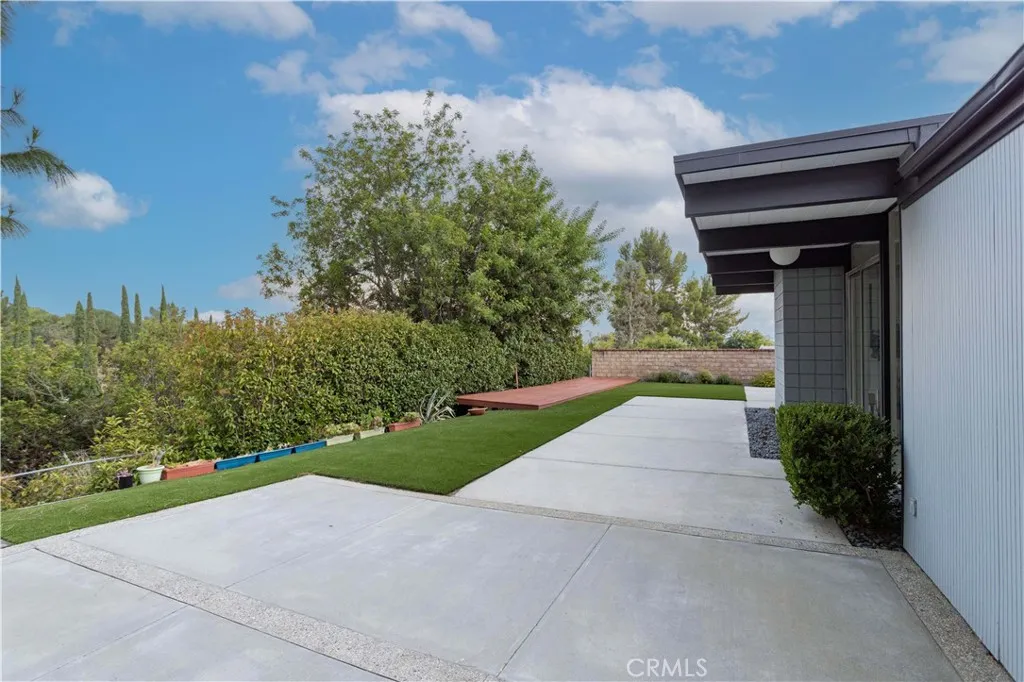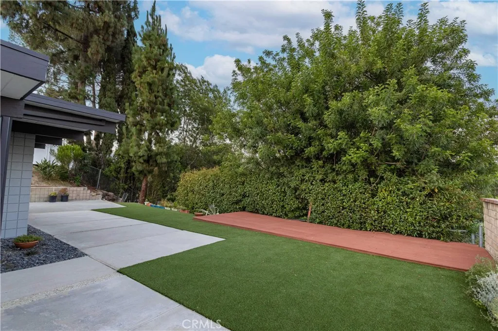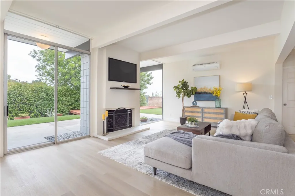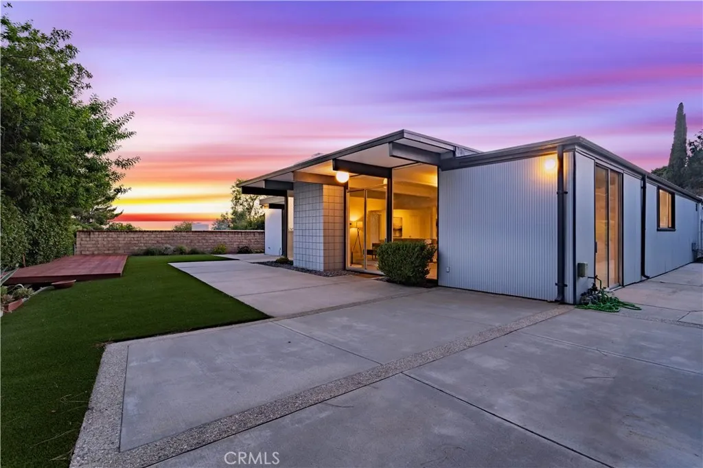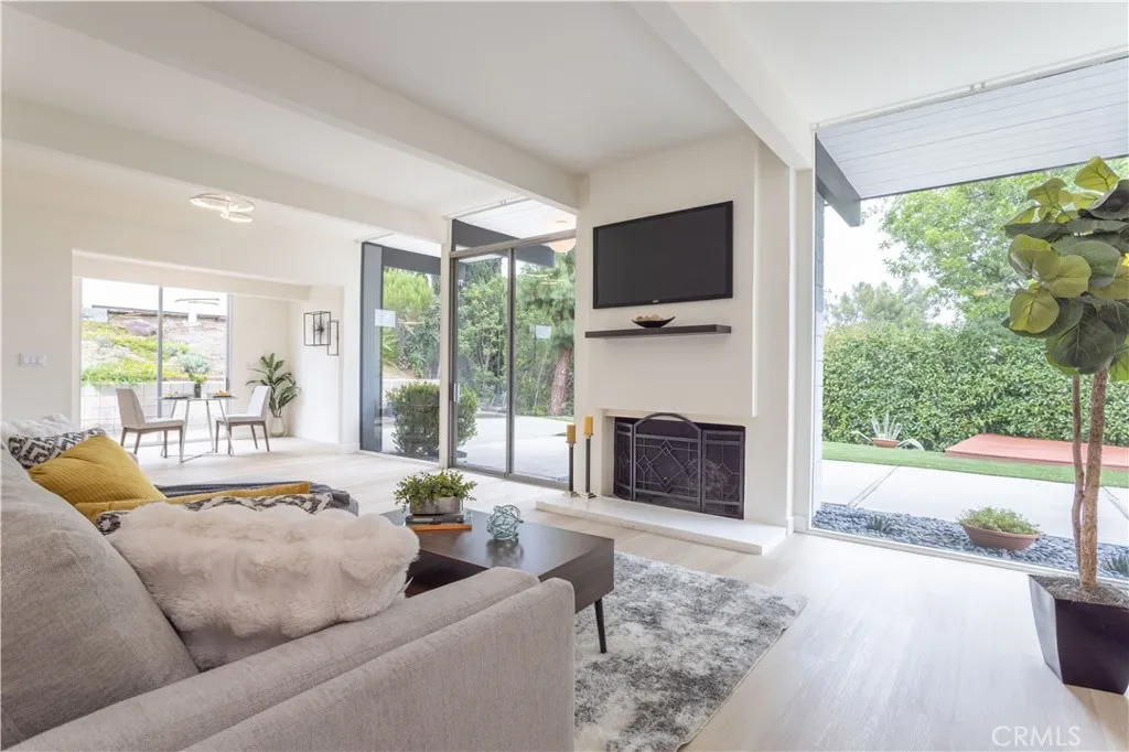 Dreaming of a totally updated mid-century modern home in Granada Hills with iconic architecture and open-concept living? This non-contributory Eichler home was originally designed by renowned architect A. Quincy Jones and has been completely remodeled with modern finishes while preserving its iconic charm. Featuring 4 bedrooms and 2 bathrooms, this light-filled home offers a massive great room with an ultra-open layout, brand-new kitchen with waterfall-edge quartz countertops, stainless steel appliances, subway tile backsplash, new cabinetry, an eat-in area, formal dining space, and a large island with room for stools. Enjoy multiple sitting areas, a cozy living room fireplace, new flooring throughout, and tons of recessed lighting. The primary suite includes a white wood ceiling, walk-in closet, and attached updated bathroom, while the three additional bedrooms share a beautifully remodeled hallway bath. There's also an inside laundry area and an open, airy design with plenty of windows. Step outside to enjoy the low-maintenance backyard with artificial grass, a spacious deck, and multiple areas perfect for relaxing or entertaining outdoors. Located north of Rinaldi in Granada Hills, this mid-century modern home sits within the Balboa Highlands Historic Preservation Overlay Zone. Whether you're a fan of mid-century design, Eichler architecture, or simply moving to Granada Hills for its parks, hiking trails, top schools, or easy freeway access, this modernized Eichler-inspired home is not to be missed.