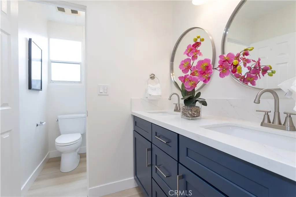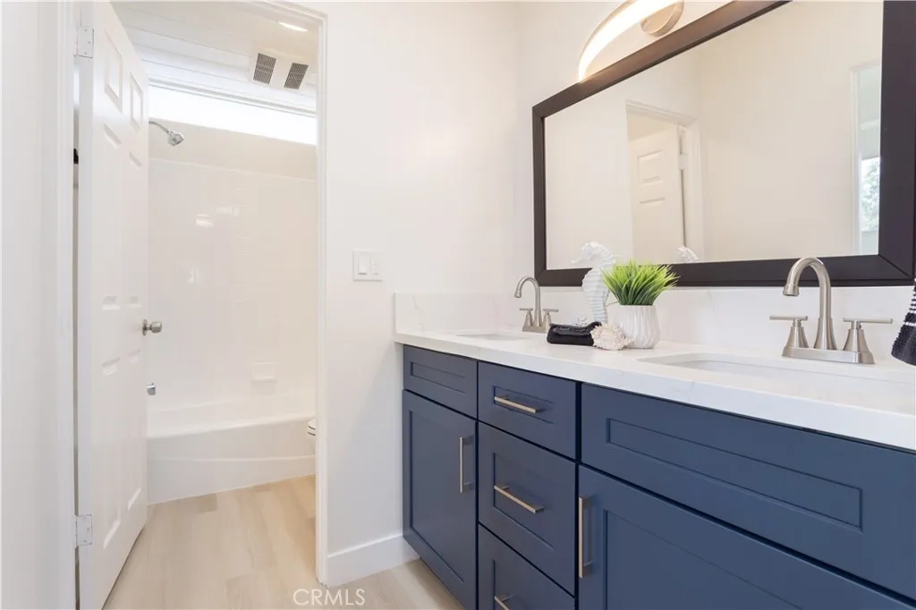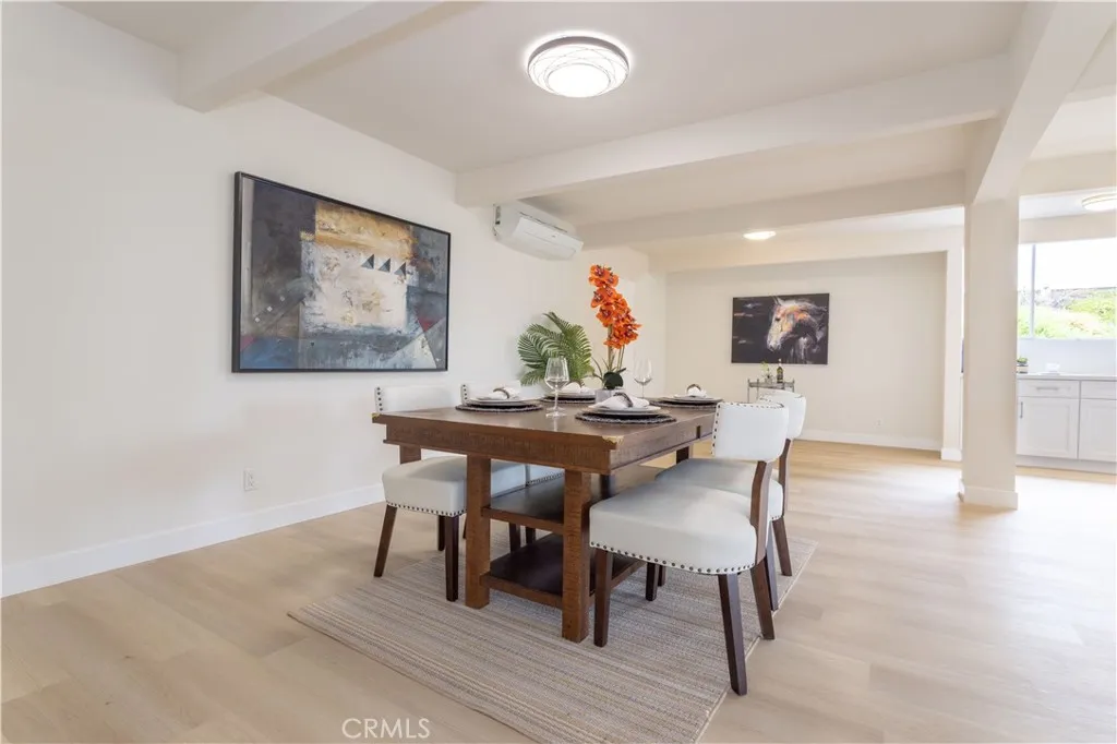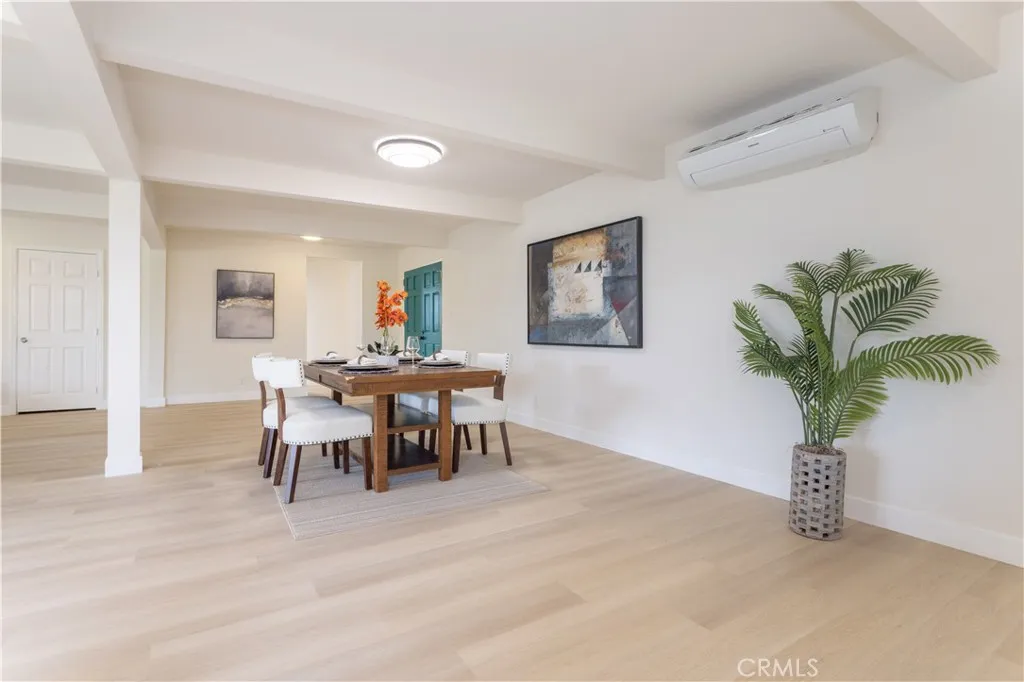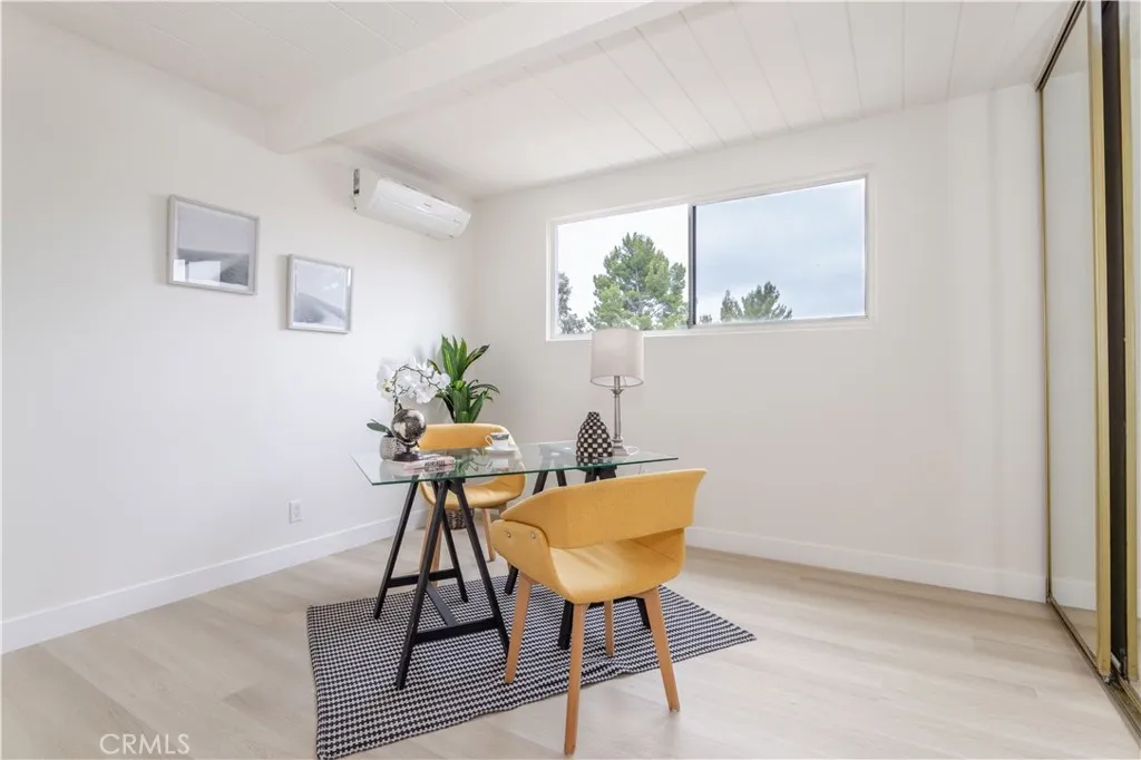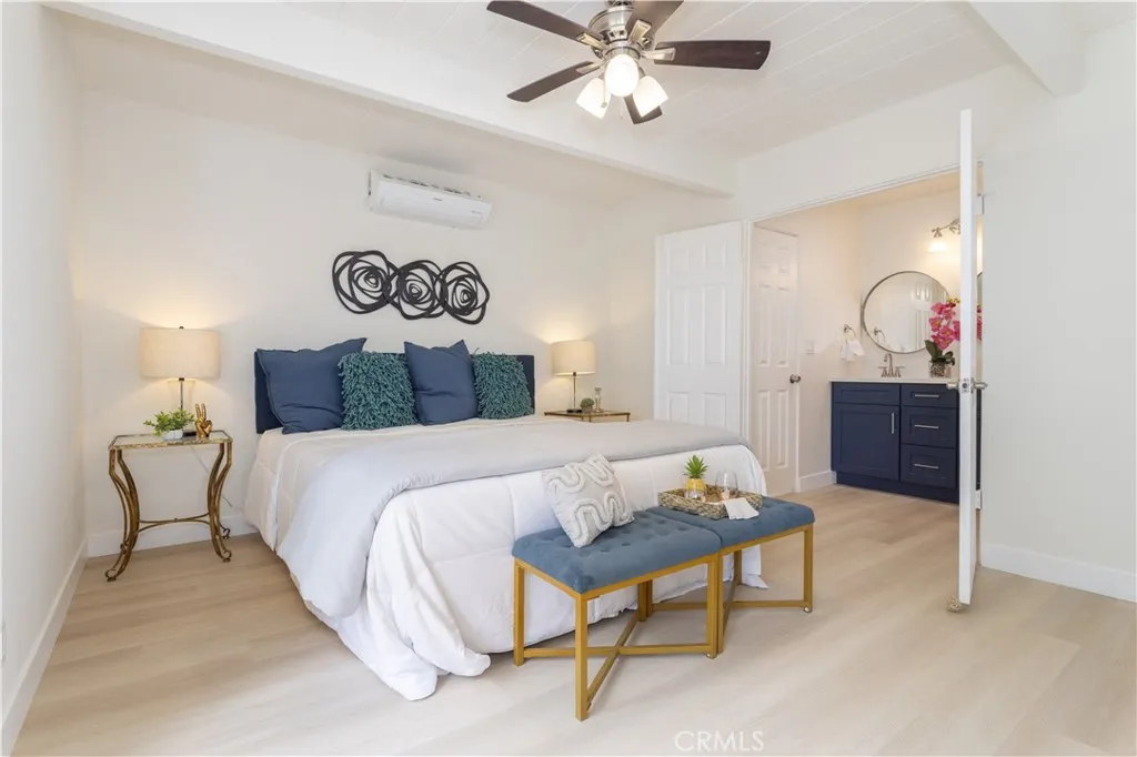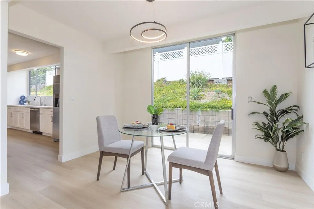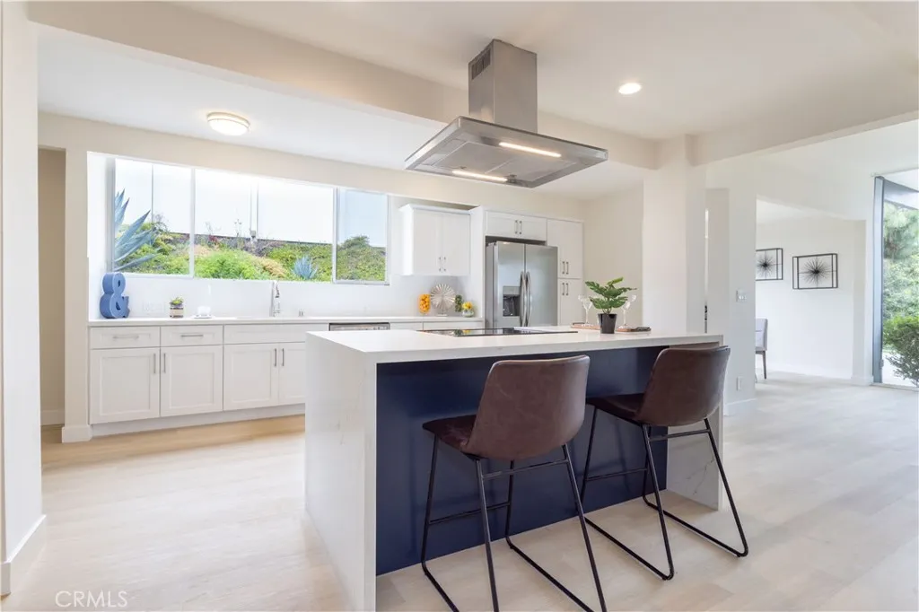 Dreaming of a totally updated mid-century modern home in Granada Hills with iconic architecture and open-concept living? This non-contributory Eichler home was originally designed by renowned architect A. Quincy Jones and has been completely remodeled with modern finishes while preserving its iconic charm. Featuring 4 bedrooms and 2 bathrooms, this light-filled home offers a massive great room with an ultra-open layout, brand-new kitchen with waterfall-edge quartz countertops, stainless steel appliances, subway tile backsplash, new cabinetry, an eat-in area, formal dining space, and a large island with room for stools. Enjoy multiple sitting areas, a cozy living room fireplace, new flooring throughout, and tons of recessed lighting. The primary suite includes a white wood ceiling, walk-in closet, and attached updated bathroom, while the three additional bedrooms share a beautifully remodeled hallway bath. There's also an inside laundry area and an open, airy design with plenty of windows. Step outside to enjoy the low-maintenance backyard with artificial grass, a spacious deck, and multiple areas perfect for relaxing or entertaining outdoors. Located north of Rinaldi in Granada Hills, this mid-century modern home sits within the Balboa Highlands Historic Preservation Overlay Zone. Whether you're a fan of mid-century design, Eichler architecture, or simply moving to Granada Hills for its parks, hiking trails, top schools, or easy freeway access, this modernized Eichler-inspired home is not to be missed.