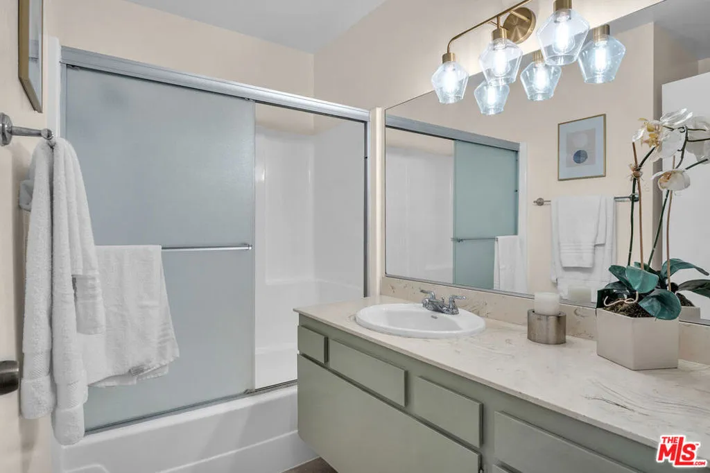 Searching for a stylish modern home with a prime Valley Village location? This newly remodeled 2-bedroom, 2-bath condo in the desirable Briarcrest community blends comfort, practicality, and understated elegance! Enter to discover soft carpeting, calming neutral tones, and an impressive floor-to-ceiling window overlooking verdant treetops. A sleek corner fireplace anchors the light-filled living and dining areas, while the adjacent kitchen gleams with stainless steel appliances, abundant cabinetry, and a decorative backsplash. A flexible work or entertaining space, the tucked-away nook with pendant lighting currently features a bar ready for hosting, but can be converted to meet any need.Enjoy walk-in closets in both serene bedrooms, and be inspired by the sophistication of the built-in make-up vanity in the primary suite. Beyond the front door, the complex offers a pool, spa, gym, sauna, dedicated parking, and controlled entry for security. Minutes from Los Angeles Valley College, the NoHo Arts District, and Studio City, you'll have easy access to scenic parks and major freeways. Come see where fresh design defines L.A.'s urban lifestyle, as your next chapter starts right here!