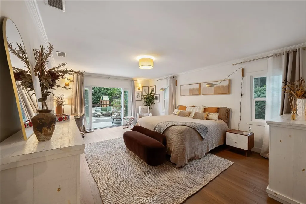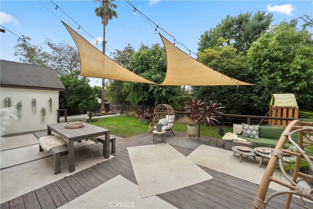 Hidden behind gates on a private, quarter-acre lot in the highly sought-after Magnolia Estates pocket of Sherman Oaks, this charming home seamlessly blends timeless character with thoughtful, modern upgrades. Inside, the open-concept main living space features a tastefully remodeled kitchen equipped with top-of-the-line appliances & french limestone counters, a formal dining room and spacious living room that boasts vaulted ceilings and a cozy fireplace. French doors open to an expansive deck that invites outdoor living and entertaining. Outside, the serene backyard retreat offers a private haven surrounded by mature landscaping. There are three generously sized bedrooms and two full bathrooms, including an inviting primary suite with a walk-in closet and spa-inspired bathroom, complete with a soaking tub, separate shower and double vanity. Additional highlights include a Nest thermostat, two-car garage with laundry and gated driveway that offers abundant parking. This property is conveniently located just moments from Westfield Fashion Square, Ventura Boulevard's premier shopping and dining, and so much more.