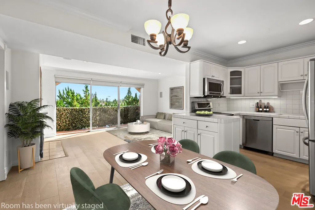 Welcome to this bright and airy top-floor condo, ideally located near Ventura Boulevard shops and restaurants. This 2-bedroom, 2-bathroom unit offers a well-designed floor plan with bedrooms and bathrooms situated on opposite sides of the open living area. The modern kitchen features stainless steel appliances and opens to a dining area with a wet bar - perfect for entertaining. The inviting living room includes a fireplace and sliding doors to a private balcony. Additional features include an in-unit washer and dryer, ample closet space, fresh paint, and 2 gated parking spaces. Residents also enjoy community amenities such as a pool and landscaped grounds.