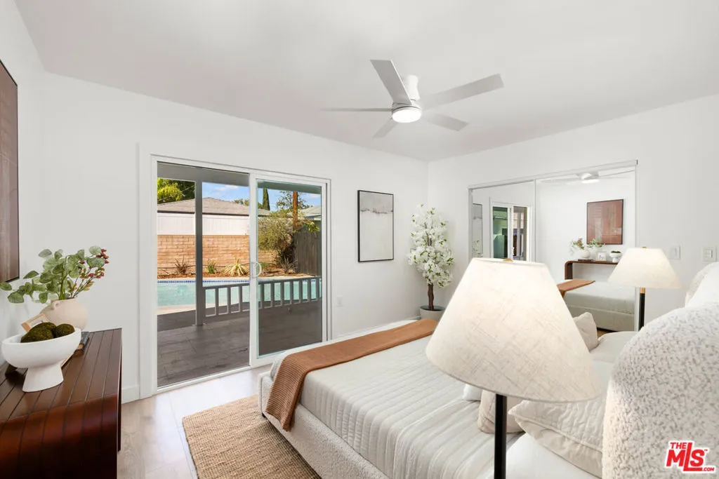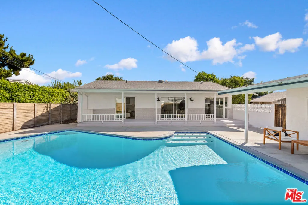 Situated on a quiet cul-de-sac in a desirable Granada Hills neighborhood, this beautifully updated pool home offers a refined blend of modern style, comfort, and versatility. Featuring three bedrooms and three upgraded bathrooms, the home showcases bright, open interiors with wide-plank flooring, fresh finishes, and abundant natural light throughout. The contemporary kitchen is designed for both everyday living and entertaining, highlighted by sleek cabinetry, premium countertops, modern lighting, and a seamless flow into the main living spaces. Each bathroom has been tastefully remodeled with designer tile, quality fixtures, and a clean, spa-inspired aesthetic. Sliding glass doors and generous glazing create an effortless indoor-outdoor connection, leading to a private backyard retreat complete with a sparkling pool and expansive patio ideal for relaxing, hosting, and enjoying Southern California living year-round. A large detached two-car garage adds exceptional flexibility and potential, whether envisioned as a pool house, creative studio, guest space, or possible ADU conversion (buyer to verify). Conveniently located near shopping, dining, and commuter routes, this move-in-ready home delivers style, function, and outdoor living in one of Granada Hills' most sought-after settings. THIS IS A MUST SEE!