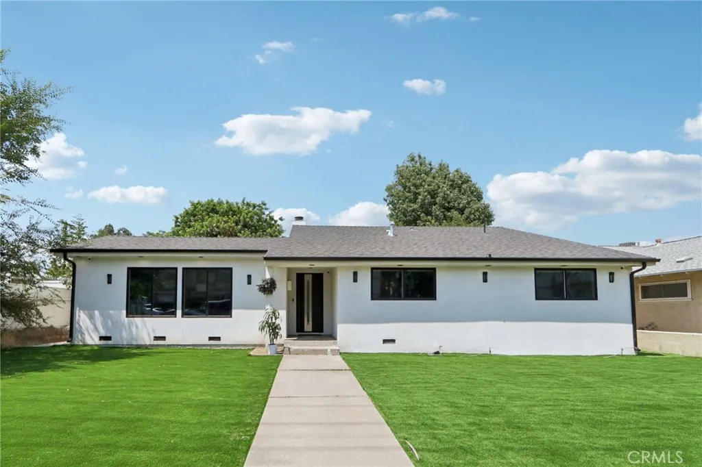 Beautifully remodeled home located in Granada Hills. Seller spent thousands of $$$'s on this Stunner!! Situated on a spacious 7,800 sqft lot, this 1,780 sqft 3 bed, 2-bath home offers impressive curb appeal with a modern black-and-white exterior, a stylish front door, and new artificial grass that stays green year-round. Step inside to find luxurious flooring throughout, a formal dining area with a custom accent wall, sleek fireplace, and designer raised ceilings. The open-concept chef's kitchen is equipped with stainless steel appliances and a central island that opens seamlessly to the spacious family room with built-in speakers and a modern fireplace - perfect for entertaining. The primary suite includes a beautifully remodeled en-suite bathroom with dual vanity and walk-in shower, while two additional bedrooms share an updated full bath. Outside, enjoy a covered patio with recessed lighting and built-in speakers, a large backyard for gatherings, and a detached garage with alley access - ideal for an ADU (buyer to verify). There's an extra storage structure for added convenience. Located near shopping centers with easy freeway access, this turnkey home truly has it all. Don't miss your chance to make it yours!