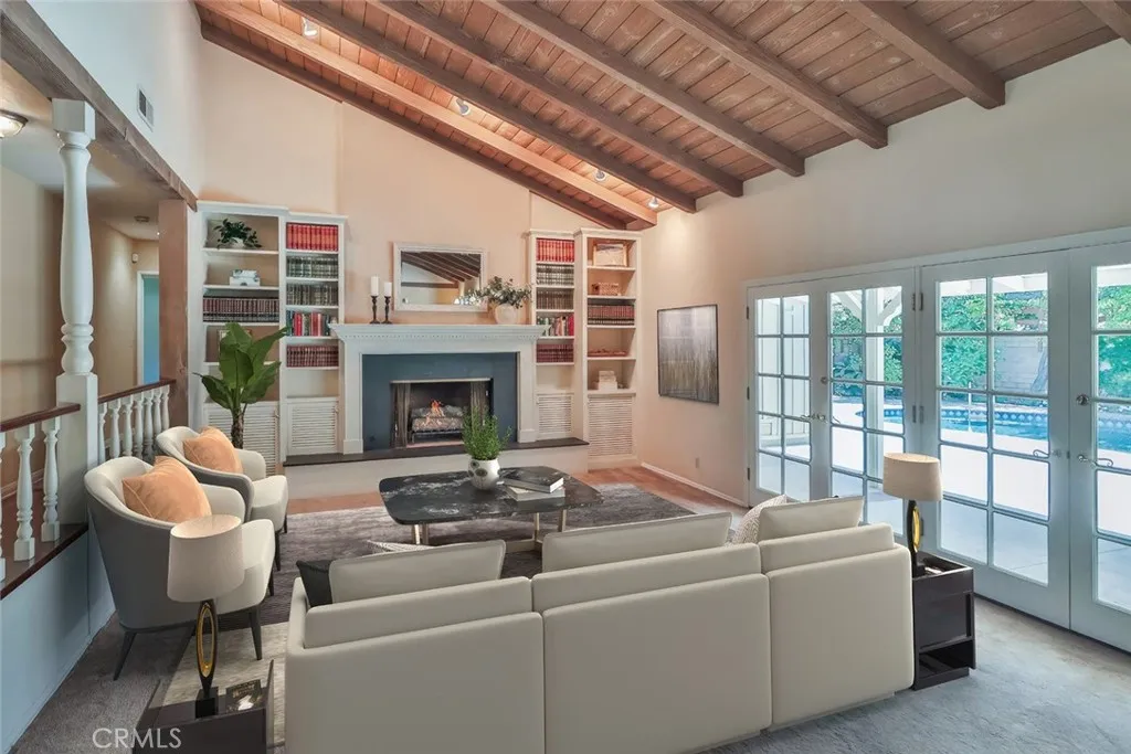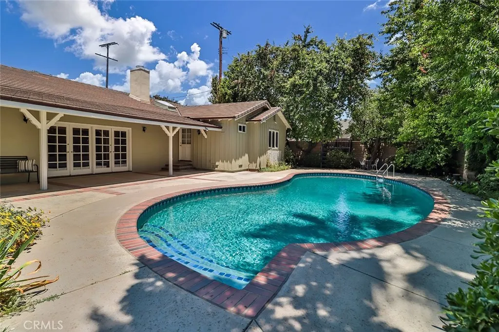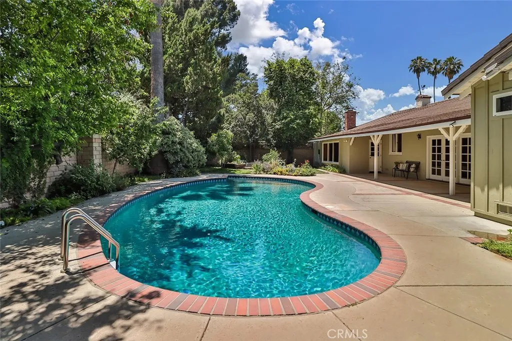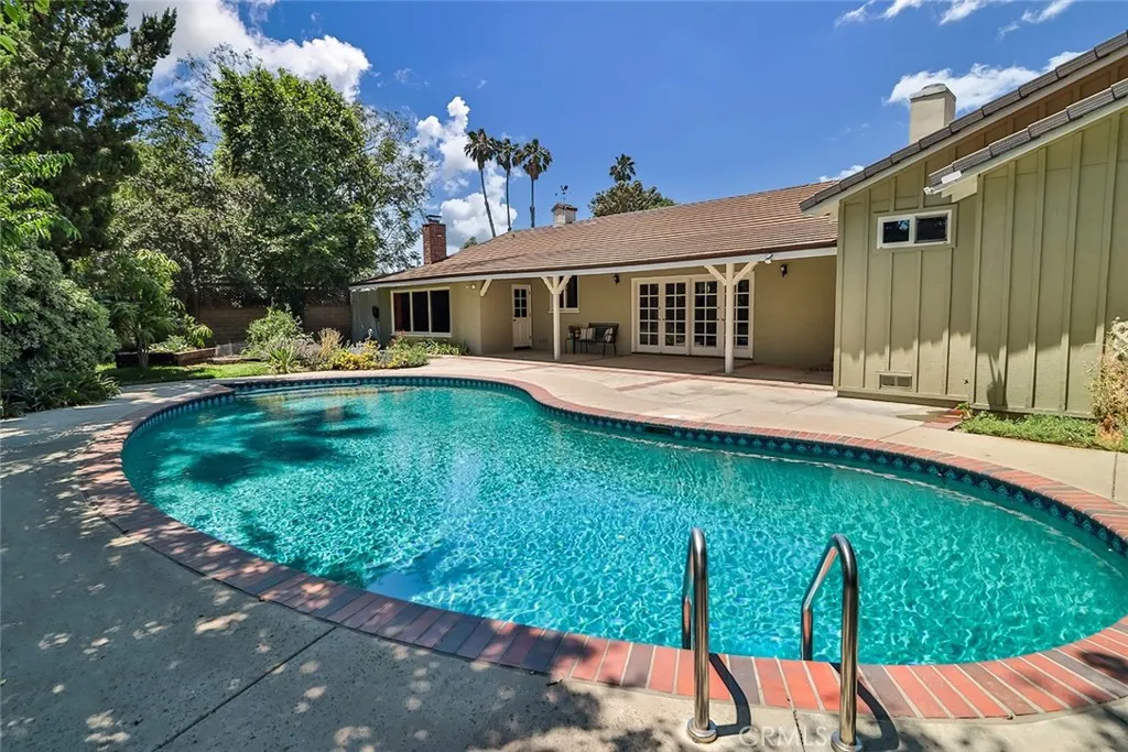 Elegance, comfort, and timeless charm come together in this beautifully maintained single-story home, nestled on an expansive 10,647 sq ft lot. Offering 3 spacious bedrooms, 3 bathrooms, and a dedicated office, this 2,551 sq ft residence blends functionality with refined style. Accentuated by a lush lawn and a classic meandering walkway, the home welcomes you with warmth and character. Inside, natural light fills every corner, enhancing the inviting ambiance. The spacious living room features vaulted beamed ceilings, a fireplace, and French doors that open to the rear patio, effortlessly connecting indoor and outdoor living.The cozy den is ideal for entertaining, complete with its own fireplace, built-in bar, and guest bathroom, making it a perfect space for gatherings, game nights, or relaxed evenings in. The additional office provides a peaceful space for remote work, study, or creative pursuits. Step outside to your private backyard oasis complete with a sparkling pool, mature landscaping, vegetable garden boxes, and many fruit-bearing trees including mango, peach, plum and more, all surrounded by greenery for enhanced privacy. Ideally located near CSUN, Northridge Fashion Center, and top-rated schools including the coveted Granada Hills Charter High School and Northridge Academy High School (NAHS). Enjoy easy access to outdoor recreation at Northridge Recreation Center, nearby Dearborn Park, and the vibrant CSUN campus with its Botanic Garden and planetarium. A rare opportunity to own a home that offers space, serenity, and convenience in one of the Valley's most desirable neighborhoods. Several of the images have been virtually staged.
