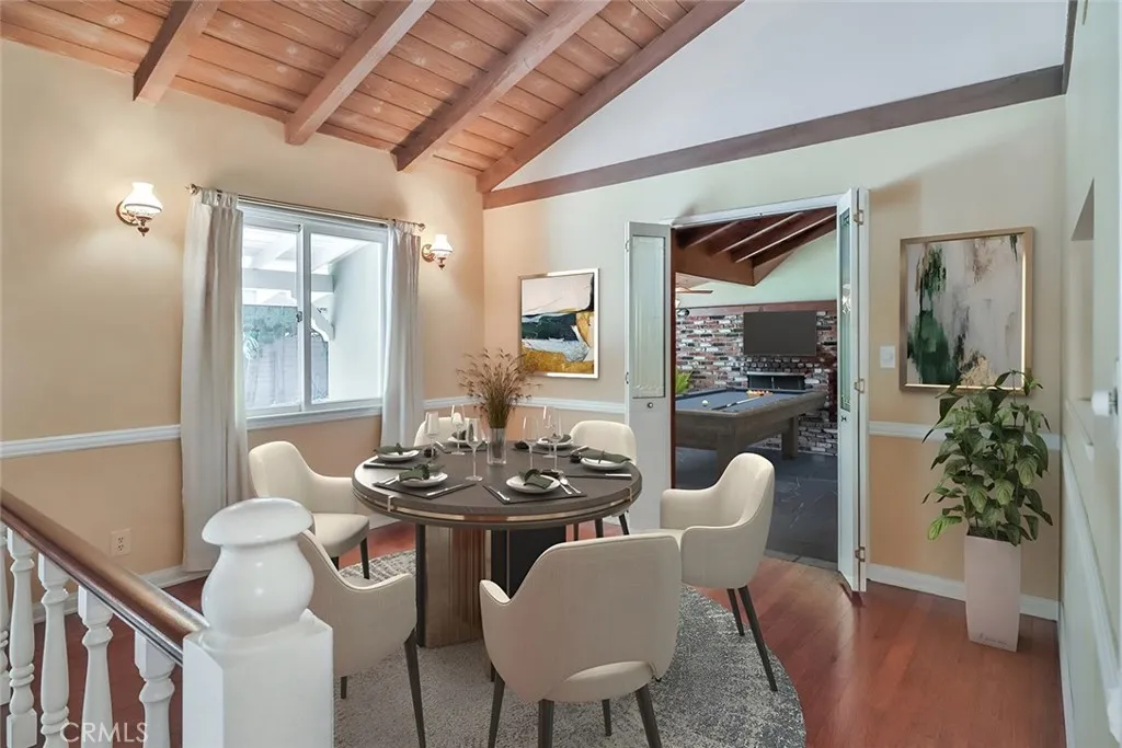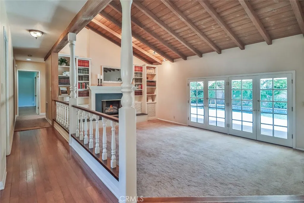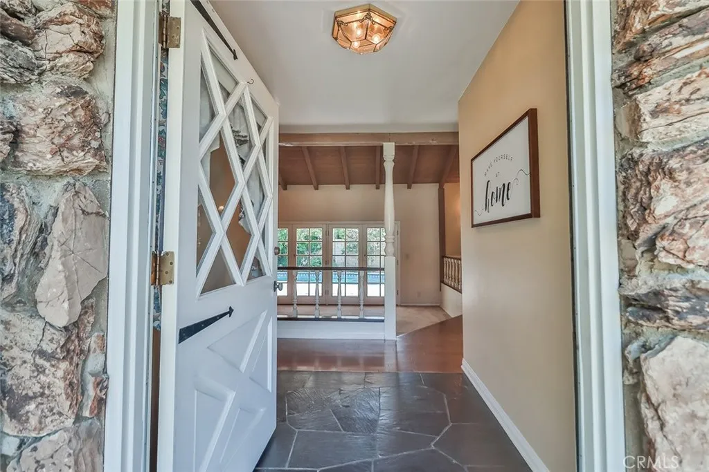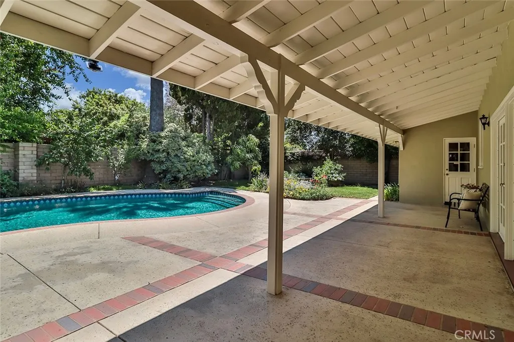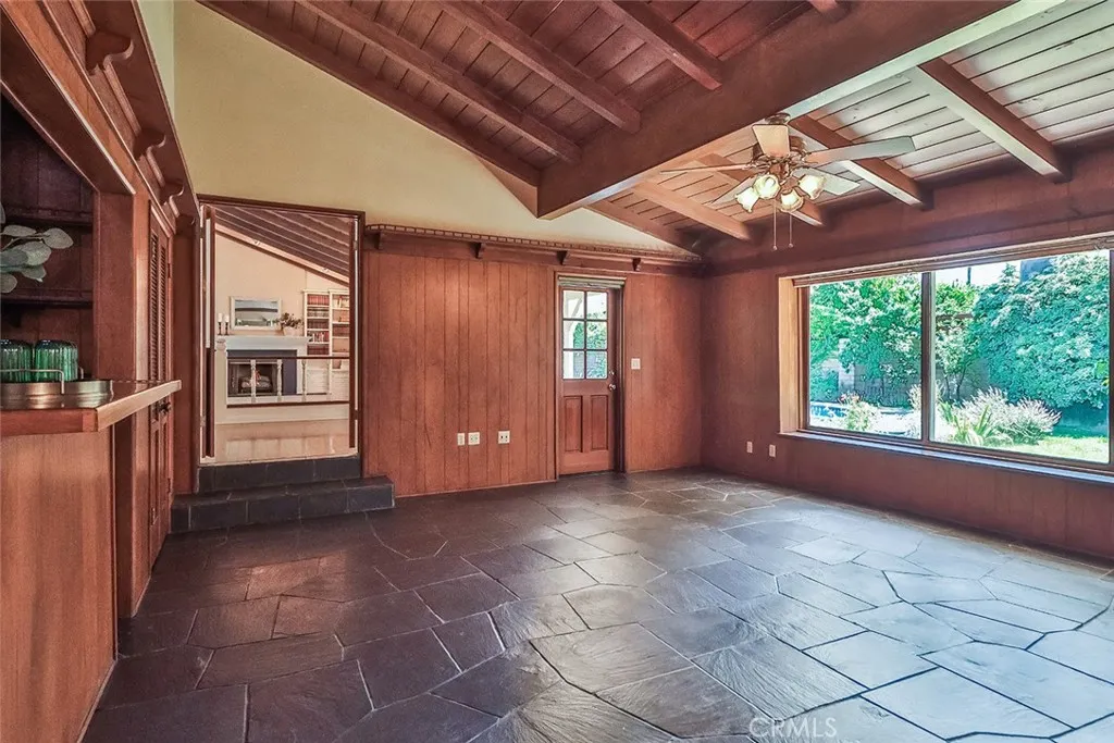 Elegance, comfort, and timeless charm come together in this beautifully maintained single-story home, nestled on an expansive 10,647 sq ft lot. Offering 3 spacious bedrooms, 3 bathrooms, and a dedicated office, this 2,551 sq ft residence blends functionality with refined style. Accentuated by a lush lawn and a classic meandering walkway, the home welcomes you with warmth and character. Inside, natural light fills every corner, enhancing the inviting ambiance. The spacious living room features vaulted beamed ceilings, a fireplace, and French doors that open to the rear patio, effortlessly connecting indoor and outdoor living.The cozy den is ideal for entertaining, complete with its own fireplace, built-in bar, and guest bathroom, making it a perfect space for gatherings, game nights, or relaxed evenings in. The additional office provides a peaceful space for remote work, study, or creative pursuits. Step outside to your private backyard oasis complete with a sparkling pool, mature landscaping, vegetable garden boxes, and many fruit-bearing trees including mango, peach, plum and more, all surrounded by greenery for enhanced privacy. Ideally located near CSUN, Northridge Fashion Center, and top-rated schools including the coveted Granada Hills Charter High School and Northridge Academy High School (NAHS). Enjoy easy access to outdoor recreation at Northridge Recreation Center, nearby Dearborn Park, and the vibrant CSUN campus with its Botanic Garden and planetarium. A rare opportunity to own a home that offers space, serenity, and convenience in one of the Valley's most desirable neighborhoods. Several of the images have been virtually staged.