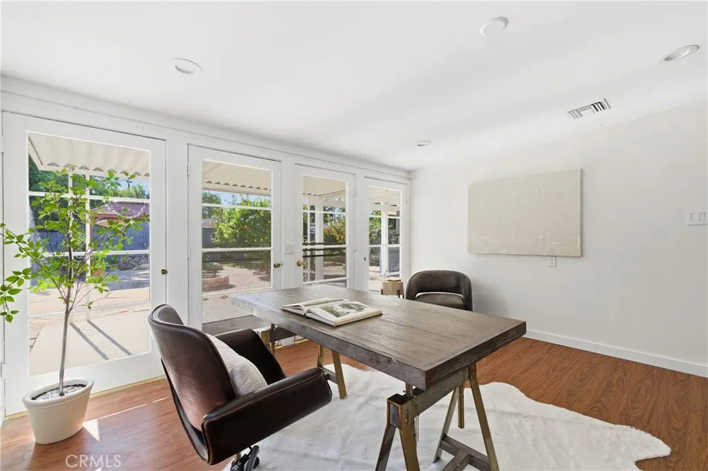 Welcome to this beautifully updated single-story home centrally located in Northridge where comfort, character, and California living come together seamlessly. Step inside and you'll immediately notice the warmth of the hardwood floors, the custom mill work and the natural light that fills every room. With nearly 1500SqFt this 4-bedroom, 2-bath, home has been thoughtfully improved from top to bottom and it's truly move-in ready. The remodeled kitchen features refaced cabinets, updated countertops, a commercial-style stove, new dishwasher, and a new exhaust hood, plus a built in water purification system. Enjoy the comfort of a new HVAC system, recessed lighting, crown molding, custom updated bathrooms with hydro therapy spa tub, and new interior and exterior paint. Major systems have been handled too, including an upgraded 200-amp electrical panel with sub-panel, 90% repiped plumbing with copper, and a tankless water heater for efficiency and convenience. Outside, discover your own backyard retreat designed for blissful California entertaining complete with an outdoor kitchen patio, gazebo, pond with tranquil waterfall and lush landscape featuring; cherry, apricot, Meyer & Eureka lemon, and elderberry trees, along with rosemary, lavender, roses, and coffeeberry creating an aromatic garden that invites relaxation. This is a home where style meets substance, and every upgrade tells a story of care and pride. Perfect for first-time buyers, small families, or anyone seeking single-level comfort in one of the most central San Fernando Valley locations possible.