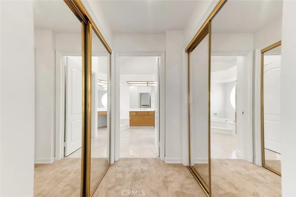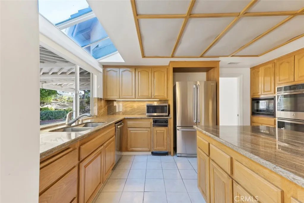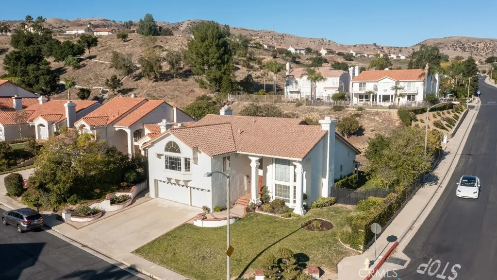 Experience refined living in this elegant 4 bed, 3.5 bath, nearly 4,000 sqft residence in the prestigious 24-hour guard-gated Porter Ranch Estates. Set on desirable corner lot with stately curb appeal, this home offers 3-car garage, brick-accented drive & walkways, & a charming covered front porch framed by classic columns. Inside, fresh paint and brand-new carpet enhance the light-filled interior, where a formal tile entry opens to a dramatic step-down living room with soaring two-story ceilings, an impressive bay window that floods the space with natural light, and a striking fireplace that anchors the room. The open floor plan flows gracefully through flanking columns into the formal dining room with decorative coffered ceiling and double-height windows overlooking the private yard. The spacious kitchen blends style and function with wood cabinetry, stone countertops, a large center island, and built-in appliances including double ovens, plus a sunny breakfast nook with glass sliders leading to the back patio. The adjacent family room creates a relaxing space for fun and entertainment with crown molding, rich wood wainscotting, custom built-ins, and a beautiful stone fireplace. A well-appointed downstairs bedroom with en-suite bath provides ideal guest or in-law accommodations, while the convenient laundry room with utility sink and direct garage access adds practicality. Upstairs, the luxurious primary suite boasts a vaulted ceiling, double-door entry, cozy fireplace, private balcony, dual closets, and a spa-like en-suite bath with skylight, dual vanities, jetted soaking tub, and separate shower. Two additional bedrooms share a full hall bath with dual sinks. A spacious bonus room with vaulted ceiling, fireplace, and impressive windows which exposes a great valley view, offers versatility and can be a playroom, home office, media room, studio space, or even a potential fifth bedroom. Outside, the backyard is designed for entertaining and relaxation, with a covered patio, grassy lawn, brick planters, and firepit. Additional features include dual-zone HVAC, central vacuum system, and access to community amenities including pools, spa, tennis courts, playgrounds, and beautifully maintained greenbelts. Ideally located just minutes from The Vineyards at Porter Ranch, top-rated schools, including Granada Hills Charter School, dining, and freeway access, this exquisite home offers a rare blend of comfort, sophistication, and timeless style. Don't miss out!