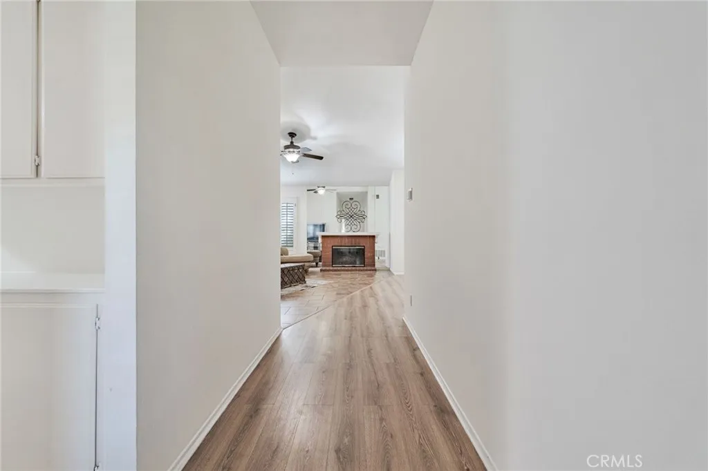 Say hello to this lovely home nestled within one of Santa Clarita's most sought-after gated communities. Boasting a single-story layout, this townhome offers the charm and comfort of a single-family home, complete with a convenient attached 2-car garage, a private driveway, and a delightful backyard adorned with flowers and a covered patio. The interior living area showcases new flooring, vaulted ceilings and a sunlit living room with a cozy fireplace, seamlessly flowing into the dining area and kitchen. The kitchen has newer appliances and ample storage space. Down the hall, you will find 3 generously sized bedrooms. The primary bedroom suite has vaulted ceilings and a walk-in closet. Throughout the home, plantation shutters add a touch of sophistication and privacy. Residents of this remarkable community can indulge in resort-like amenities, including gated access, onsite management, private security, tennis courts, Olympic-sized swimming pool, spa and sauna, Sport Court, scenic greenbelts, and a charming nine-hole par 3 golf course!