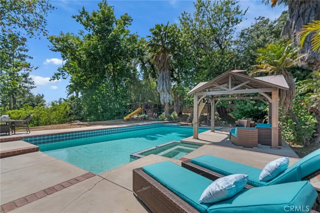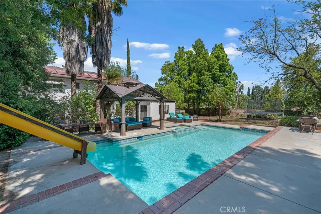 Welcome to your opportunity in Chatsworth. This spacious 5-bedroom, 3-bathroom colonial home offers over 3,400 square feet of living space on an expansive 18,000 square foot lot. Tucked away on a private cul-de-sac, the property is in solid structural condition, but it does present deferred maintenance and would benefit from updating. The first level features a generous living room with direct access to the backyard, a bright kitchen that opens to the family room with a wetbar, and both formal and informal dining areas, making it ideal for gatherings. A convenient downstairs bedroom and adjacent 3/4 bath provide flexibility for guests or a home office. Upstairs, the primary suite includes a walk-in closet and an ensuite bathroom, while the additional four bedrooms are spacious and filled with natural light. Several rooms offer sliding glass doors opening to private patios or balcony, while the converted garage currently serves as a bonus living area, enhancing the indoor-outdoor feel. Outside the large backyard is the highlight with mature landscaping, open areas for dining or playing a pool, and a playground space. The front yard adds curb appeal while the converted garage currently serves as a bonus living area. The kitchen, bathrooms, and bedrooms are original and ready for renovation. Flooring, finishes, and fixtures will benefit from modernization. While deferred maintenance exists, the layout, size, and lot provide an excellent canvas for customizing into a dream property. Located in a desirable neighborhood near top-rated schools, local shops, and Mason Park, this home combines space potential and location, an opportunity for buyers ready to invest in updates and create long-term value