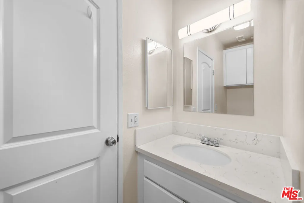 Charming Two-Level Condo in the Heart of Canoga Park. Welcome to this beautifully updated and well-maintained two-level condo offering comfort, style, and convenience in a desirable Canoga Park location. This inviting home features a smart and spacious floor plan with 2 large bedrooms and 1.5 bathrooms, perfect for first-time buyers, small families, or investors. Step into the light-filled living room with a cozy fireplace and a private balcony ideal for relaxing or entertaining. The main level also includes a convenient half bath, while both bedrooms and a full bathroom are privately located upstairs. Enjoy beautiful new luxury vinyl floors upstairs, laminate, and tile flooring throughout living and kitchen areas. An updated kitchen boasting quartz countertops, a deep stainless-steel sink, modern faucet, and newer appliances. For added convenience, a stackable washer and dryer is located inside the unit. Additional upgrades include a newer HVAC system and Nest thermostat providing energy-efficient comfort year-round. Tucked away at the back of the building for added peace and privacy, this unit also comes with two tandem parking spaces. The complex features a private swimming pool and is centrally located near shopping, restaurants, and public transportation. HOA Fee includes Hot and Cold water and trash/sewer. Don't miss this fantastic opportunity to own a move-in ready home in a prime location. Schedule your tour today. This one won't last!