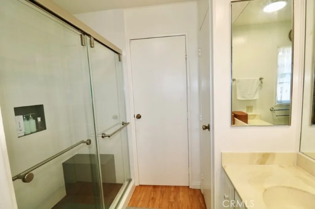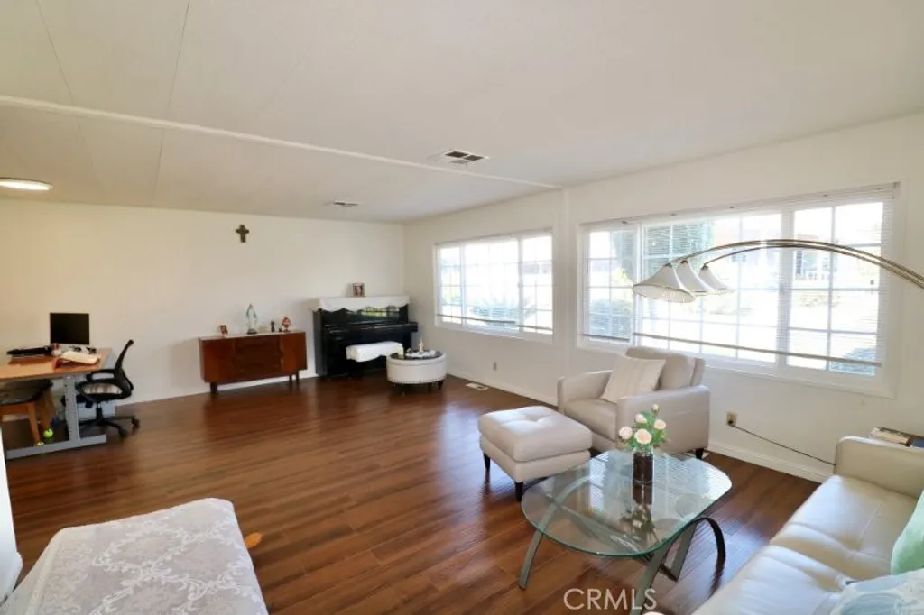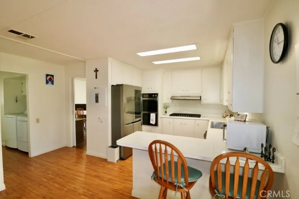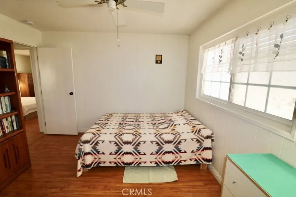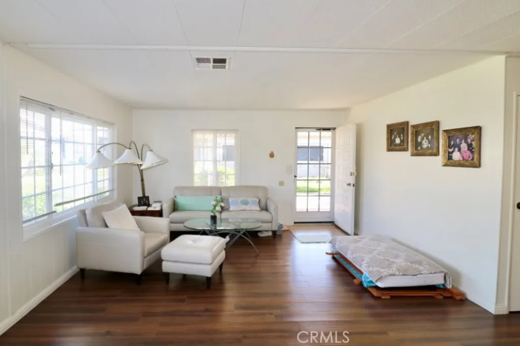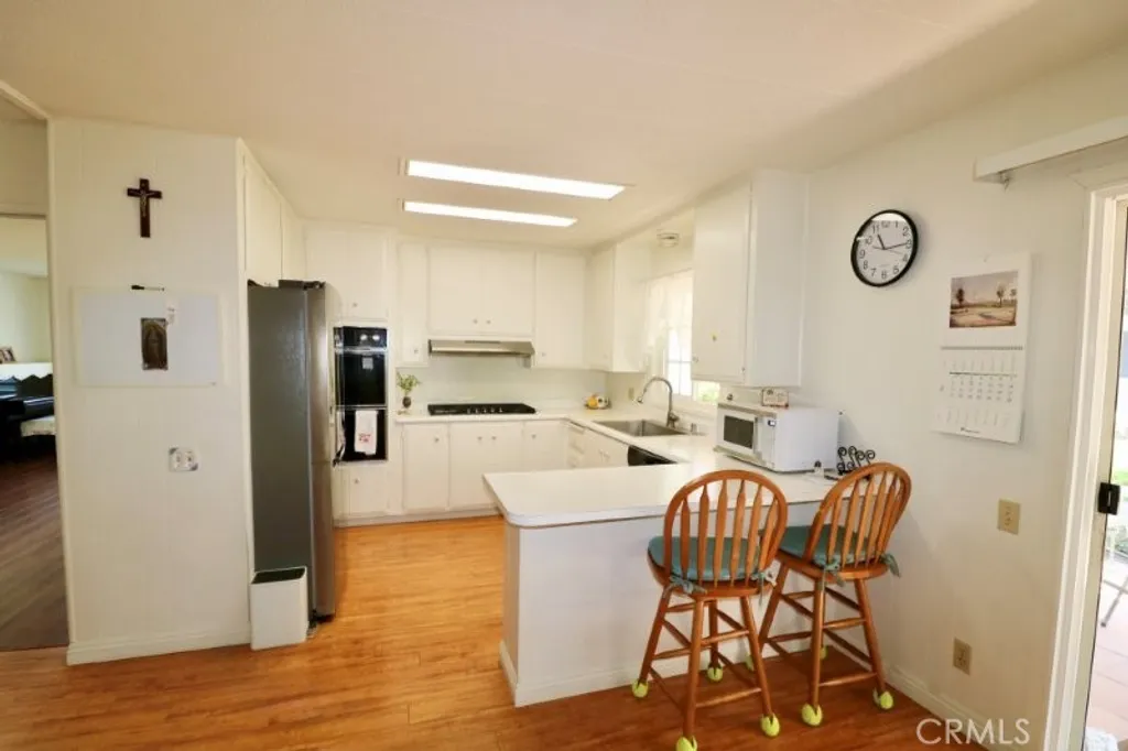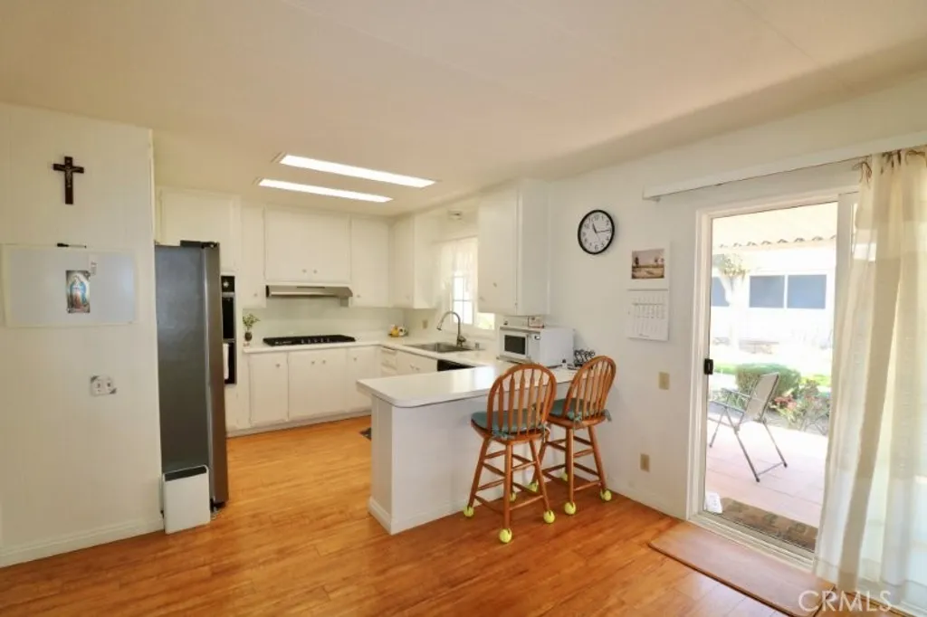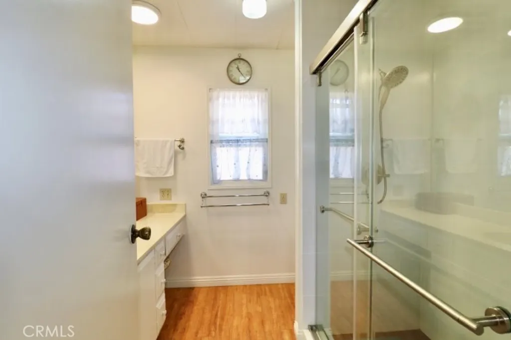Senior Living 55 + This spacious 2-bedroom, 2 bath home features a light antique white interior, with laminate flooring throughout. The spacious kitchen features white cabinetry providing plenty of storage, gas cooktop and breakfast bar opening into a den area, and generous laundry room. Master bedroom features a large walk in closet, with attached beautifully remodeled bath featuring a large walk in shower, built in vanity and linen closet. Guest bedroom has a walk-in closet and attached, newly remodeled bath. Extras include energy efficient dual paned windows, ceiling fans, large storage shed, side by side parking and attractive curb appeal and plenty of gardening area. The roof is new and foundation piers have been recently replaced. Stop by to see this gem before it's sold!