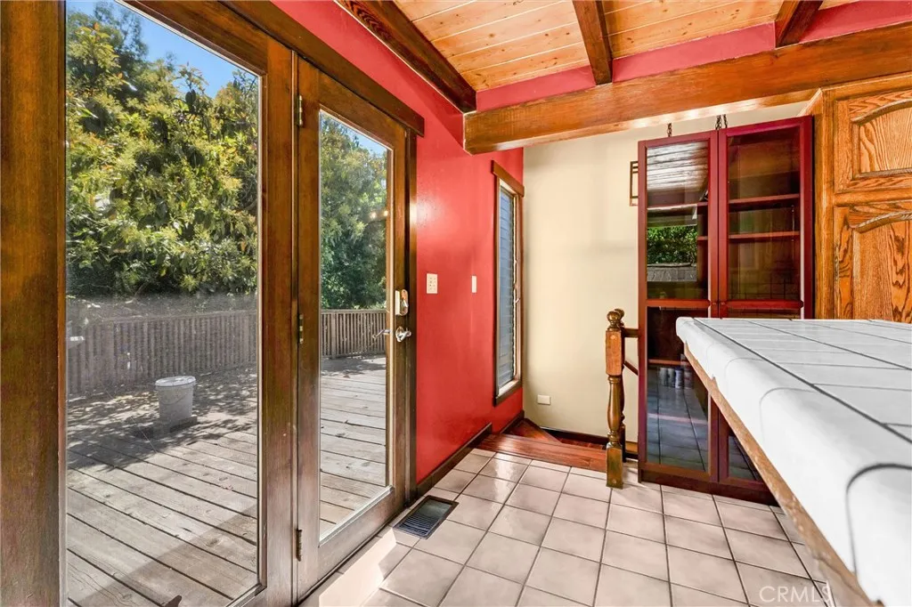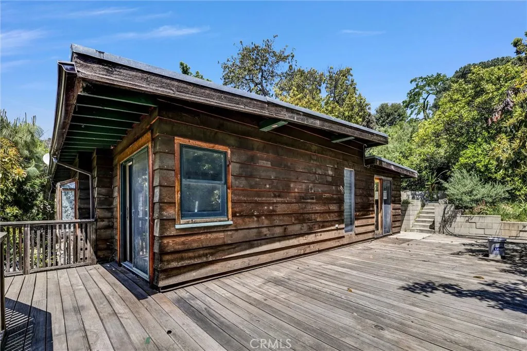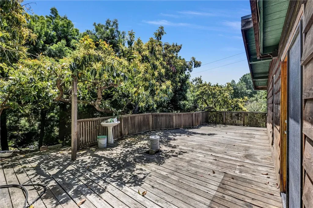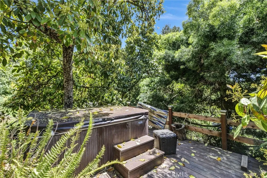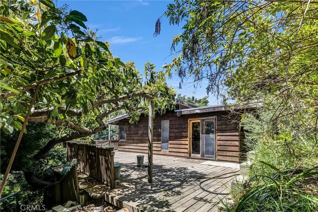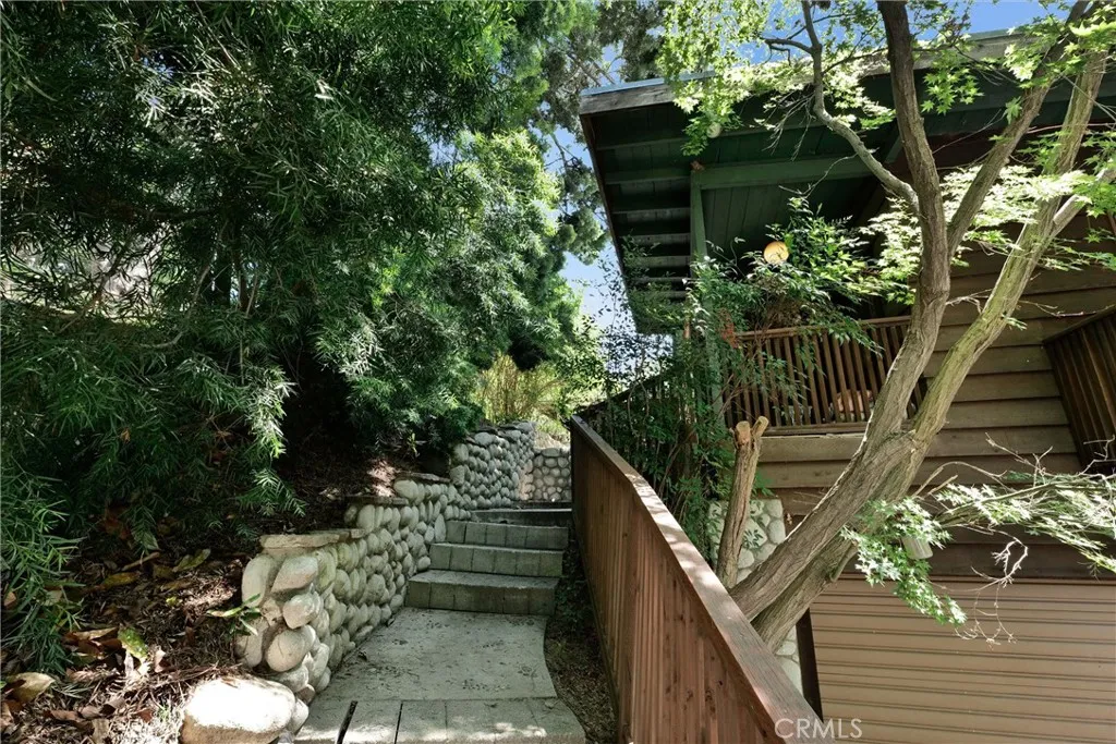 Rustic Charm Meets Modern Comfort - A Private Hillside Retreat in La Habra Heights. Tucked into the serene hills of La Habra Heights, this distinctive cabin-style home offers the atmosphere of a peaceful mountain retreat - just minutes from city conveniences. Surrounded by mature trees, vibrant wildlife, and natural beauty, the property combines rustic character with modern upgrades and versatile living spaces. Enter through grand double doors into a bright, open-concept living area featuring exposed wood-beam ceilings, a dramatic stone fireplace, and expansive windows that capture breathtaking hillside views. Sunlight fills the space, creating a warm and welcoming setting for both everyday living and entertaining. The home features two true primary bedroom suites, each with its own remodeled bathroom - perfect for multi-generational living, extended guests, or private office or studio space. On the lower level, a spacious suite with a full spa-inspired bathroom (including a steam shower) and private entrance offers the feel of a self-contained unit, ideal for visitors, creative professionals, or a tranquil work-from-home setup. The main-level bathroom is equally luxurious, complete with a jacuzzi tub and walk-in shower for ultimate relaxation. Every bathroom in the home has been thoughtfully updated, blending rustic ambiance with contemporary finishes and functionality. Significant recent upgrades include new double-pane windows, central HVAC, a tankless water heater, a water softener system, and hardwood flooring throughout - ensuring both comfort and energy efficiency. Outdoor living is a standout feature, with an expansive wraparound deck ideal for al fresco dining, morning coffee, or simply enjoying the natural surroundings. A separate, secluded deck with a jacuzzi offers a perfect space for evening stargazing. The fully fenced backyard includes two gated entries, mature fruit trees, scenic walking paths, and a secure area for pets. A detached 12x12 shed, currently used as a playroom and sleep space, provides added functional flexibility. Whether you're a wellness enthusiast, creative professional, remote worker, or someone who values privacy and connection to nature, this home delivers a rare opportunity to enjoy mountain-style living with all the comforts of modern life.Welcome home!