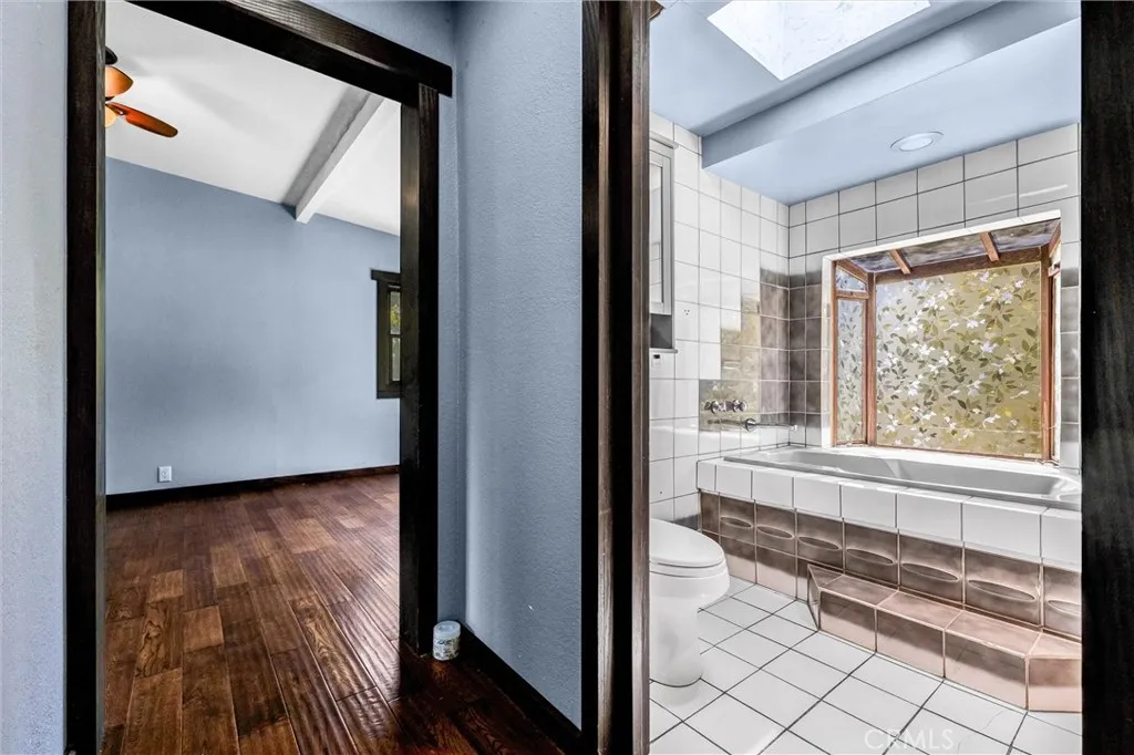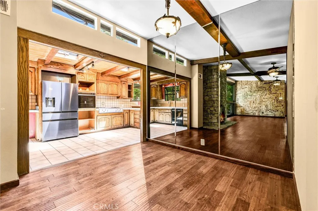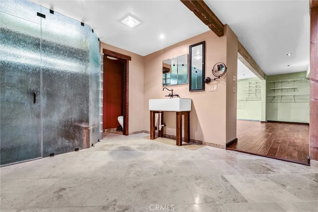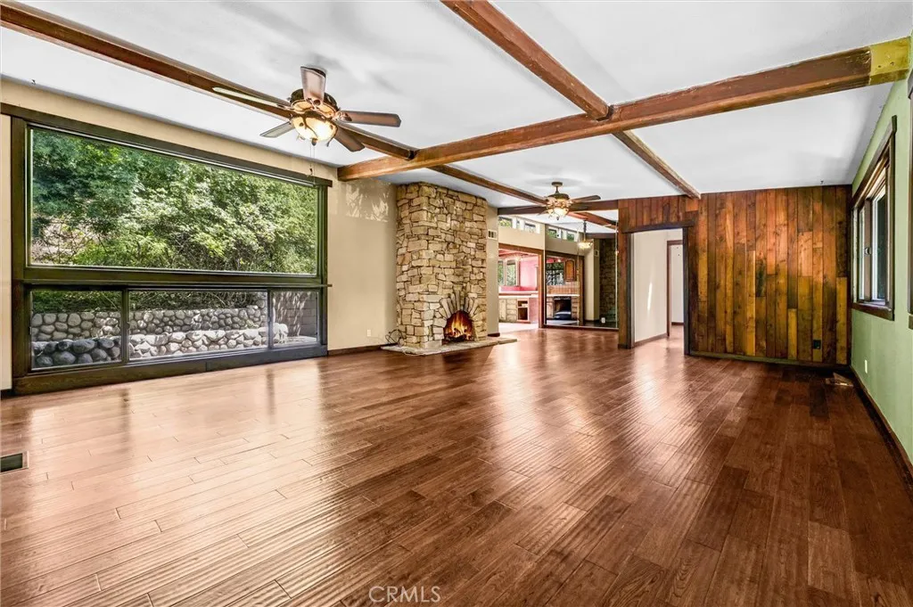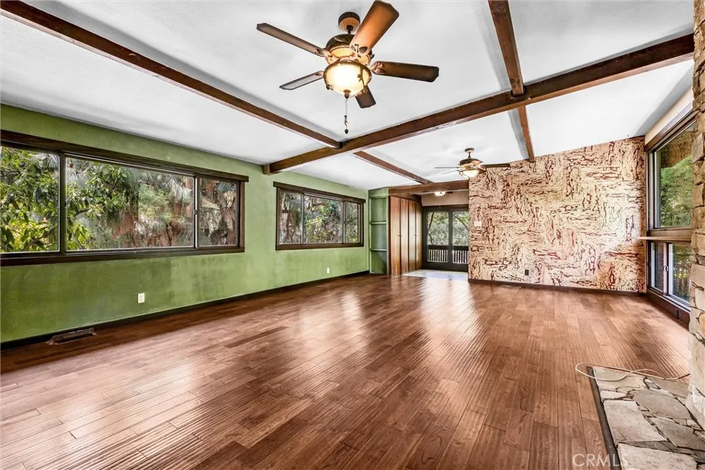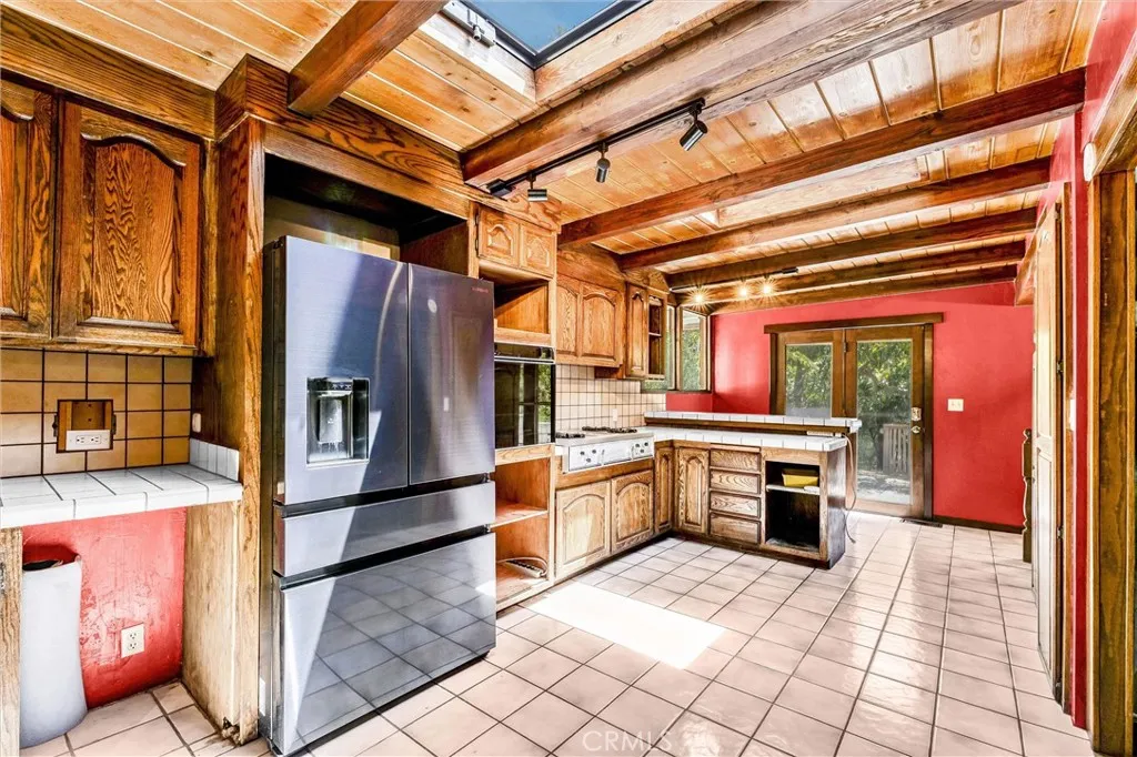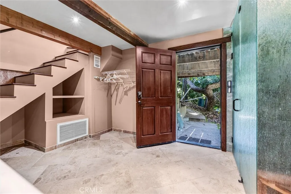 Rustic Charm Meets Modern Comfort - A Private Hillside Retreat in La Habra Heights. Tucked into the serene hills of La Habra Heights, this distinctive cabin-style home offers the atmosphere of a peaceful mountain retreat - just minutes from city conveniences. Surrounded by mature trees, vibrant wildlife, and natural beauty, the property combines rustic character with modern upgrades and versatile living spaces. Enter through grand double doors into a bright, open-concept living area featuring exposed wood-beam ceilings, a dramatic stone fireplace, and expansive windows that capture breathtaking hillside views. Sunlight fills the space, creating a warm and welcoming setting for both everyday living and entertaining. The home features two true primary bedroom suites, each with its own remodeled bathroom - perfect for multi-generational living, extended guests, or private office or studio space. On the lower level, a spacious suite with a full spa-inspired bathroom (including a steam shower) and private entrance offers the feel of a self-contained unit, ideal for visitors, creative professionals, or a tranquil work-from-home setup. The main-level bathroom is equally luxurious, complete with a jacuzzi tub and walk-in shower for ultimate relaxation. Every bathroom in the home has been thoughtfully updated, blending rustic ambiance with contemporary finishes and functionality. Significant recent upgrades include new double-pane windows, central HVAC, a tankless water heater, a water softener system, and hardwood flooring throughout - ensuring both comfort and energy efficiency. Outdoor living is a standout feature, with an expansive wraparound deck ideal for al fresco dining, morning coffee, or simply enjoying the natural surroundings. A separate, secluded deck with a jacuzzi offers a perfect space for evening stargazing. The fully fenced backyard includes two gated entries, mature fruit trees, scenic walking paths, and a secure area for pets. A detached 12x12 shed, currently used as a playroom and sleep space, provides added functional flexibility. Whether you're a wellness enthusiast, creative professional, remote worker, or someone who values privacy and connection to nature, this home delivers a rare opportunity to enjoy mountain-style living with all the comforts of modern life.Welcome home!
