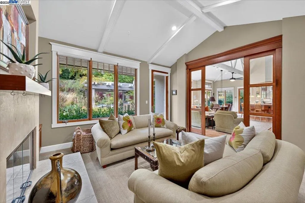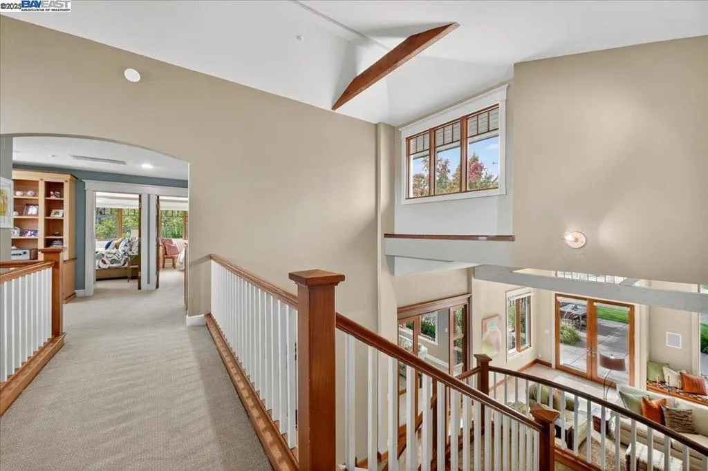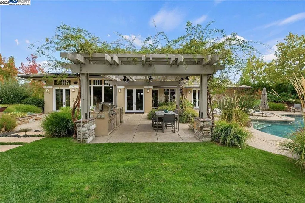 Discover a rare modern retreat. This artfully designed home blends clean lines, warm materials, and Wright-inspired architecture in Ruby Hill, known for its traditional styles. On the quiet west side, strong horizontal rooflines, wide eaves, and natural finishes create a grounded, contemporary presence. Inside, stunning windows showcase serene views from nearly every room, enhancing the connection to the outdoors. The main level offers effortless living with a peaceful primary suite and a private living room with cathedral ceilings and mahogany-and-glass pocket doors. Upstairs, a versatile bonus room - currently an artist's studio - opens to a view balcony, perfect for creativity, hobbies, or a second office. Outdoor living shines with sculptural landscaping, fountains, artistic installations, pool, steel firepit, and overhead heaters at the flip of a switch. Owned solar, whole-house generator, Sonos system, and other upgrades provide modern comfort and peace of mind. A truly uncommon opportunity: modern design, privacy, and livable luxury.