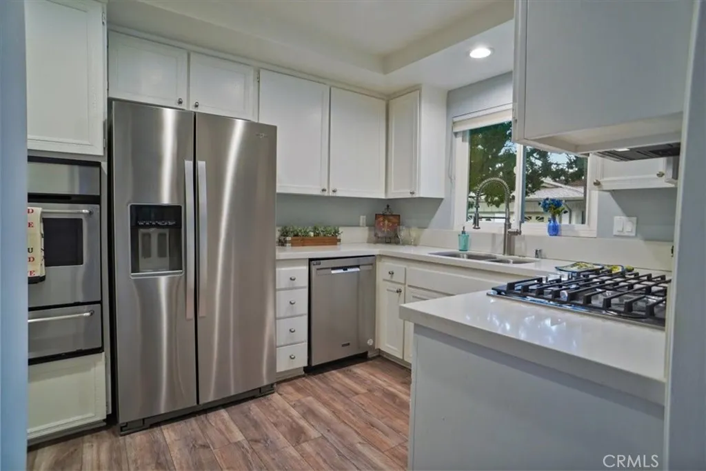 Perfect SENIOR condo on corner lot with greenbelt behind. Not a thing to do in this largest model home in the Association 4 group. It is light and bright and offers loads of elbow room. The manufactured wood flooring throughout is wonderful along with a nicely updated kitchen. The open patio is perfect for a morning cup of coffee or a relaxing glass of wine to wind down after a busy day. Friendly Valley offers all the usual country club amenities you would expect including two golf courses. There are clubs of all kinds and Bingo on Wednesday's. A lovely little community church completes the picture! Come enjoy life in this terrific retirement community.