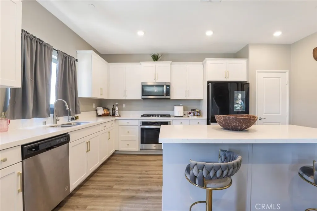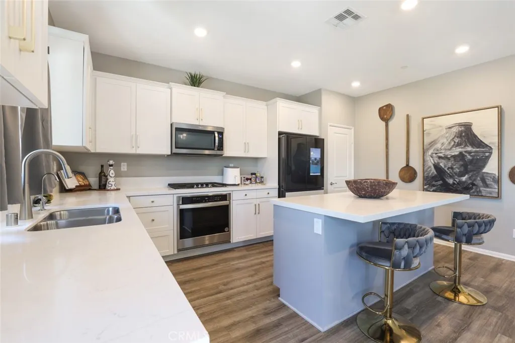 Welcome to this stunning 4-bedroom, 3.5 bathroom single-family home, built in 2022 and located in a quiet cul-de-sac with no HOA. A standout feature is the potential income-producing ADU with its own private front entrance, kitchenette and bathroom - ideal as a rental unit, mother-in-law suite, or multigenerational living space. This modern residence offers a spacious open floor plan with newer luxury vinyl plank flooring, a chef's dream kitchen featuring a large center island with breakfast bar, white quartz countertops, upgraded appliances, designer lighting, pantry and abundant cabinet storage. The open concept family room is perfect for relaxing or entertaining, while the upstairs loft provides a flexible space for a home office or kid's playroom. The private master suite includes a generous walk-in shower and spacious walk-in closet. Enjoy the beautifully landscaped backyard with grass, no neighbors behind, and an 18ft above-ground spa, along with low-maintenance front landscaping. The property also includes a spacious garage with home gym potential, alkaline water filtration system, paid-off solar panels, vinyl and brick fencing, and a full security camera system. Best of all, this home is in a newly completed neighborhood with access to finished community amenities including a playground, basketball court, and pavilion, just a short walk away. This home offers a unique advantage with no neighboring property directly behind, providing enhanced privacy and peaceful mountain top view. Move-in ready and offering modern comfort, energy efficiency, and privacy - this home has it all!