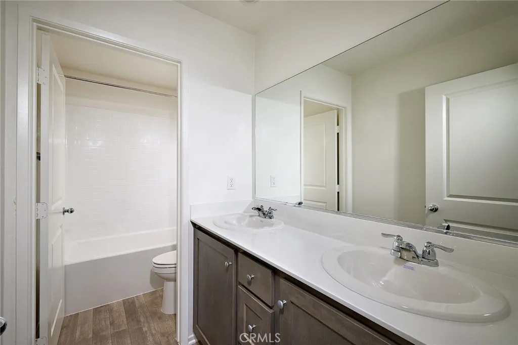 NEW CONSTRUCTION and QUICK MOVE-IN in Winchester - SOLAR INCLUDED!! - This two-story, 1,775 square foot home with a California Spanish-Hacienda fa ade has 4 bedrooms and 2.5 bathrooms. The home includes WASHER & DRYER, REFRIGERATOR, WINDOW TREATMENTS and BACK YARD LANDSCAPING!! The Island kitchen with breakfast bar has New Valle Nevado granite counters, built-in stainless-steel appliances and a walk-in pantry. The interior comes complete with Alto (Gray) stained maple shaker-style cabinetry, and lots of included recessed lighting throughout. Flooring is vinyl downstairs, and plush carpet in bedrooms, Loft, stairwell, and closets! The downstairs includes a powder bath, Great Room and Dining area, and upstairs is the primary bedroom with ensuite bathroom and a walk-in closet, 3 additional bedrooms and full bathroom, a LOFT and a laundry room. There is also a direct access two-car garage PRE-PLUMBED for an electric car! This truly modern home has all the Smart Home features you would expect and, is LANDSCAPED AND IRRIGATED in the front and back yards. This is a QUICK move-in READY NOW and we can't wait to Welcome you Home!! **HUGE SAVINGS!! Solar is "No additional cost to your buyer" - it is INCLUDED IN THE PRICE OF THE HOME**