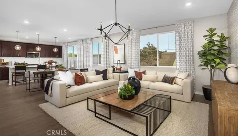 What's Special: First Floor Primary | Large Kitchen Island | Loft. New Construction - Ready Now! Built by America's Most Trusted Homebuilder. Welcome to the Plan 3 at 29147 Victoria Beach Boulevard in Courts! Discover stunning views and community living near Diamond Valley in Winchester, CA. Enjoy a sparkling pool, walking trails, and Conestoga Park just across the street - featuring soccer fields, courts for basketball and pickleball, playgrounds, and picnic areas. This beautiful floorplan welcomes you with a private front porch and open-concept layout connecting the great room, dining, and kitchen. A kitchen nook and walk-in pantry provide extra storage. Downstairs includes a full bath and bedroom, while upstairs offers a spacious primary suite, two additional bedrooms, a loft, laundry, and full bath. Additional Highlights Include: two-car garage, shaker cabinets, granite countertops, tankless water heater, and whole-home air filtration. Photos are for representative purposes only. MLS#IG25141995