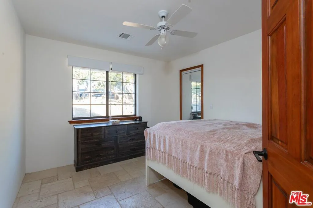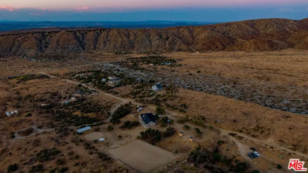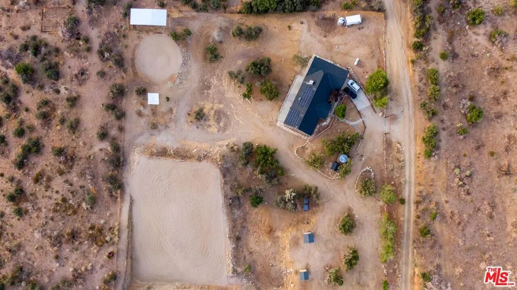 Nestled amidst the captivating High Desert Hills, just adjacent to the Angeles National Forest and a renowned national park, lies this approximately 2.5-acre equestrian property at 29243 Piani Road in Pearblossom. This modern ranch home offers over 2,000 square feet of living space, designed to capture breathtaking sunsets from the elevated position of the back of the house that faces west, showcasing a serene retreat in a stunning setting. The home encompasses three bedrooms, a versatile office/flex room, and two bathrooms, each with double sinks and bathtubs. Designed for comfort and practicality, it features vaulted ceilings and an array of custom finishes, including brick and wood floors in the kitchen and dining room, complemented by Turkish Travertine in the Venetian Pattern in other living areas. Large windows fill the space with natural light and showcase the picturesque views. A separate outside entrance to the primary bedroom and the dining room, as well as a utility room entrance, underscores the thoughtful design of this home. The 2-car attached garage provides ample storage space, with additional storage available in the attic and a large utility room pantry. Say goodbye to high electricity and water bills, as this home is powered by a high-quality paid-off solar system with 26 panels installed by Solar Optimum in 2022, and water sourced from its own well and propane for gas. In addition to central heating, this home is equipped with a whole-house evaporative cooler, a highly energy-efficient alternative to traditional air conditioning. The dining room also features a wood-burning stove for cozy winter evenings. The private, fully fenced lot, with its 330-foot frontage on Piani Road, is complemented by a wooden ranch gate, creating an impressive entrance to this serene retreat. With RV hookups and ample outdoor storage, this property accommodates a variety of needs, whether for ranch living or leisure. Equestrian facilities abound, with a 120' x 96' arena, a 50' round-pen, and a spacious hay barn capable of accommodating a full semi-truck load. The property supports multiple horse stalls with water and electricity, ensuring your equine companions enjoy optimal care. There is also a Nelson Automatic waterer in the pasture area. Beyond its equestrian amenities, the property is steeped in nature, providing direct access to miles of trails and seasonal creeks. It is conveniently located approximately five miles from local amenities, including the USPS, LA County Fire Department, and Pearblossom Park. Embrace the opportunity to own this equestrian property, where natural beauty, modern comforts, and horse-friendly facilities converge. Whether you are an avid equestrian or seeking a tranquil retreat, this home offers a unique chance to live in a truly stunning setting.