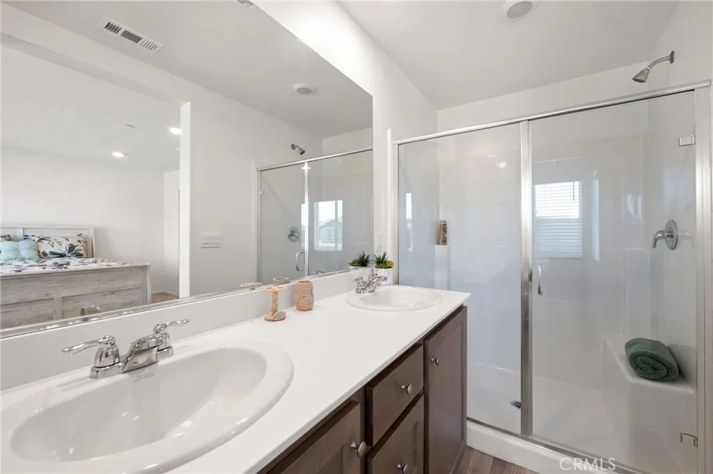 Rare Opportunity to Save BIG on Your Monthly Payment! Take advantage of a 1% interest rate reduction on ANY loan program - FHA, VA, or Conventional - with ZERO cost to you! Lower monthly payments, and no extra fees. Immaculate Like-New Home with Downstairs Bedroom and Paid Solar! Step into this barely-lived-in beauty, occupied for only a few short weeks, offering a rare opportunity to own a truly turnkey, nearly new home with PAID OFF SOLAR for immediate energy savings. Located in one of Winchester's most desirable neighborhoods, this home offers the perfect combination of modern design, thoughtful functionality, and everyday comfort. With 5 generously sized bedrooms, including a full downstairs suite with its own bathroom, the layout is ideal for multi-generational living, guests, or a home office setup. The main level features luxury vinyl plank flooring, an open-concept living area filled with natural light, and stylish finishes throughout. The home is also pre-plumbed for an electric vehicle, making it ready for the future. Enjoy a professionally landscaped backyard that's perfect for entertaining or relaxing, plus the convenience of being just a short walk to a community park and only minutes from 215 freeway access. Energy-efficient, move-in ready, and ideally located, this home checks all the boxes.