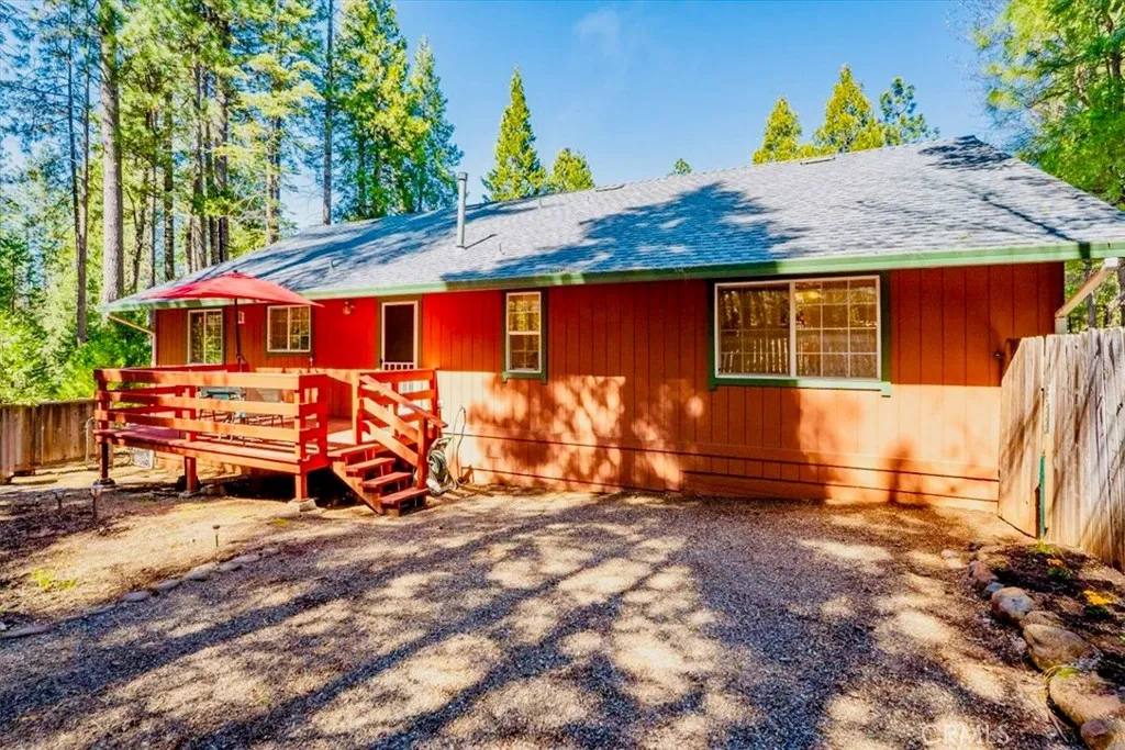 PRIVACY! Set back from the street with no visible properties behind you perched above the neighbors, this property offers a quiet lifestyle surrounded by forest views. Enjoy the morning sunlight on your back deck and the cool mountain air that keeps the home comfortable day and night. The paved driveway makes winter living easier as snow melts more quickly. The property is designed for low maintenance with fire mitigation in place as part of a Fire Wise Community. The roof was replaced in 2023. Inside, you'll find a warm and functional layout featuring a wood stove, kerosene, and propane heating options, plus ceiling fans in every room. The spacious primary suite sits at the back of the home with forest views, a walk-in closet, and a generous bathroom. A double garage with extra storage adds convenience. Located just 30 minutes from Redding and about 20 miles from Lassen Volcanic National Park, this home offers the best of both worlds - seclusion and accessibility. Whether you're looking for a full-time residence or a vacation getaway, Shingletown delivers. Come live and play in one location. And don't forget there is a place to park your RV next to the garage with ability to plug in (depending on size)!