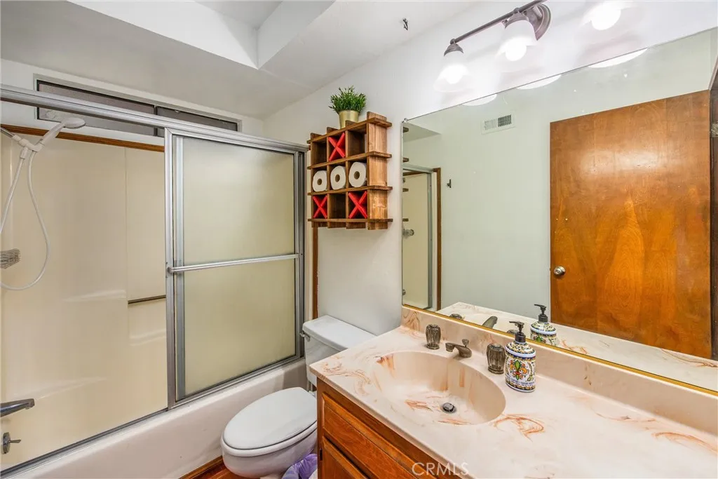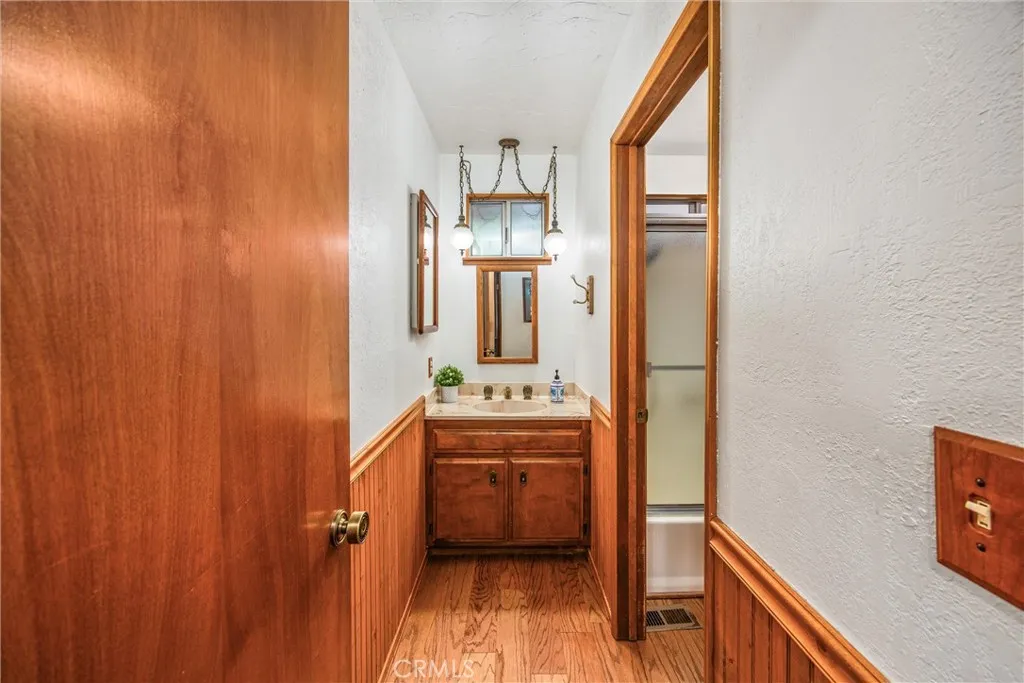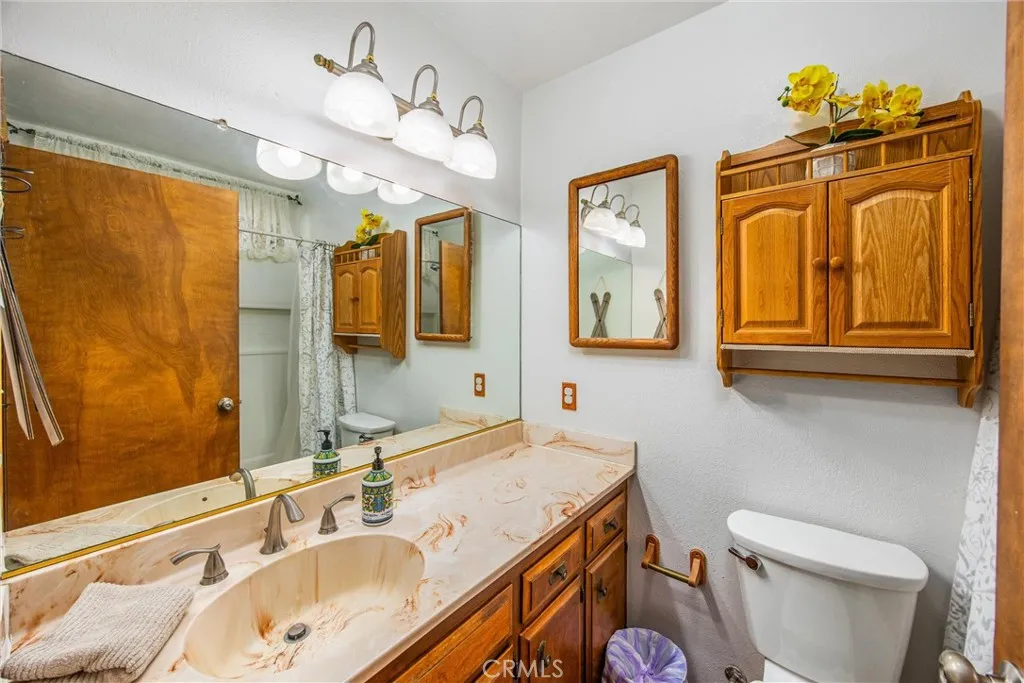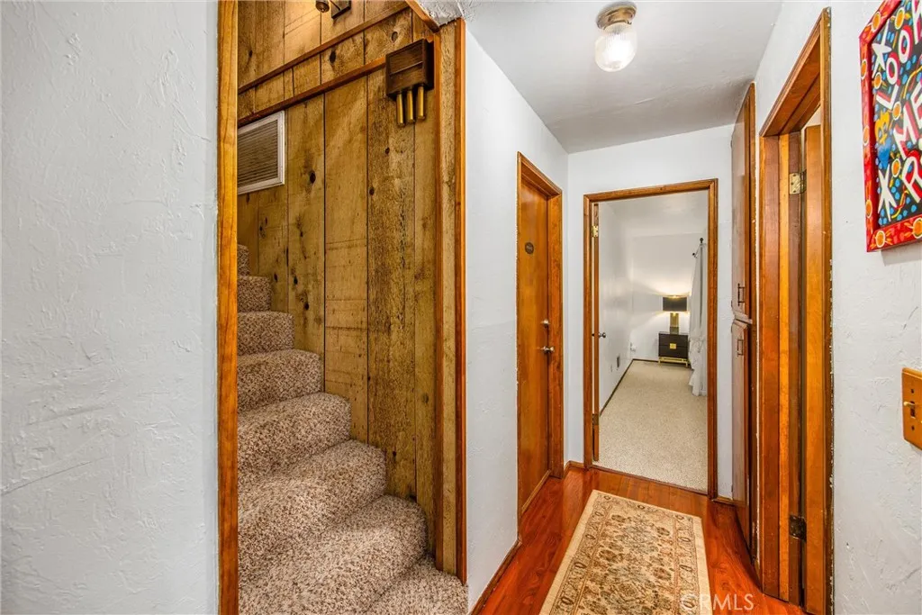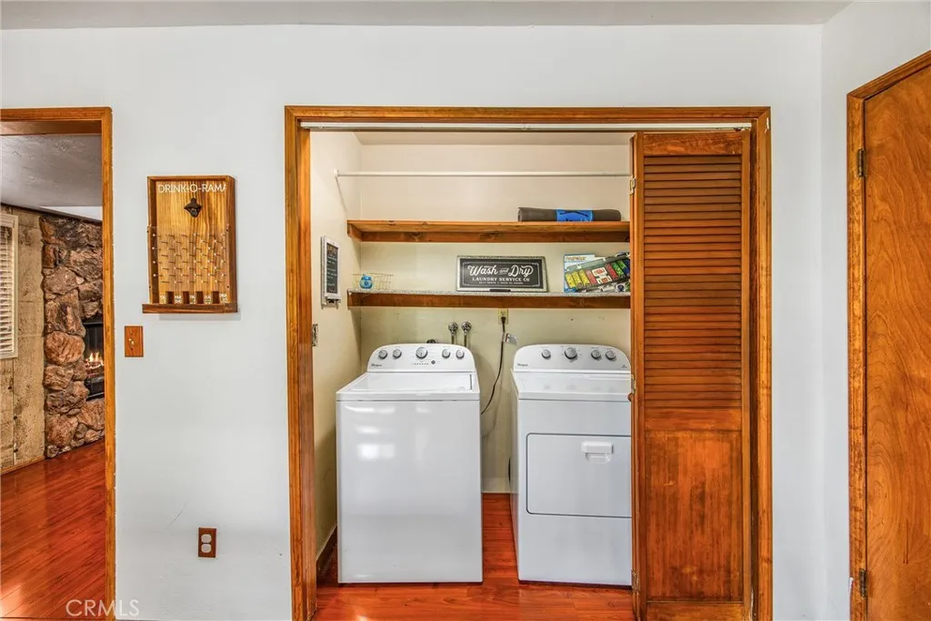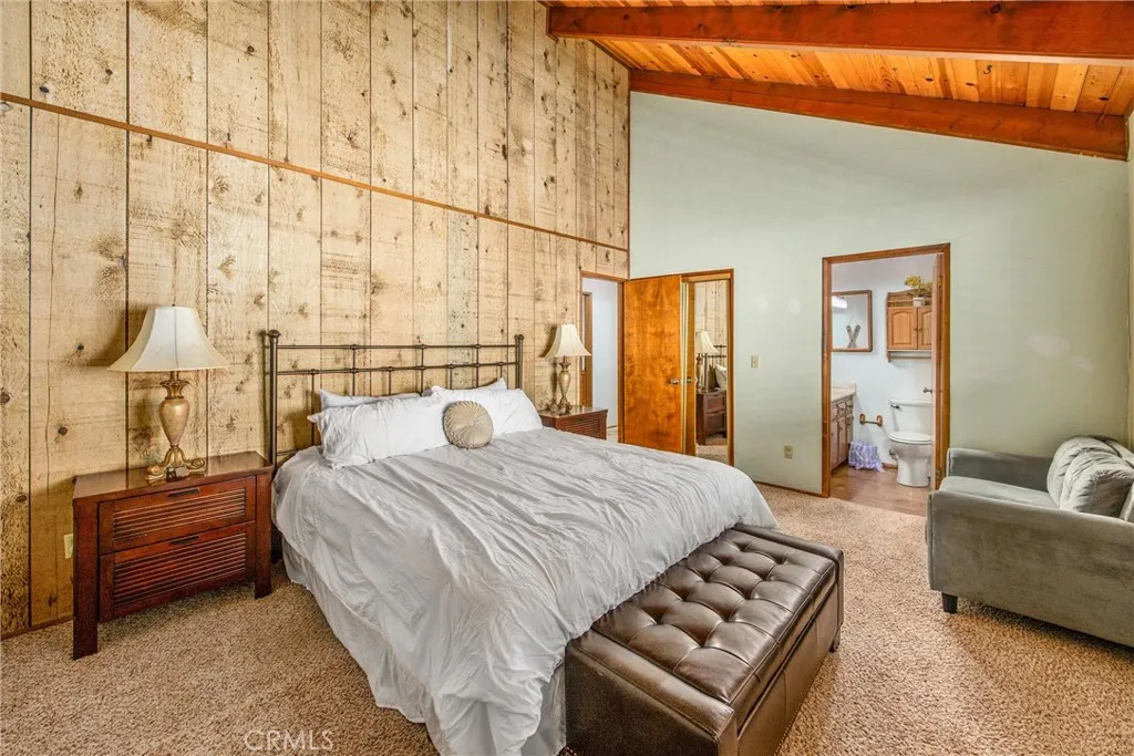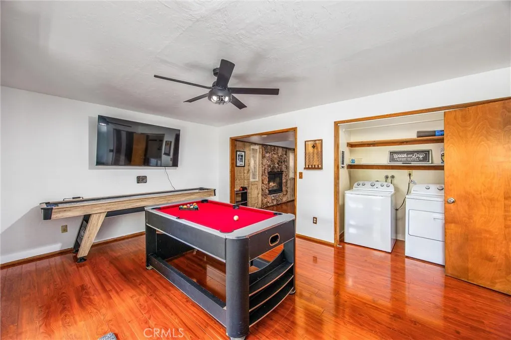 Welcome to this charming 4-bedroom, 3-bathroom mountain home tucked among the pines of Running Springs. The chalet-style exterior, front deck, and wide concrete driveway create inviting curb appeal while providing easy access and ample parking. Surrounded by mature trees and terraced hillside landscaping, the setting feels private and peaceful. With a brand new roof, house generator, and beautifully furnished interior, this home is truly move-in ready, so you can arrive and start enjoying mountain living right away. Inside, you will find vaulted wood-beamed ceilings, an open floor plan, and a warm stone fireplace, creating a welcoming, cozy atmosphere in the main living area. The spacious great room flows easily into the dining area and kitchen, making it ideal for family gatherings or entertaining guests. The kitchen feels warm and inviting with rich wood cabinetry, vaulted wood ceilings, and a long breakfast bar with seating that keeps everyone connected. Stainless steel appliances and generous counter space make meal prep simple, while the sliding glass door opens directly to the deck so you can enjoy outdoor dining and fresh mountain air. The lower level offers a fun and flexible space with two additional bedrooms, one of which is currently used as a game room. There is plenty of room for a sofa and game tables, complemented by wood-style floors, a ceiling fan, and a sliding glass door that opens to the trees outside. Just off this area is a cozy bar with seating, perfect for serving snacks and drinks. A second stone fireplace anchors the adjoining bonus room and creates a warm spot to gather for movie nights, arcade games, or relaxing after a day on the mountain. Whether you are looking for a full-time residence, a weekend getaway, or a furnished second home with investment potential, this Running Springs retreat offers comfort, character, and convenience in a peaceful forest setting.