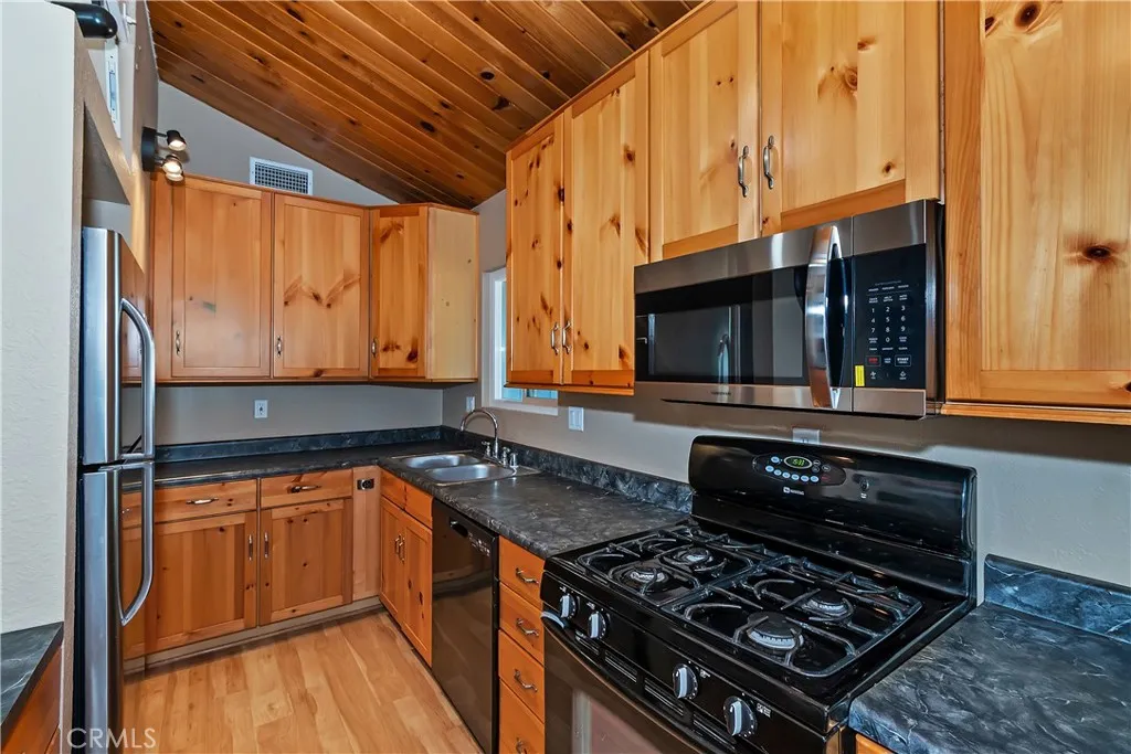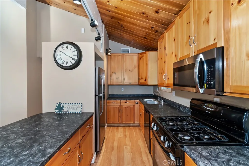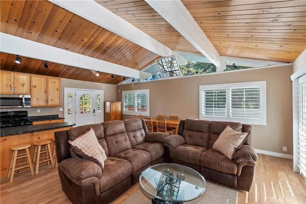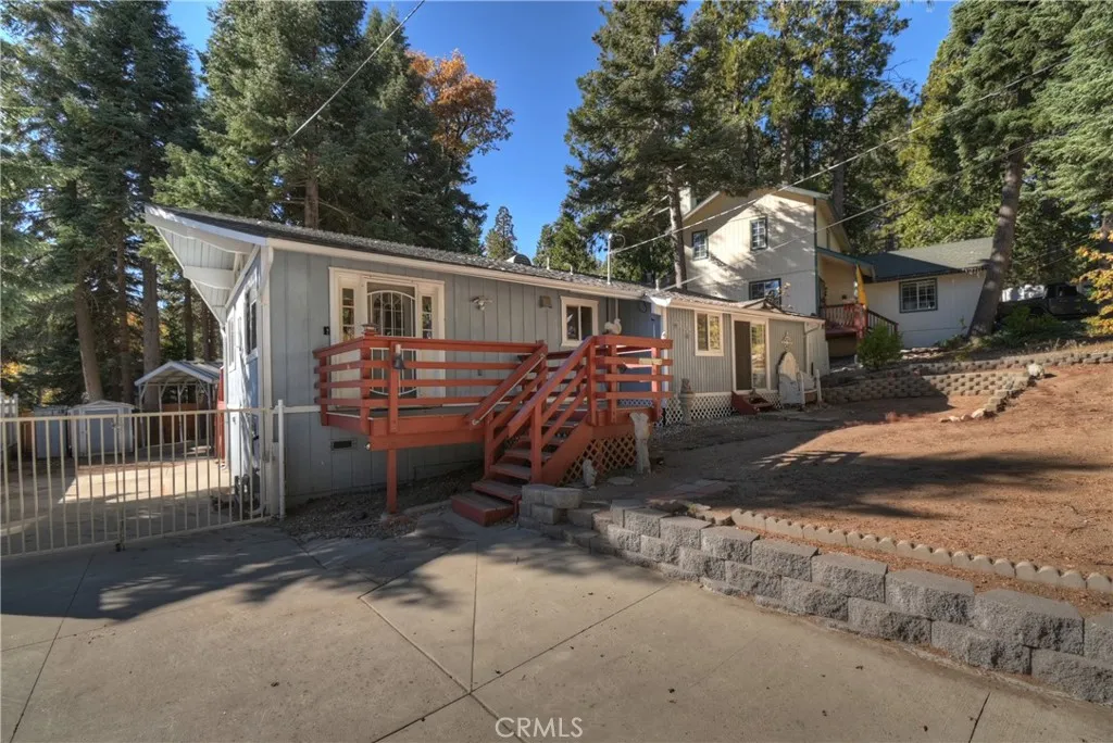 Welcome to your mountain retreat! Nestled among the pines in beautiful Running Springs, this charming single-level home combines modern updates with cozy mountain living. Featuring 3 bedrooms and 2 full bathrooms across approximately 1,156 square feet, this residence offers comfort, convenience, and style in every detail. Step inside to an open, light-filled living area with fresh paint, new flooring, and a warm wood-burning fireplace perfect for snowy evenings. The remodeled kitchen and bathrooms blend contemporary finishes with rustic charm, creating a perfect mix of function and mountain aesthetic. The spacious lot - nearly 8,300 sq ft - provides plenty of room to enjoy the outdoors, complete with ample parking for multiple vehicles, RVs, or boats under a large aluminum carport. Extra storage sheds and reinforced footings provide durability and practicality for full-time living or weekend getaways. Modern comforts include forced-air heating and air conditioning, ensuring year-round comfort. Relax on the deck surrounded by whispering pines, or take a short drive to nearby Lake Arrowhead, Snow Valley Mountain Resort, and the village shops and caf s of Running Springs. Whether you're looking for a full-time residence, vacation home, or investment property, 31435 Oakleaf Drive offers the perfect blend of mountain serenity and modern convenience.
