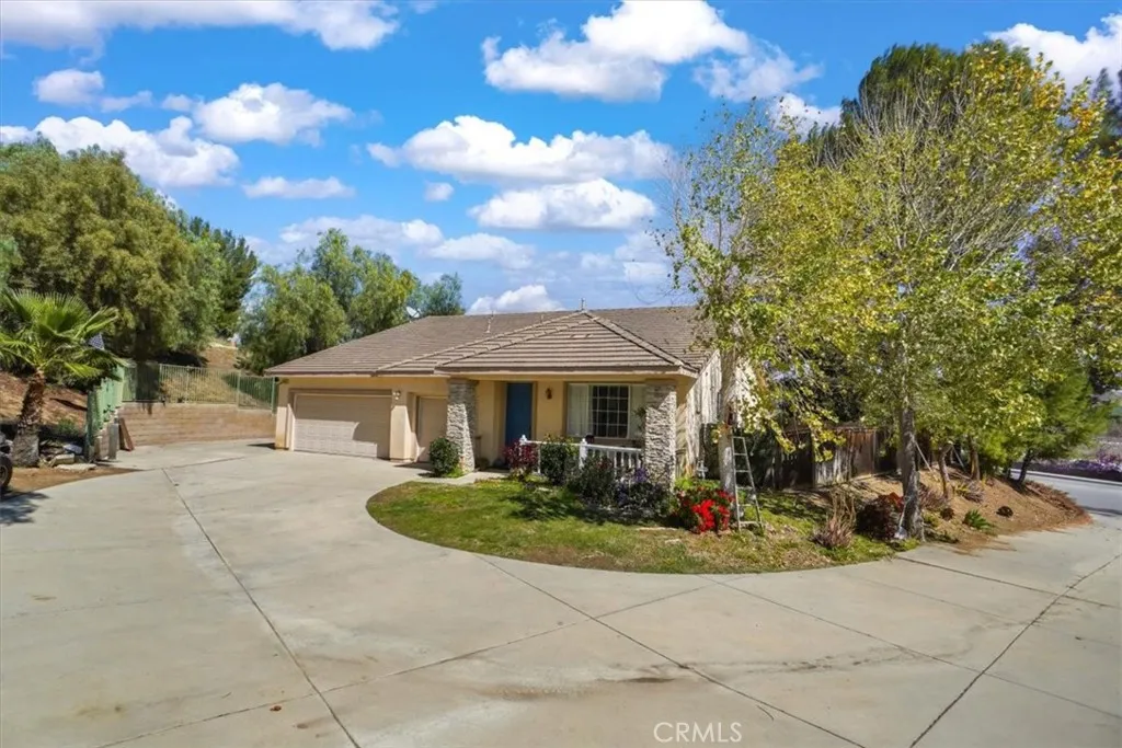 Stunning Private Single-Story Home - No HOA or Mello Roos! This exceptional single-story home offers privacy, ample parking, and breathtaking natural surroundings. Situated on a sprawling 60,000 sq. ft. lot, this property boasts 100 feet of RV parking and a driveway accommodating over 10 vehicles perfect for car enthusiasts or those with recreational toys. Relax on the charming front porch while taking in the serene views of the wooded hillside, which is part of the property and features a 4-tier sprinkler system for effortless maintenance and protection. Inside, you'll find a spacious open concept living and dining area, leading into a gorgeous great room that combines a modern kitchen, a cozy dining nook, and a welcoming living room with a fireplace. The chef s kitchen features stainless steel appliances, a center island with both storage and breakfast bar, pantry and ample additional cabinetry. Designed for both comfort and entertaining, the home is finished with low-maintenance wood-look tile flooring, seamlessly connecting the indoor spaces with the beautifully landscaped side and backyard. Enjoy raised garden beds, a composting area, and sweeping views of the picturesque hills beyond. The primary suite is a private retreat, offering a spacious sitting area, a spa-like remodeled bathroom with dual vanities, a separate tub and shower, a built-in dressing vanity, and a generous walk-in closet. Two additional bedrooms, a full guest bath, a half bath, and a separate laundry room provide convenience and functionality. For added storage and parking, the property includes an attached three-car garage, a large, detached Tuff Shed. With no HOA or Mello Roos, this home provides the freedom to enjoy your space without restrictions. Minutes from 5 freeway, close to award winning schools, Castaic Lake and 10 minutes from Town Center.