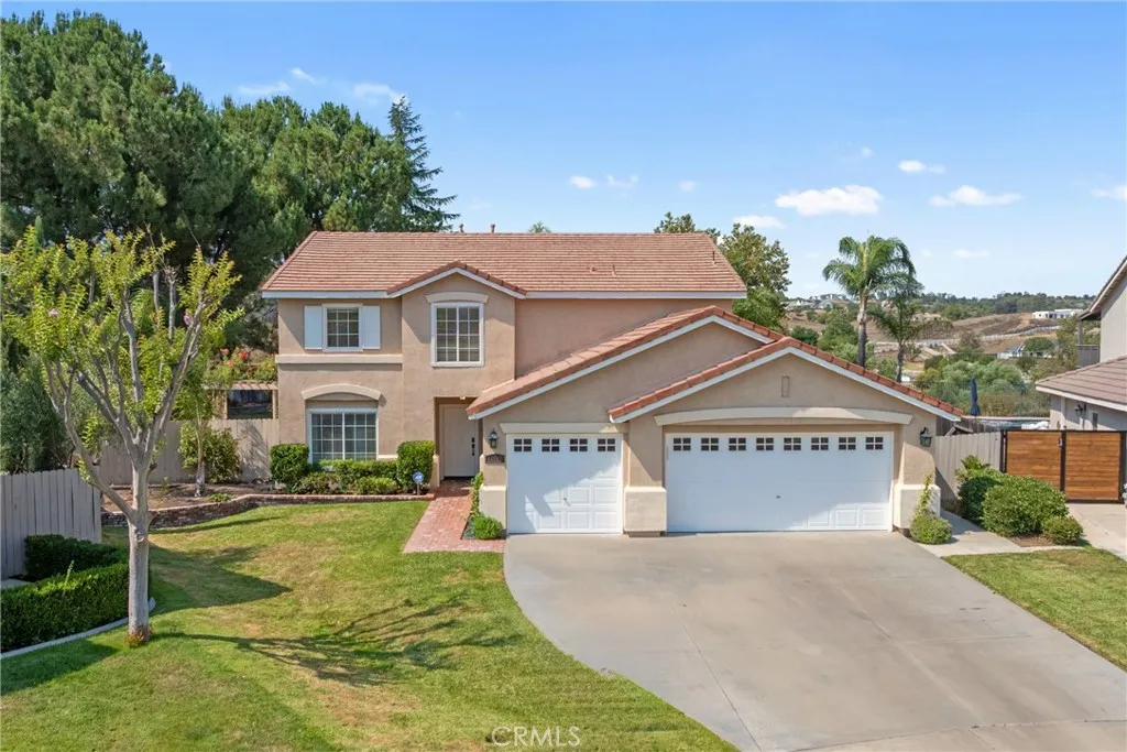 Your Temecula home is finally here! If you are looking for a spacious and captivating two-story cul-de-sac property with heaps of curb appeal, look no further as this home sits on a spacious lot with its own in-ground swimming pool, with no rear neighbor for added privacy! As you step in, you will immediately notice the thoughtful floor plan connecting the large living room, the formal dining room, and the family room where you can sit back and relax by the fireplace. Just off the family room, you will see the kitchen with plenty of cabinets, a center island with breakfast counter bar, and a built-in desk/area. It is also equipped with the necessary appliances and pantry/storage area that leads directly into the laundry room and out to the attached 3-car garage with PLENTY of space for your tools, handiwork projects, or an indoor table tennis - talk about endless possibilities! There are four bedrooms, including the master with ensuite, plus a guest bathroom upstairs. At the back is an entertainer's dream landscaped backyard with stairs that lead up to an upstairs balcony (also connects to the upstairs bonus room) where you can savor the magnificent views of surrounding hills, city lights, and mountains. Below, you can chill under the covered patio with fan while looking at the fruit trees, or enjoy your favorite drinks by the built-in island with sink (with more storage underneath). Don't forget the huge paved area at the side and rear where you can also place your grill for barbecue parties or simply put your favorite potted plants. With low HOA, low taxes, and close proximity to renowned Temecula schools, Temecula wineries, freeway, restaurants and shops, this home definitely is a jackpot!