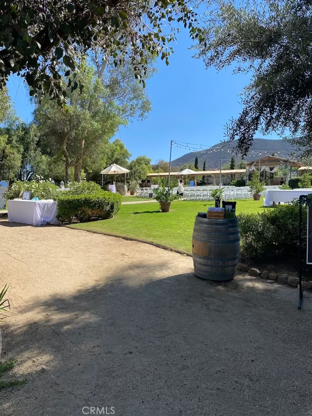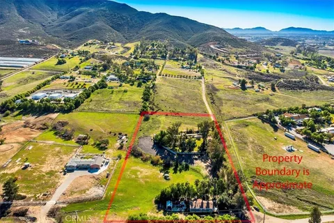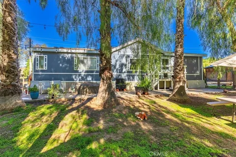 Beautiful treelined 4.44 useable acres in Winchester with endless potential. Wedding or event venue neatly manicured and private with all the trimmings to include lights, lawn, fire pit, bar, trees and covered areas! Plenty of room for parking, additional home or other structures. This is a must see! Peaceful and unique with mountain views. Very well maintained 3 bedroom, 2 bathroom manufactured home with a fenced yard for the kids or pets as well as a concrete slab next to the home for a sport court or potential garages. There is also a very high producing well eliminating a city water bill! So many extras! Conveniently located yet removed from city bustle, this remarkable property blends timeless beauty with practical functionality. Whether it's your family sanctuary or business venture dream come true. Close to Temecula Wineries and located in the award winning Temecula School District.