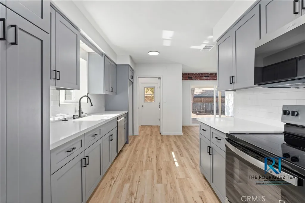 Step into 409 Brynhurst Way in the South Oleander Neighborhood. Fully remodeled 3-bedroom, 2-bath home ready for immediate move-in. The open floor plan features new wood LVP flooring and a curved brick fireplace in the living area. Enjoy the flexibility of two large living areas and dinning area. The updated kitchen includes gray shaker cabinets, white quartz countertops, subway tile backsplash, stainless steel appliances, and a deep sink with matte black finishes. Featuring new paint, new carpet and updated fixtures throughout. Take advantage of the indoor laundry room that is built for storage and convenience. Exterior highlights include a covered patio, updated dual-pane windows and a new garage door. The property also features a fully PAID-OFF solar system, providing energy efficiency and cost savings for years to come. All located on a large cul-de-sac lot. Truly a one of kind turnkey home offering comfort, style, and convenience.