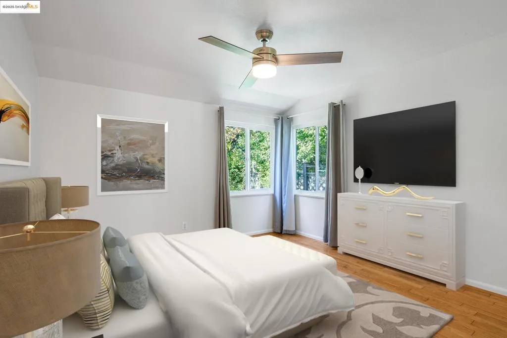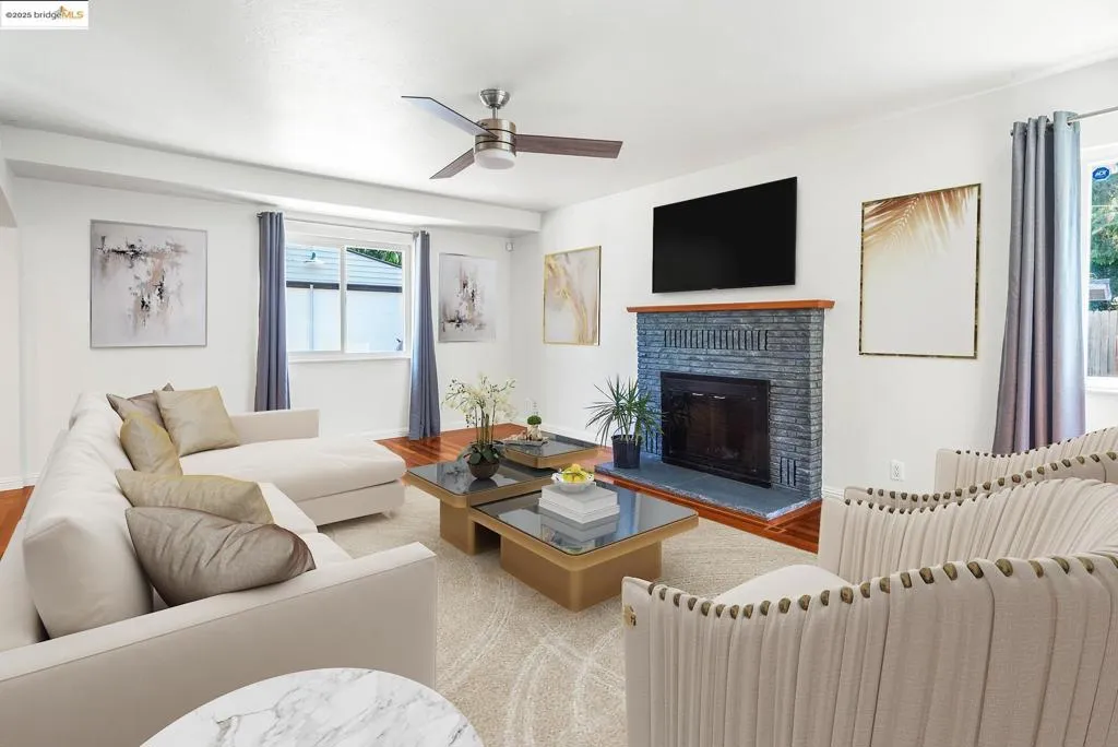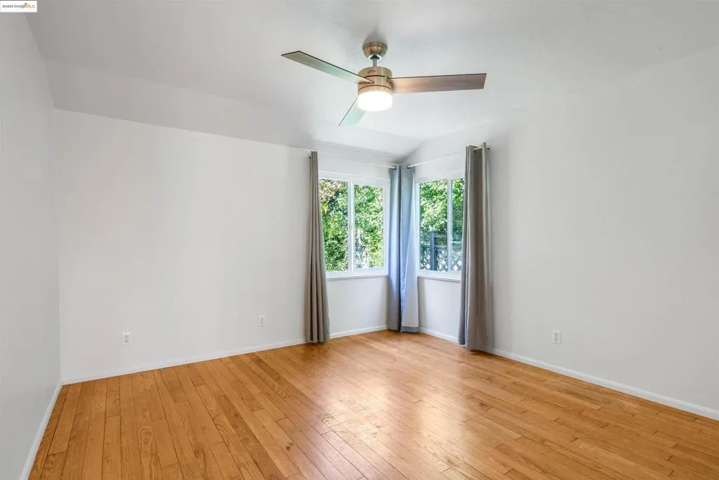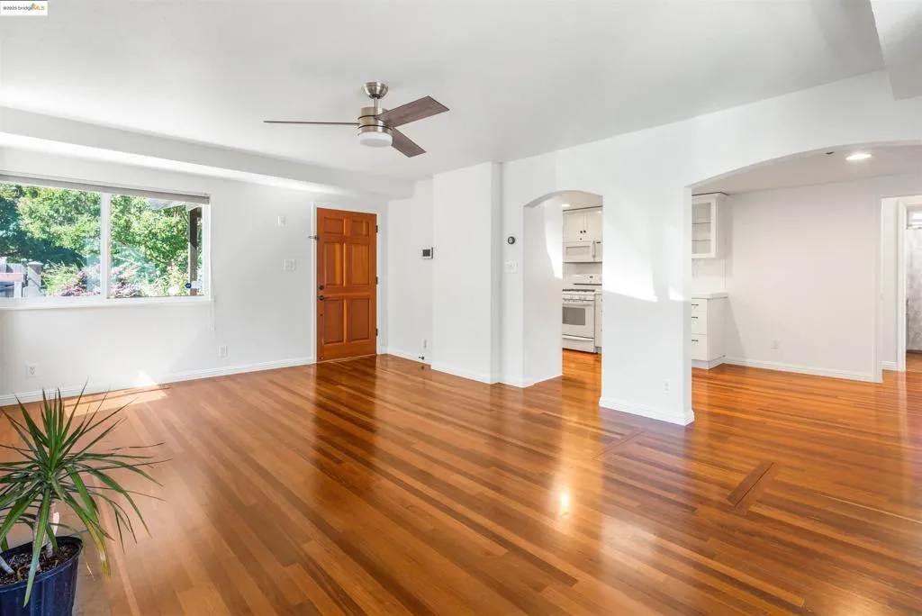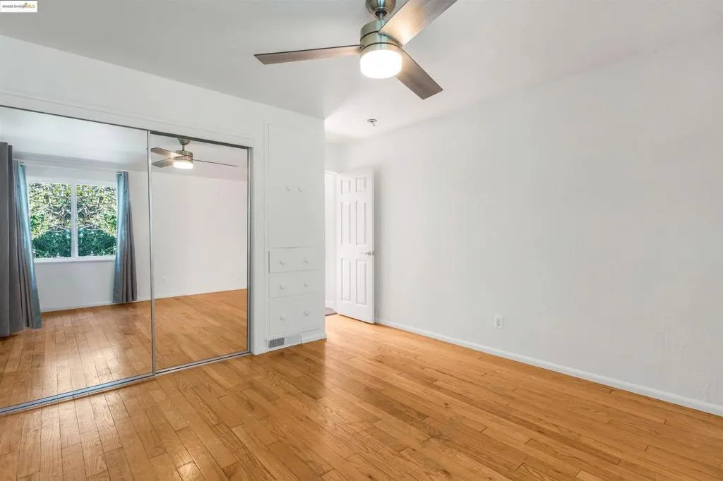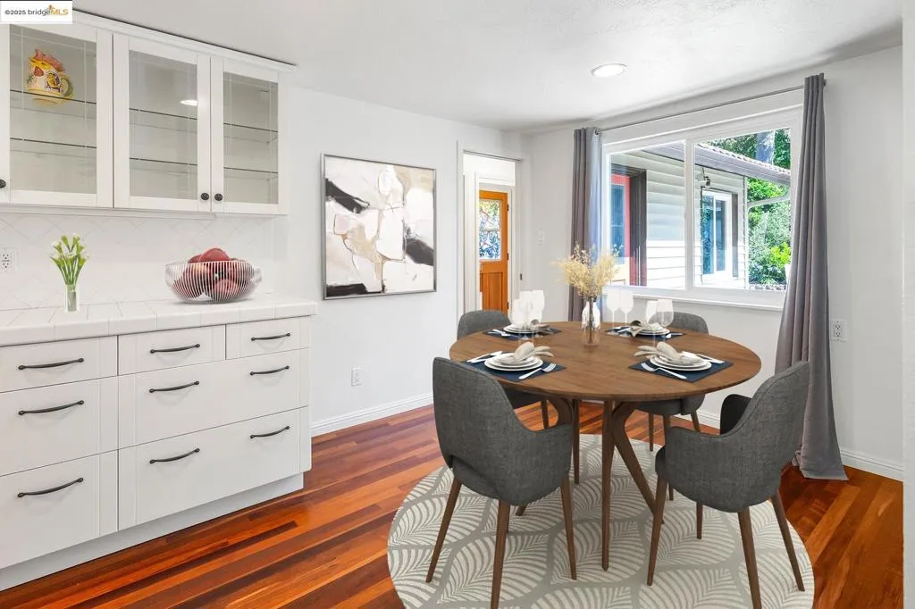 Nestled on a charming tree-lined street and minutes to open space, sits this darling 2-bedroom, 1-bath home with vinyl siding, dual pane windows, and a Lifetime standing seam steel roof. Home features include an 18-panel owned solar, green views from most windows, and Brazilian Walnut flooring throughout the main living area and hallway. Bedrooms feature oak hardwood floors; the primary bedroom has calming green views, built-in rolling drawers, and a large closet. The sunny kitchen features white cabinets equipped with swivel racks, roll-out shelving, under-cabinet lighting, tile counters, a gas range, and beautiful views out to the English-style rose garden. The comfortable living room features a fireplace with a Heatilator insert, perfect for those chilly nights. The yard features a relaxing deck, mature fruit trees, and a turf area surrounded by privacy plantings. A rose garden adorns the side of the 550 sq ft garage, which features 220v, washer/dryer hook-ups, an equipment cage, a new garage door, space for two cars, storage, and a workshop. Beyond the garage is an artist studio or home office equipped with power and internet. Just minutes to Orinda shopping, East Bay Regional Parks, many commute options, and a short drive to San Francisco for world-class dining and museums.