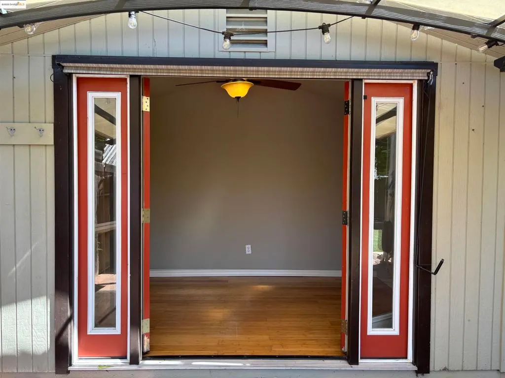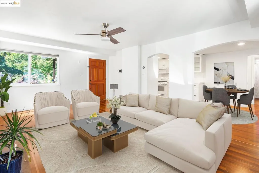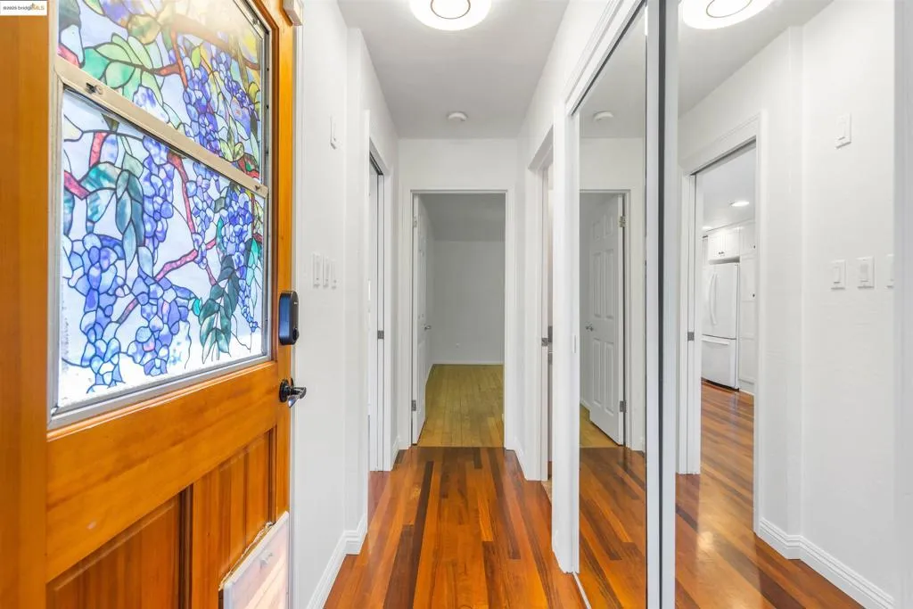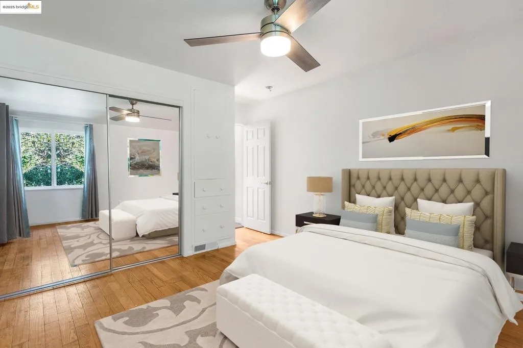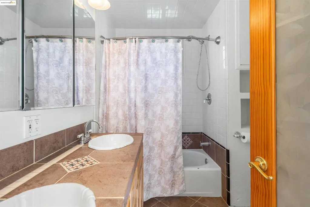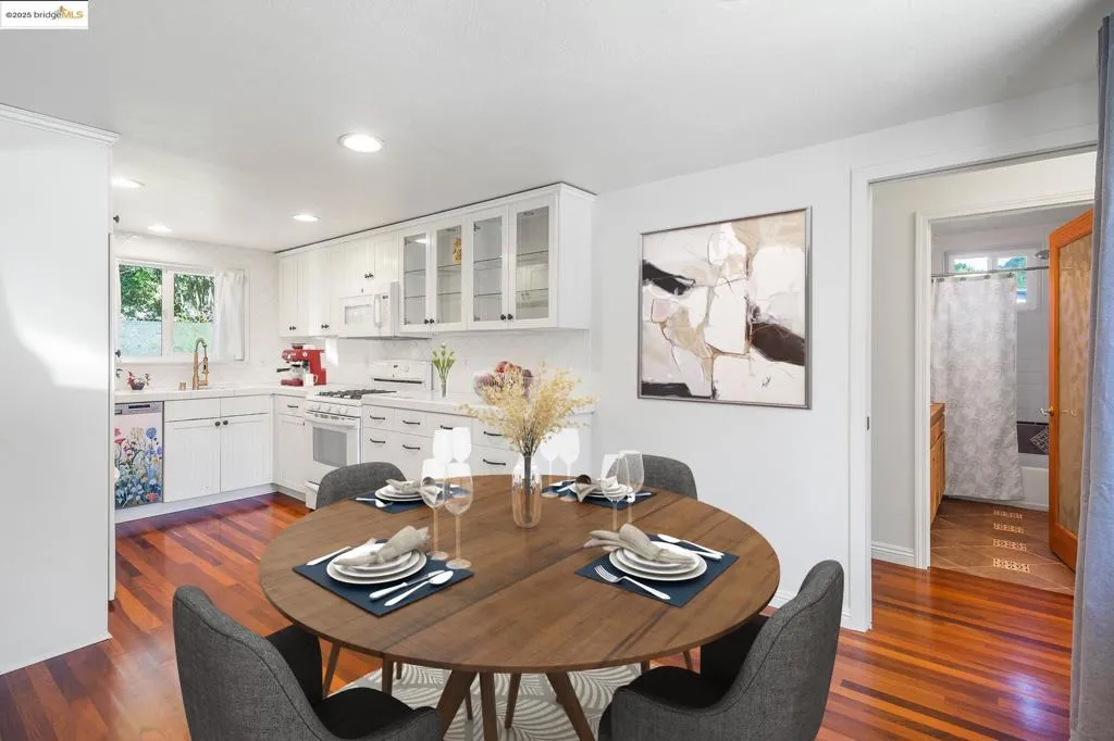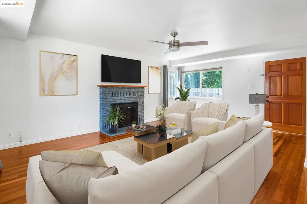 Nestled on a charming tree-lined street and minutes to open space, sits this darling 2-bedroom, 1-bath home with vinyl siding, dual pane windows, and a Lifetime standing seam steel roof. Home features include an 18-panel owned solar, green views from most windows, and Brazilian Walnut flooring throughout the main living area and hallway. Bedrooms feature oak hardwood floors; the primary bedroom has calming green views, built-in rolling drawers, and a large closet. The sunny kitchen features white cabinets equipped with swivel racks, roll-out shelving, under-cabinet lighting, tile counters, a gas range, and beautiful views out to the English-style rose garden. The comfortable living room features a fireplace with a Heatilator insert, perfect for those chilly nights. The yard features a relaxing deck, mature fruit trees, and a turf area surrounded by privacy plantings. A rose garden adorns the side of the 550 sq ft garage, which features 220v, washer/dryer hook-ups, an equipment cage, a new garage door, space for two cars, storage, and a workshop. Beyond the garage is an artist studio or home office equipped with power and internet. Just minutes to Orinda shopping, East Bay Regional Parks, many commute options, and a short drive to San Francisco for world-class dining and museums.