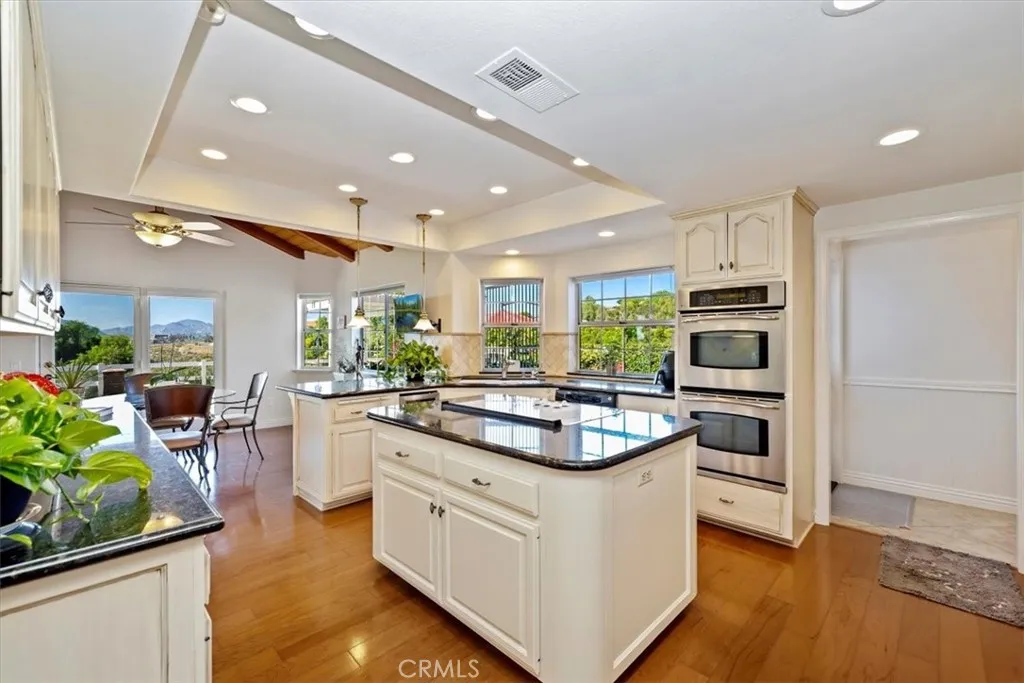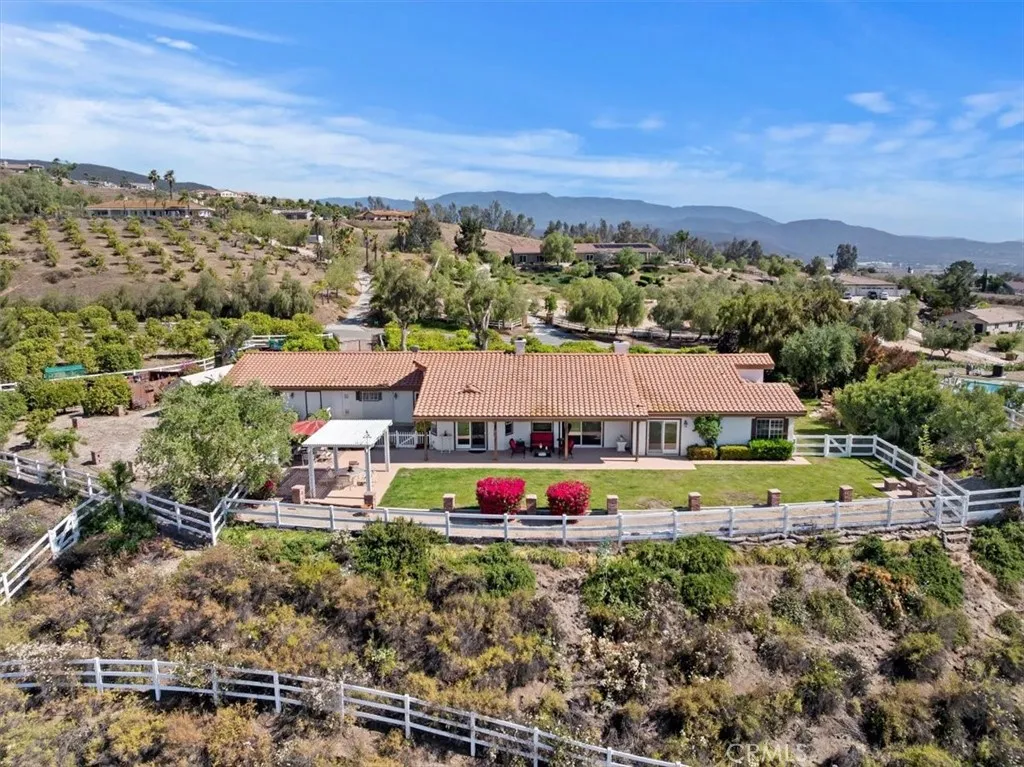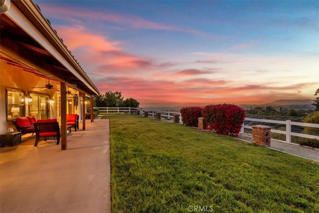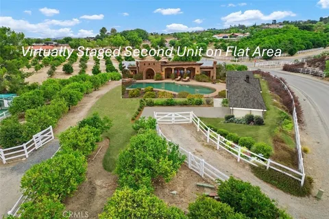 ***Build a second unit fully private from the main house with its own street access on this all-usable, flat view property in the heart of Temecula's prestigious GlenOak Hills community!*** Welcome to this stunning single-story estate, freshly painted and beautifully maintained, offering panoramic 360-degree views of Wine Country, the mountains, breathtaking sunsets, and twinkling city lights. Perfectly positioned on a prime corner lot, this gated and fully fenced 2.21-acre property combines luxury, privacy, and flexibility. Inside, you'll find a bright, open floor plan designed for both elegant entertaining and comfortable living. The home features a formal dining room, a spacious living room with a fireplace, and a dramatic family room with a floor-to-ceiling brick fireplace and a custom wet bar. Every room offers sweeping views and the sight of hot-air balloons drifting above the vineyards in the morning. Kitchen showcases hand-finished oak cabinetry, granite countertops, stainless steel appliances (including a brand-new refrigerator), a wine cooler refrigerator, a large dining nook, and a walk-in pantry. Hickory hardwood flooring adds warmth and sophistication throughout the main living areas. The primary suite is a private retreat with French doors opening to the patio and Wine Country views. The spa-style bathroom features a soaking tub, travertine finishes, and a generous walk-in closet. Secondary bathrooms are equally luxurious, featuring travertine tile, designer glass enclosures, and granite countertops. Outside, the possibilities are endless. The flat, fully usable land is ideal for a second dwelling or an ADU, pool, vineyard, and horses. Multiple gated access points and RV hookups with 50-amp power provide exceptional flexibility. The oversized 3-car garage, which has one finished bay with vinyl flooring, cabinetry, and A/C, is perfect for a home gym or office and can be easily converted to a Junior Dwelling Unit with its own entrance. Enjoy mature fruit trees, low HOA fees, and a low property tax area. GlenOak Hills offers residents two tennis courts, a clubhouse, horse arena, and children's playground. Minutes from Temecula's finest wineries along the De Portola Wine Trail, including Leoness, Altisima, Fazeli, and Renzoni. A rare combination of views, usability, and luxury. This property must be seen to be truly appreciated.