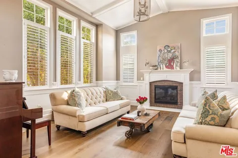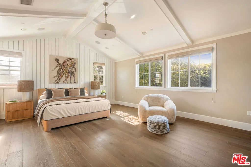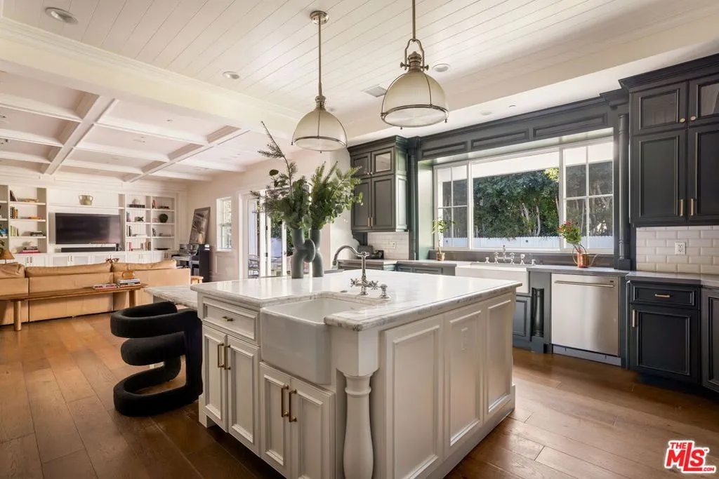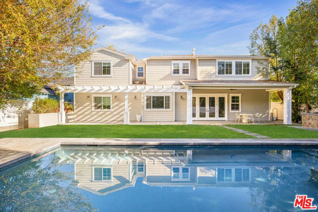 Nested between Studio City and Valley Village this newly constructed and impeccably designed, 4505 Morella Avenue is a prime example of elevated farmhouse-style and thoughtful living. Spanning 4,976 square feet on a 9,879 square foot lot, this two-story home offers 5 bedrooms and 5 bathrooms (4.5 ensuite), ensuring comfort and privacy for family and guests alike.From lofty coffered ceilings to wainscoting and shiplap accents, sophisticated details create a luminous, elegant interior to this East Coast-inspired estate. The chef's kitchen is outfitted with Wolf and Sub-Zero appliances, a large island with dual sinks and seating, Calacatta marble countertops, and Newport Brass fixtures, flowing seamlessly into the light-filled family room. French doors open to the sparkling saltwater pool, built-in BBQ, and serene scenic views, perfect for entertaining or relaxing alfresco.The primary suite is a sanctuary featuring a fireplace, dual vanities, expansive walk-in closets, and a bright, spa-like bath with a freestanding tub, marble finishes, and shiplap paneling. Additional amenities include an attached two-car garage, private screening room, surround sound, abundant custom built-ins, and art installations by Alex Charriol, styled throughout by StyleMood.Set in a quiet Valley Village neighborhood, near trendy shops, the NoHo Arts District, North Hollywood Park, and Coldwater Canyon hiking, and within the highly regarded Colfax Elementary, Walter Reed Middle, and North Hollywood High School districts, this residence delivers both convenience and privacy. With its refined design, luxurious finishes, and entertaining-ready spaces, 4505 Morella Avenue is truly a modern classic and a must-see estate.