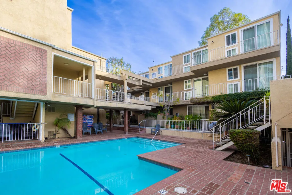 Nestled just a block south of Ventura Boulevard in the desirable Encino South Towers, this top floor two-level condo is just minutes away from Encino's lively restaurants, shops, and entertainment. As you step inside, you'll be greeted by a spacious living area that flows effortlessly into the dining room and kitchen. The kitchen features ample storage and a large window that overlooks lush greenery, creating a peaceful and private atmosphere. A convenient powder room completes the first level. Upstairs, the main bedroom includes its own bathroom and a charming patio terrace. Down the hall, you'll find two additional bedrooms and a second full bathroom. Great storage space throughout the unit. This complex includes a pool, BBQ area, and earthquake insurance. Situated in the prime Lanai Elementary district, this location is ideal for those seeking convenience and modern day amenities.
