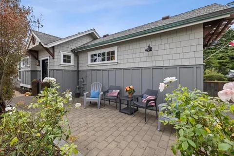 Discover the coastal charm! This charming cottage nestled in the heart of Half Moon Bay exudes a sophisticated blend of contemporary design and coastal elegance. Spanning 922 square feet, this residence is thoughtfully designed to maximize space and comfort. The open living area, illuminated by skylights, creates a bright and inviting atmosphere. A gas fireplace adds warmth perfect for relaxing evenings. Quality craftsmanship designed by a well known home builder on our Coast, Paul McGregor, is evident in the use of hardi plank siding and copper gutters, enhancing the homes enduring appeal for the coastal elements. The home features 2 serene bedrooms, each offering a peaceful retreat. The primary bedroom complete with a cozy fireplace, overlooks the private patio and garden that is perfect for entertaining. Situated on a 3,472 sq ft lot, this property boasts an enviable location just blocks from the scenic coastal trail, promising breathtaking ocean views and tranquil walks. Additionally, its within close proximity to the historic charm of downtown Half Moon Bay, offering a unique blend of natural beauty and rich history. Experience the perfect harmony of modern living and coastal charm, all within this exquisite home that promises to be an idyllic sanctuary by the sea.