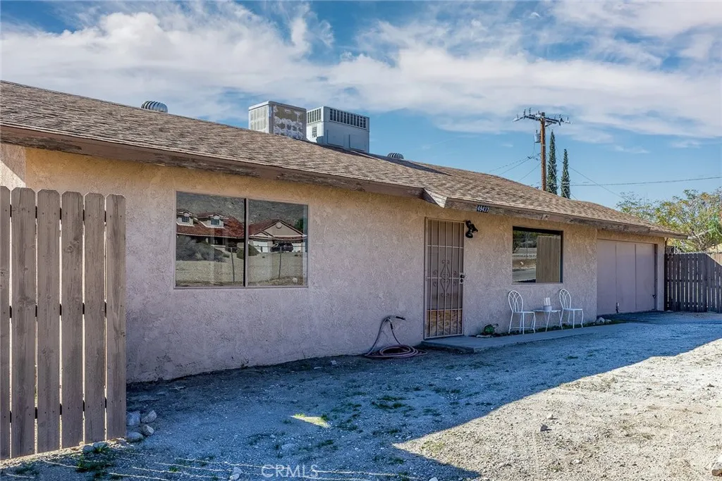 Delightful 2-bedroom, 1-bath home, where character meets everyday comfort. This single-story residence offers a warm atmosphere with classic architectural touches from its era. Home has modern LED lighting and surround sound speaker system. HVAC system is ducted throughout, including garage; plus offers an evaporative system for warmer days. Insulated and drywalled two-car garage. Back yard is fully fenced and offers RV parking with electric and water hookups. Irrigation system is piped along fence in backyard. Master closet features a partially completed hidden compartment - perfect for securing valuables Close to local school, restaurants and Covington Park. Covington Park offers tennis courts, playground and a skate park; the park also nestles up to the Big Morongo Canyon Preserve for nature lovers to explore trails and wildlife. Only 22 miles to Joshua Tree National Park and 17 miles to Palm Springs. This home is full of potential and ready for its next chapter. This gem checks all the boxes. Come see it before it's gone!