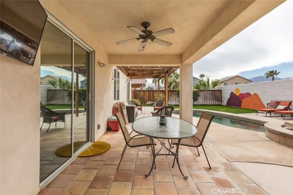 Immaculate and fully furnished Spanish-style retreat in the highly sought-after La Colonia community. This 4-bedroom, 3.5-bath home features an attached casita with a private entrance and bath - perfect for guests or multi-generational living. Inside, soaring ceilings and an open floor plan connect the formal dining area, spacious living room, and a chef-inspired kitchen with granite countertops, gas range, built-in appliances, and a brand-new refrigerator. Comfort is elevated with a new AC system in the main house and a mini-split unit in the casita. Step outside to your private backyard oasis complete with a heated pebble-finish pool and spa, covered patio, and lush landscaping - ideal for relaxing or entertaining. Additional features include a 2-car garage, laundry room, ample parking, no HOA, and short-term rental approval. Centrally located near shopping, dining, golf, and the world-famous festival grounds, this home offers the perfect blend of comfort, style, and convenience.