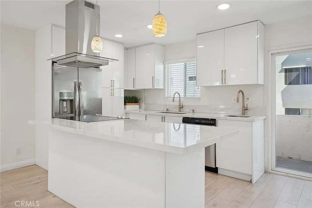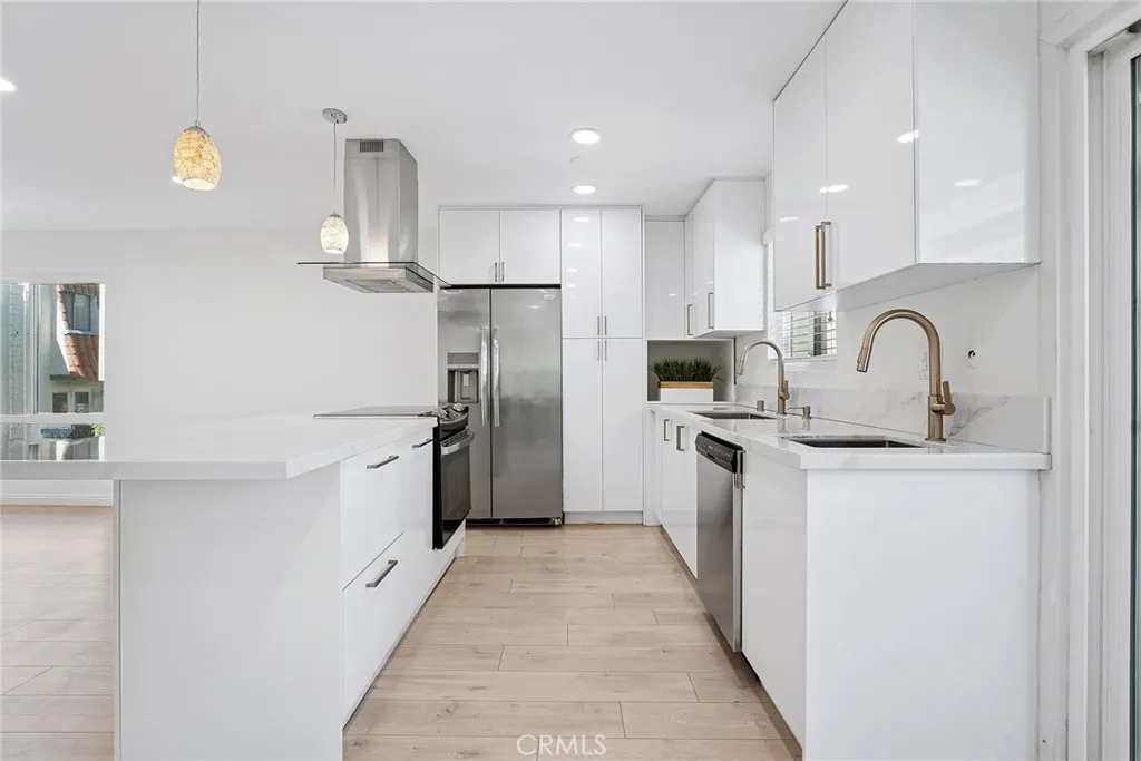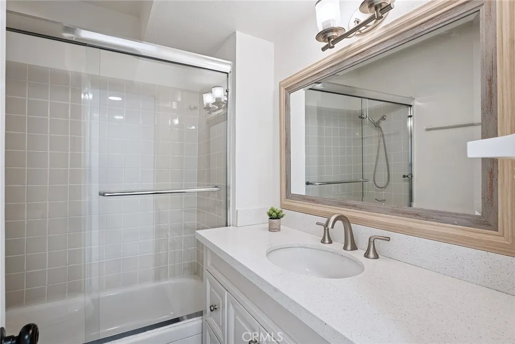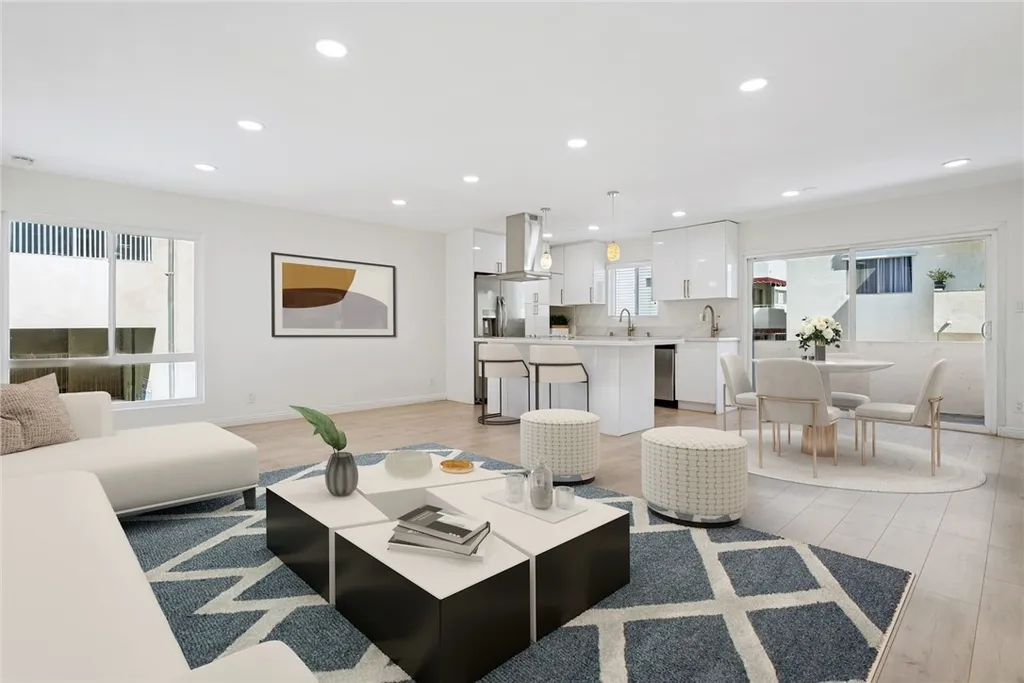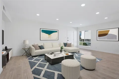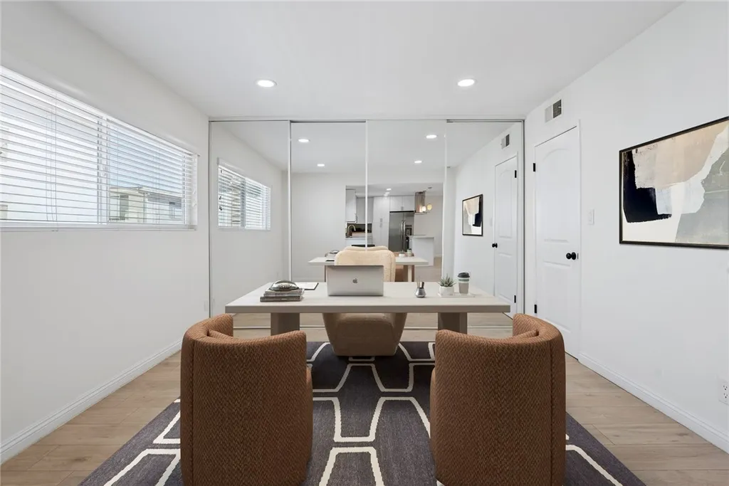 Beautifully Upgraded 2+2 End Unit Condo with Bonus Room in Prime Encino Location! Welcome to this light-filled and stylishly remodeled end-unit condo located in the desirable Encino Terrace community. This spacious 2-bedroom, 2-bathroom home also includes a versatile bonus room - perfect for a home office, den, or easily convertible into a third bedroom, complete with a wall-to-wall custom built-in closet. The open-concept layout features a chef-inspired kitchen with a large island, quartz countertops, stylish cabinetry, double sinks, stainless steel appliances, and a sleek range hood. The kitchen flows seamlessly into the dining and living areas, creating a perfect space for entertaining. Natural light floods the unit, highlighting the brand-new flooring and recessed lighting throughout. The primary suite is spacious and bright, with a beautifully upgraded en-suite bathroom offering double sinks, a walk-in shower, and a custom walk-in closet. The secondary bedroom includes a built-in desk and its own custom closet, with a full bathroom conveniently located nearby. Additional highlights include dual-pane windows, updated finishes throughout, and two covered tandem parking spots with storage, located close to the unit. Enjoy the resort-style amenities of Encino Terrace, including two pools, a spa, gated entry, and two community laundry rooms - one just steps away from your door. Ideally located just off Ventura Blvd, you're minutes from top restaurants, shopping, and easy freeway access. This turnkey unit combines comfort, function, and location - don't miss this incredible opportunity to own in the heart of Encino!